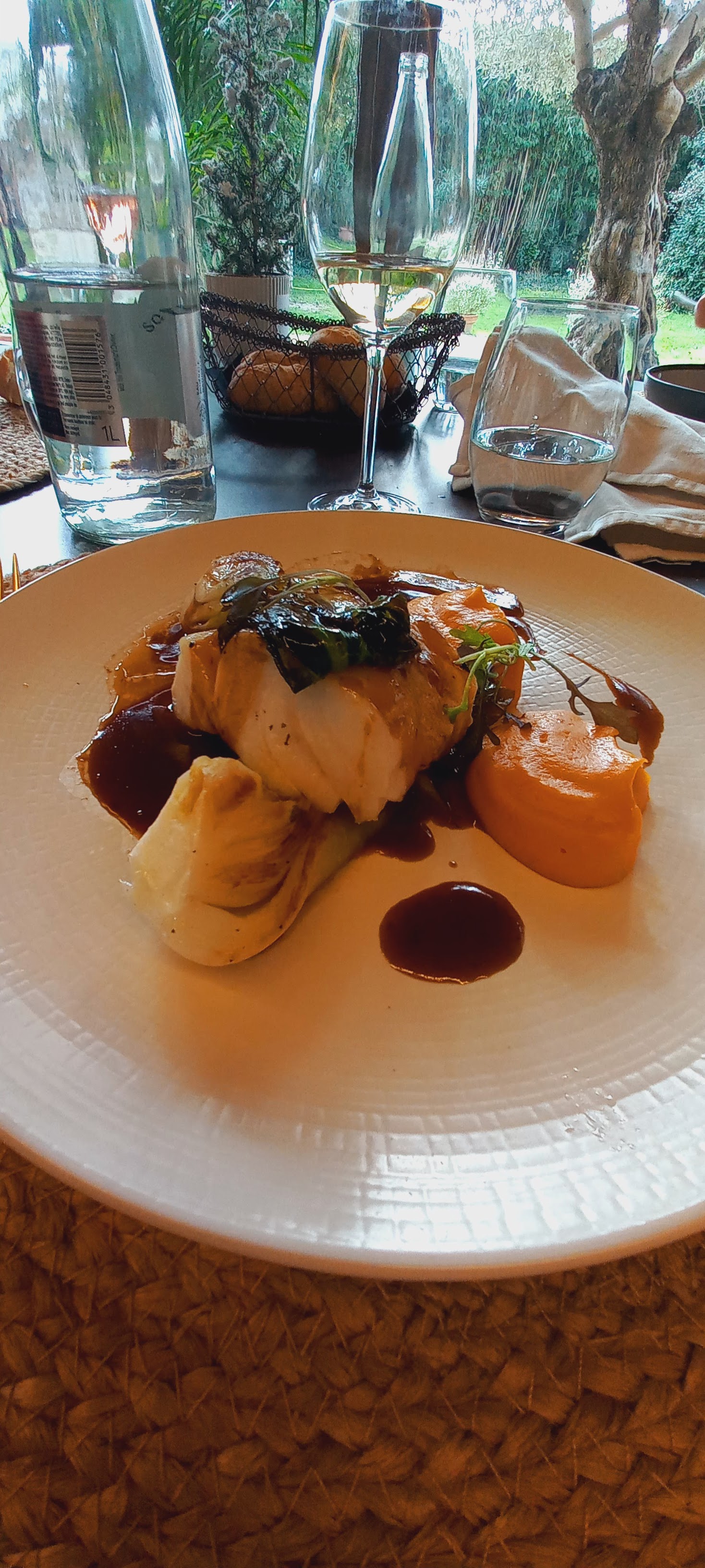 Le cadre est idyllique . Possibilité de se garer facilement . Grande salle à manger avec verrière qui donne sur un jardin agréable Service jeune mais très professionnel et attentionné Bravo la jeunesse Dans l assiette . Explosion de saveur . Cuisson parfaite . Menu enfant hallucinant : foie gras . Suprême de volaille extrêmement tendre avec raviole : délicieux aux dires de mon fils de 10 ans qui a fini par un ourson en.chocolat le tout pour 18 euros : incroyable Pour les adultes formule à 40 euros : divine préparation : cabillaud fondant cuit à la perfection . Accompagnement original : pakchoi. Dessert d une finesse . Mignardise avec le café Très grand choix de vin Nous sommes restés vraiment scotchés par tant de professionnalisme de cette brigade . Merci et longue vie.