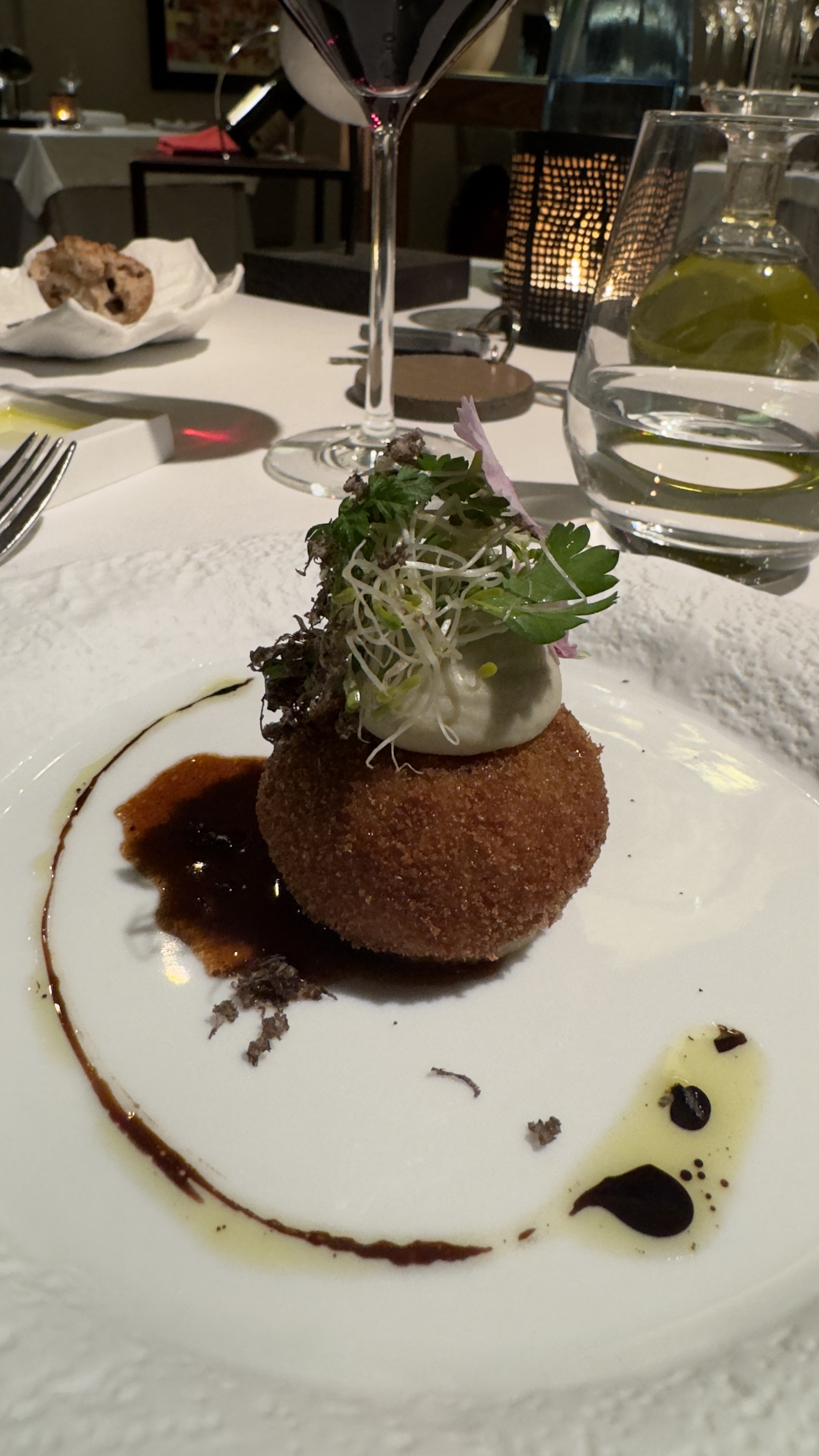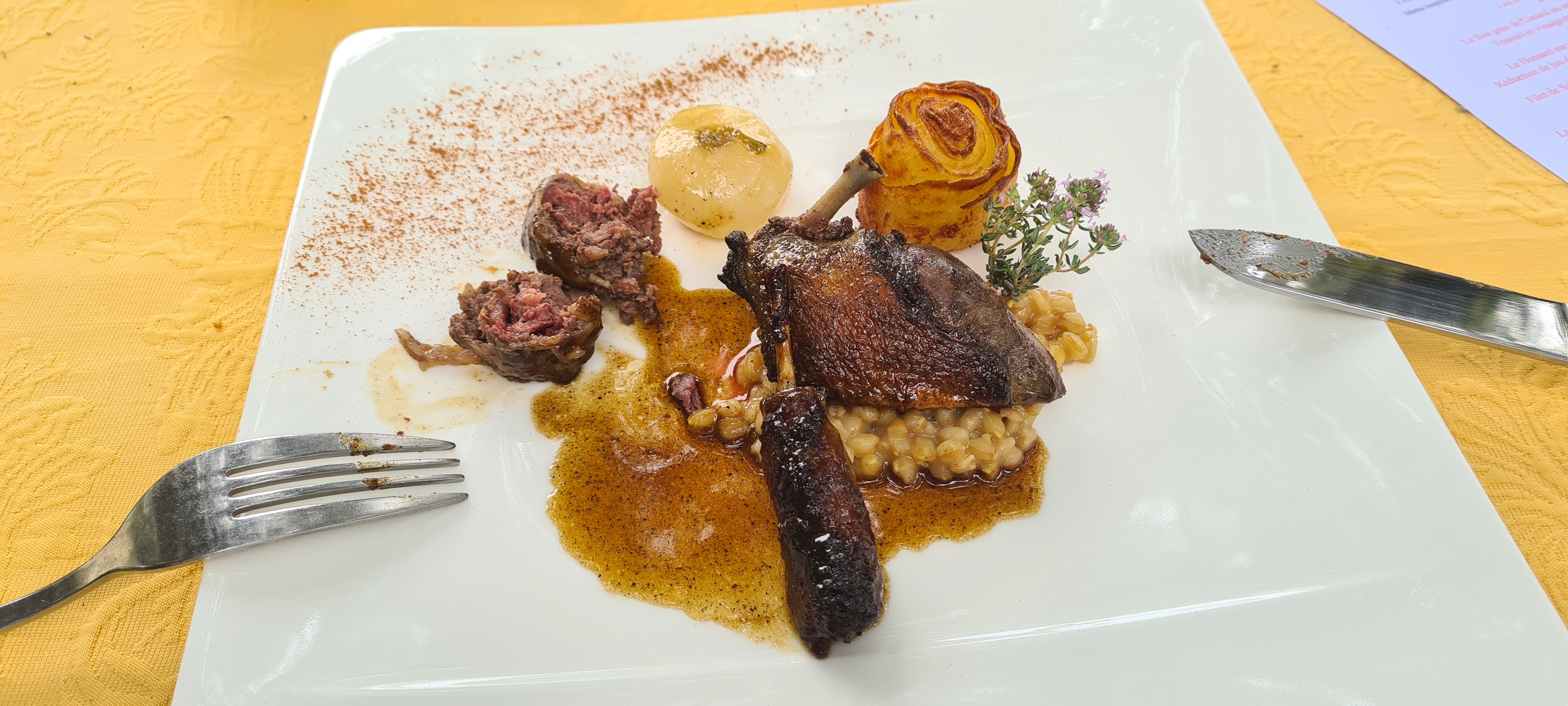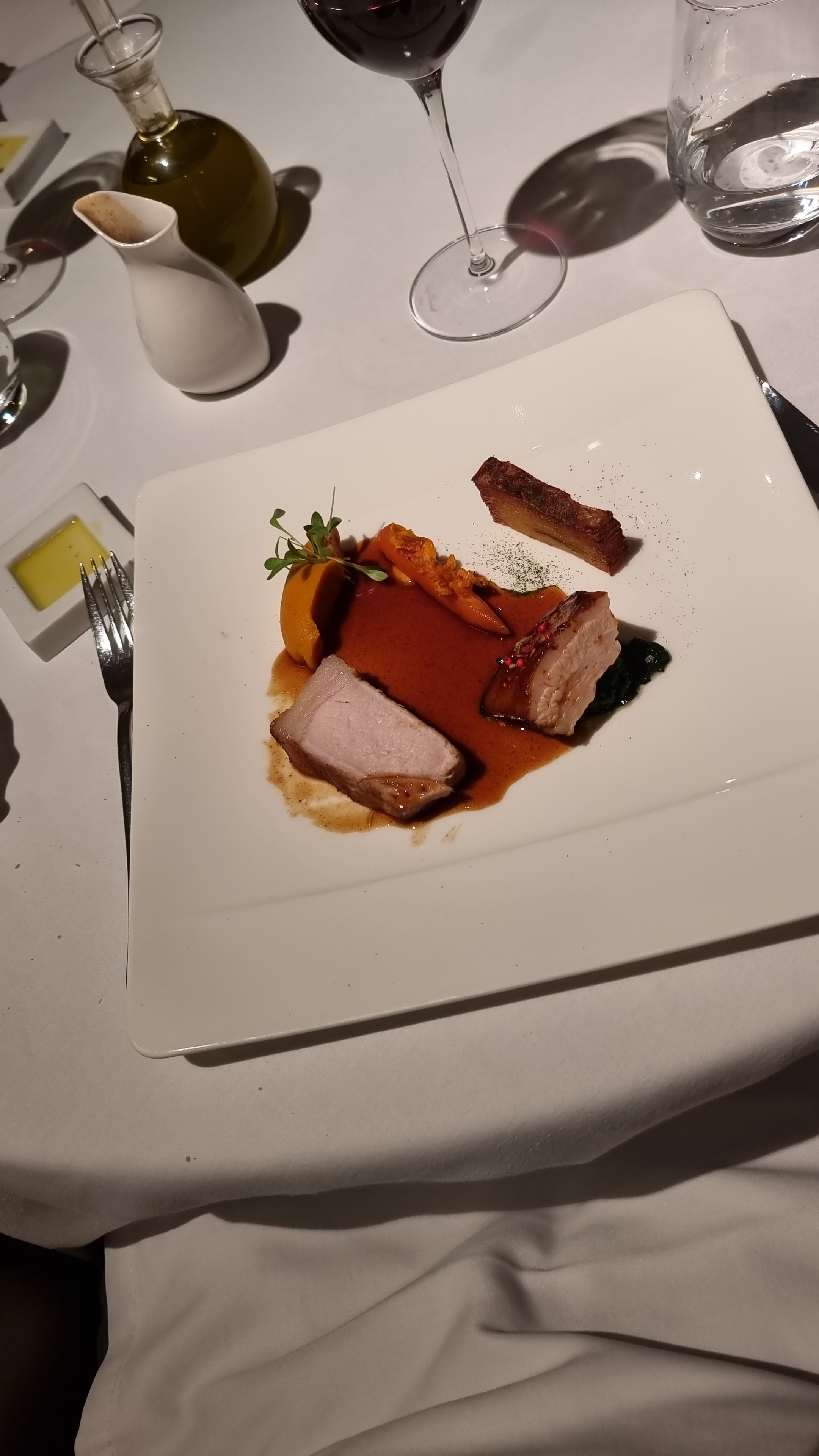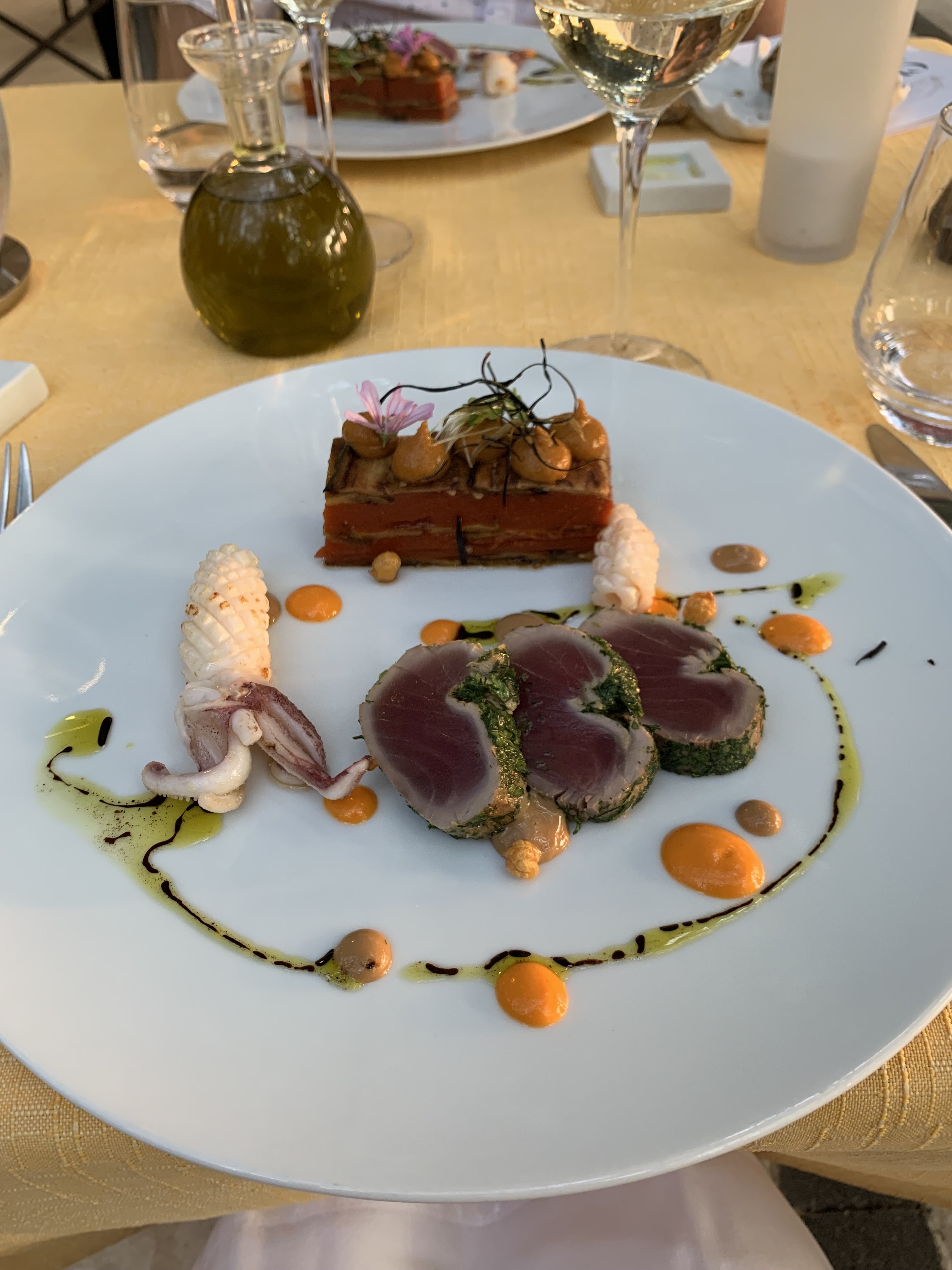 c’était un véritable délice gourmand, les plats sont recherchés élégants et toutes en finesse mais reste traditionnels et épurés, aucunes lourdeurs et aucunes fausses notes. Le tout accompagné d’un tavel aqueria 👌👌👌