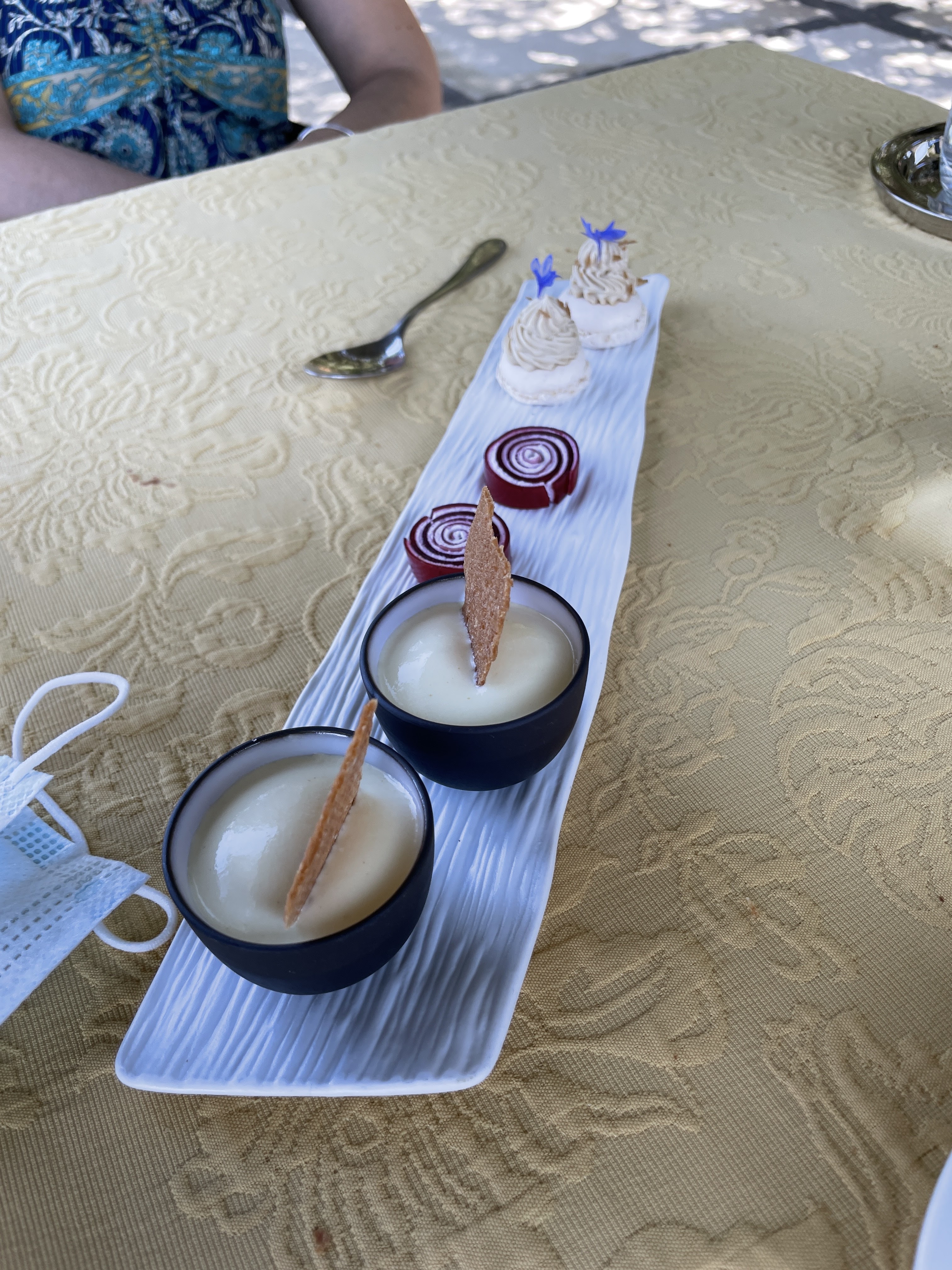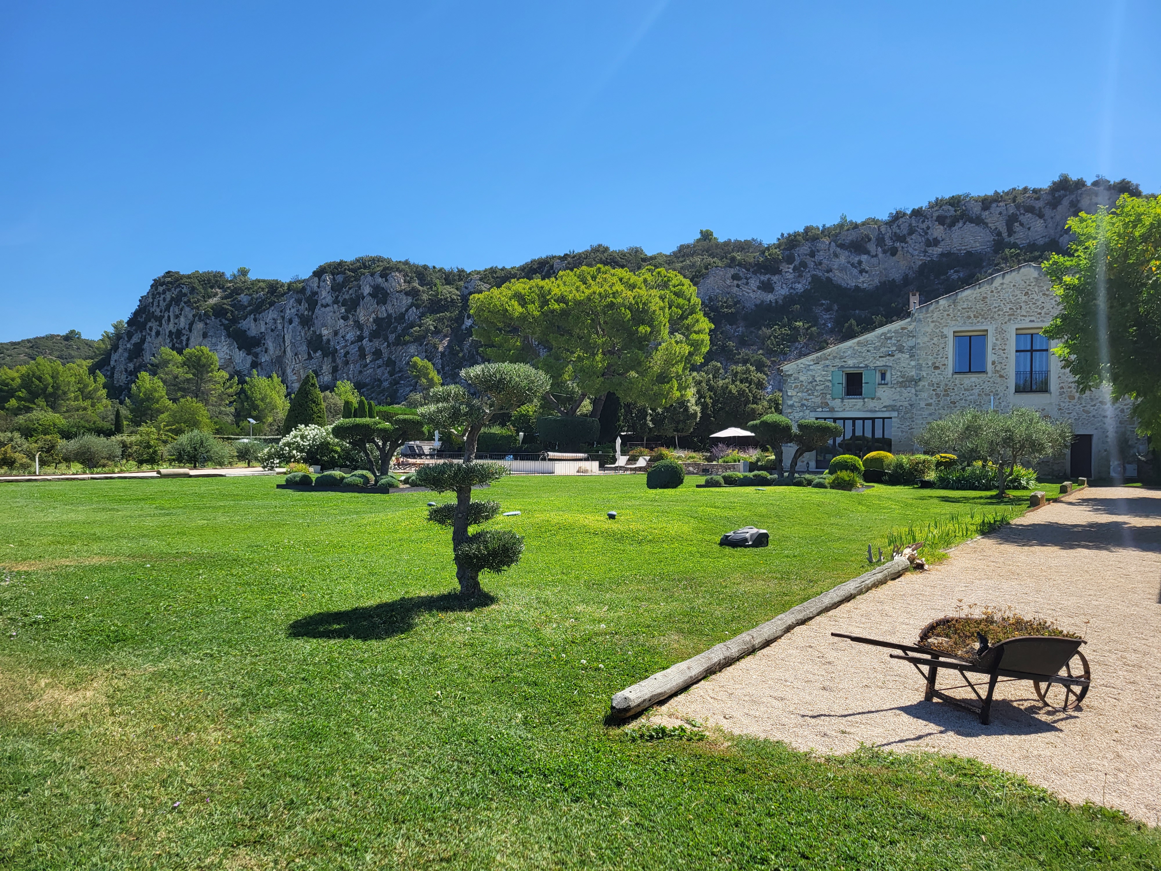 Déjeuner en semaine sur la terrasse ombragé. Cadre et jardin provençale magnifique. Repas de qualité, très beau et exquis comme on peu s'y d'attendre dans ce type d'établissement. Tour de table très sympathique du chef. Par contre avis mitigé pour le service. Oublie de nous servir l'apéritif, oublie du pain, erreur dans les annonces de plat... lourdes erreurs pour ce type de repas. Service pas vraiment kid friendly, vite rattrapé par le chef en proposant un repas enfant adapté et soigné! Nous avons passez un agréable moment. Merci