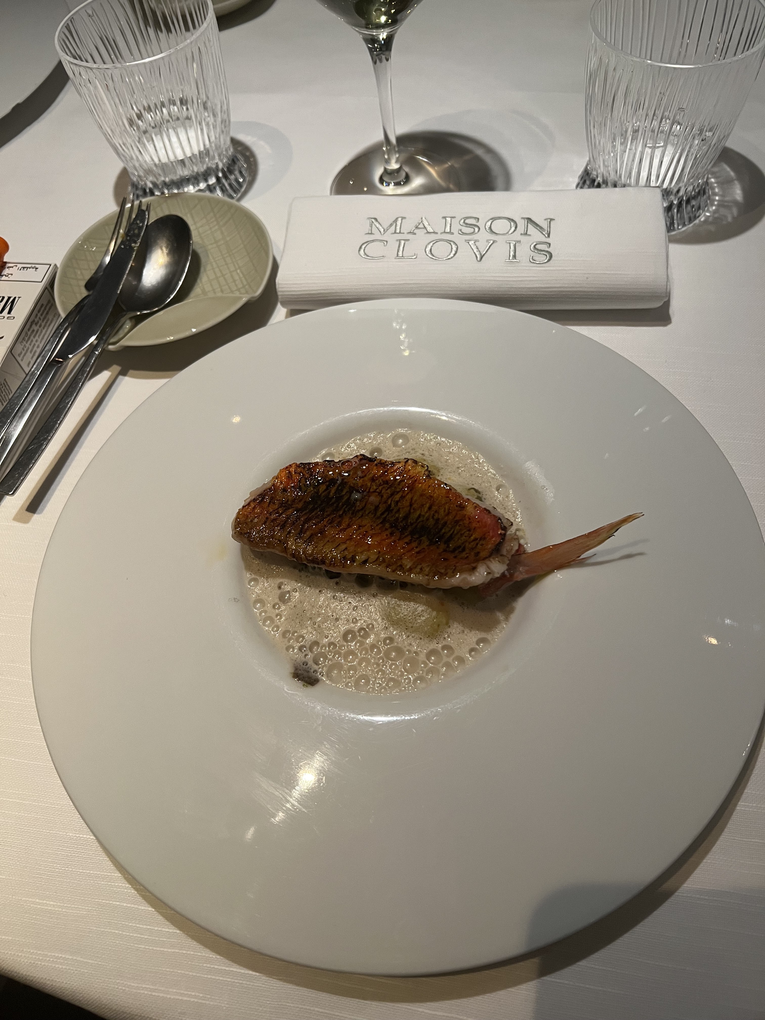 Très belle expérience culinaire dans un cadre épuré et intimiste. Les plats sont excellents, raffinés et équilibrés. Les équipes sont aux petits soins. Mention spéciale pour le chef sommelier Monsieur Park qui nous a surpris par la qualité des vins sélectionnés tout au long du repas. Un grand merci à Maison Clovis. Je recommande vivement ce restaurant dans lequel nous retournerons avec grand plaisir.