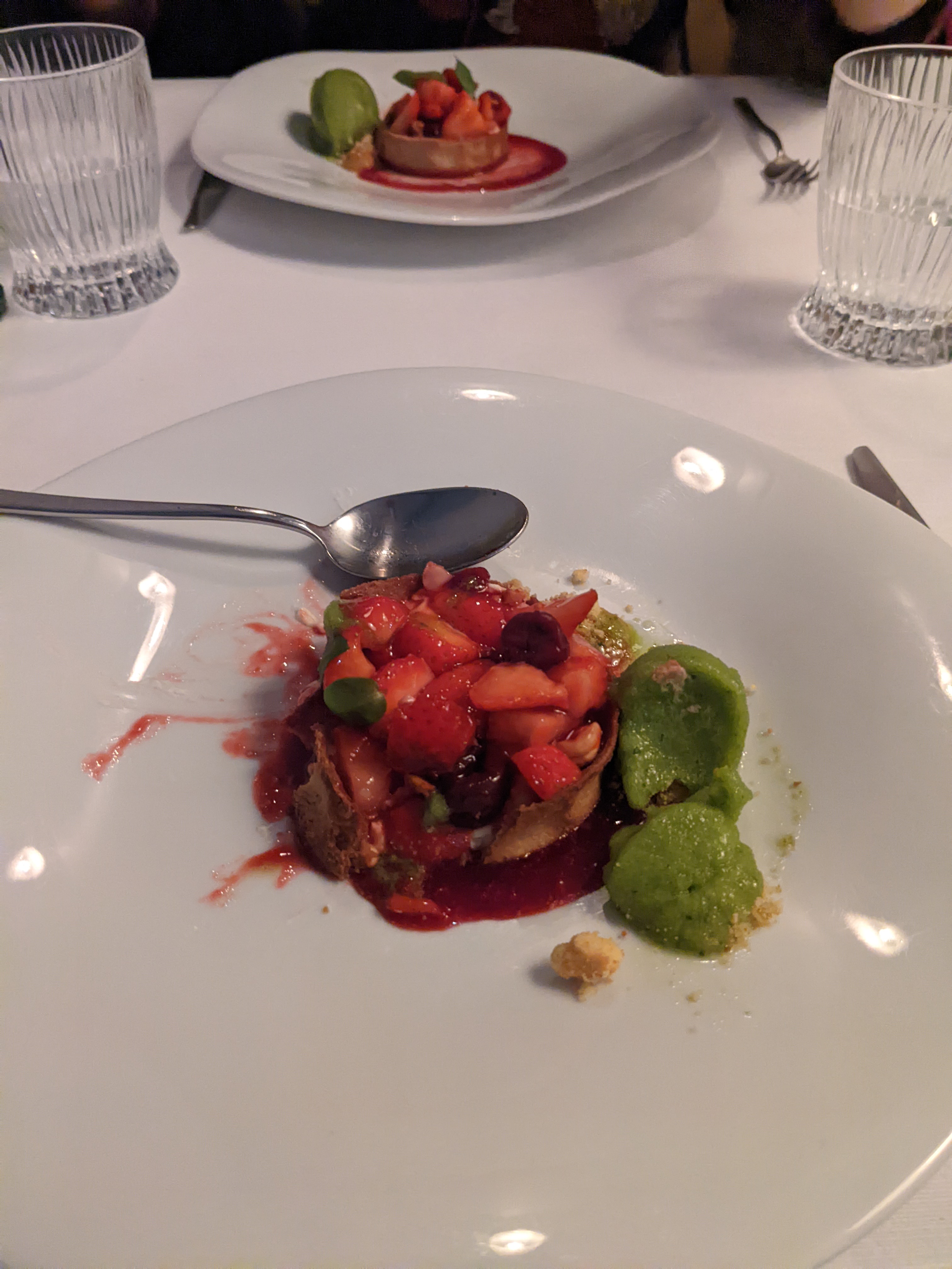 Petite parenthèse enchantée. Lorsque vous vous êtes bien installés, la personne qui vous sert vous demande ce que vous n'aimez pas manger, étonnant. Puis vous devez choisir entre 3 ou 5 plats mystères. Extra ce suspens. Délicieux, fins, les vins coordonnés à l'assiette, hummm, parfait. Le service était au top. Bravo et merci à tous.