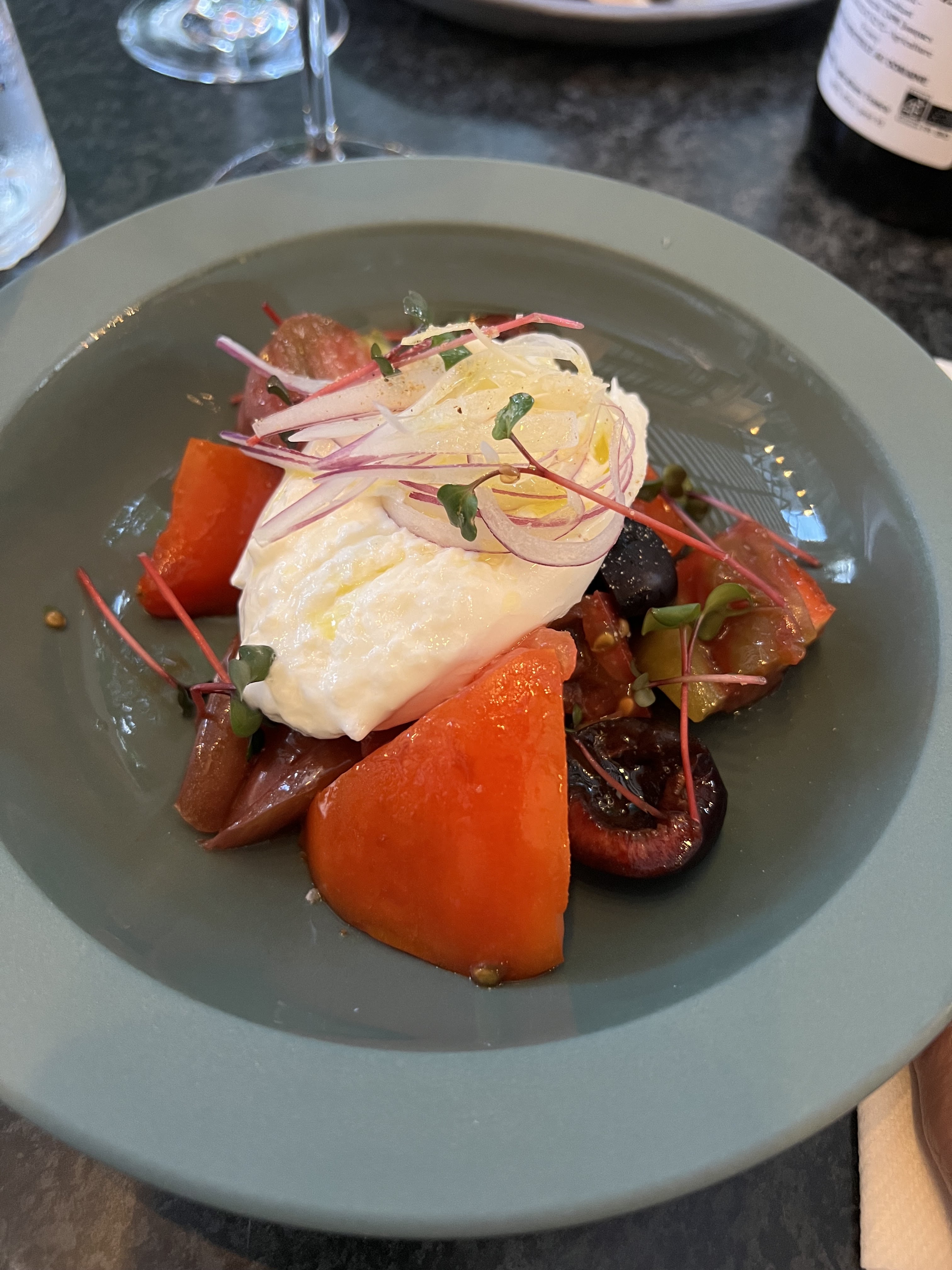Notre seul dîner « bon, pas génial » à Paris pour 2023. Les applications de socca et de piment étaient décevantes, le grand aïoli et les plats de légumes rôtis médiocres. Serveurs très jeunes et intérieur trop éclairé.