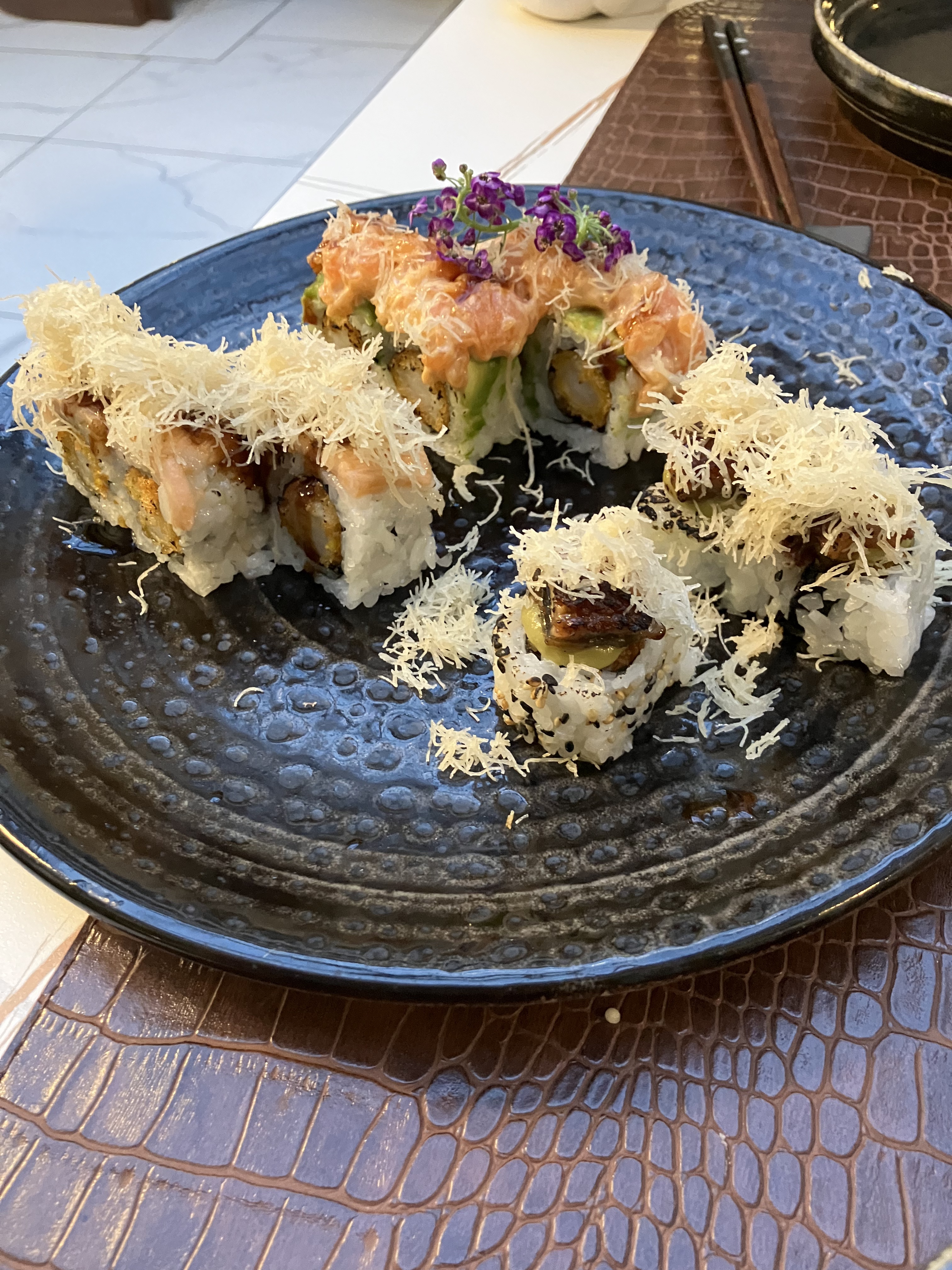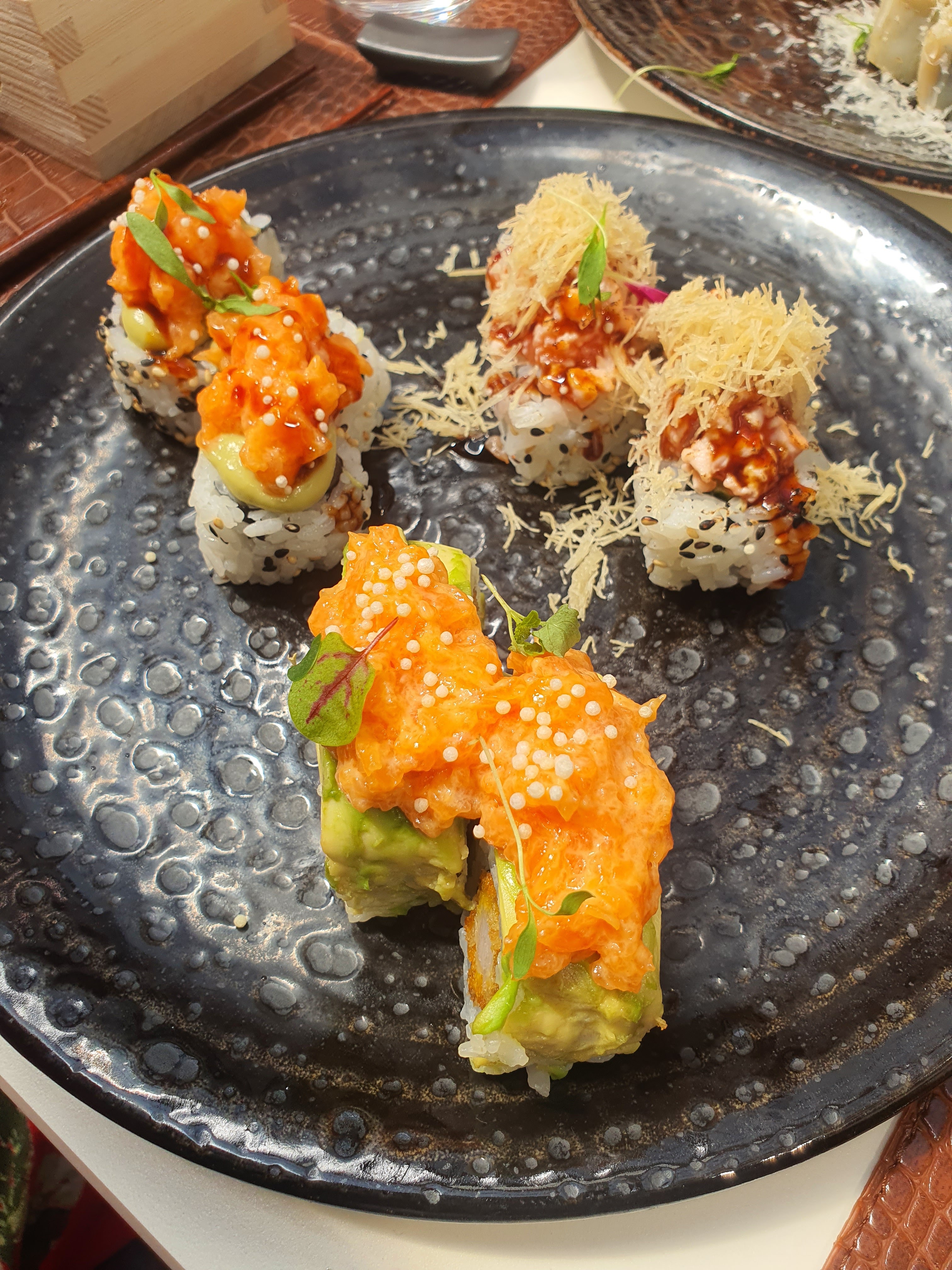 Loin d être un gastronomique beaucoup trop cher pour ce que c est. Des maki un peu fun mais rien d exceptionnel. Globalement les produits plutôt traditionnels sont bon, les plats fantaisistes moins.