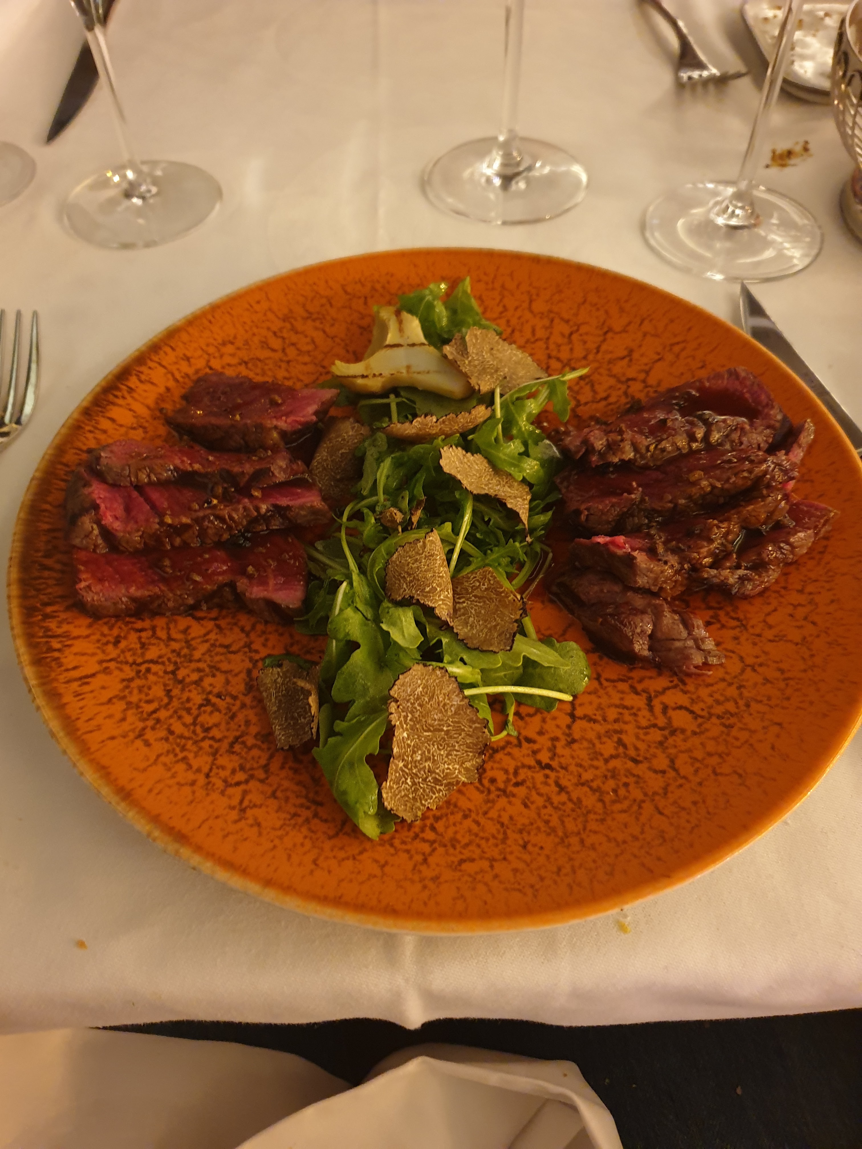 Nous avons été enchanté, sur tous les points, un service impeccable sans être étouffer, une nourriture excellente avec découpage en salle, une vue panoramique c'était parfait. Un grand moment 🙂👍