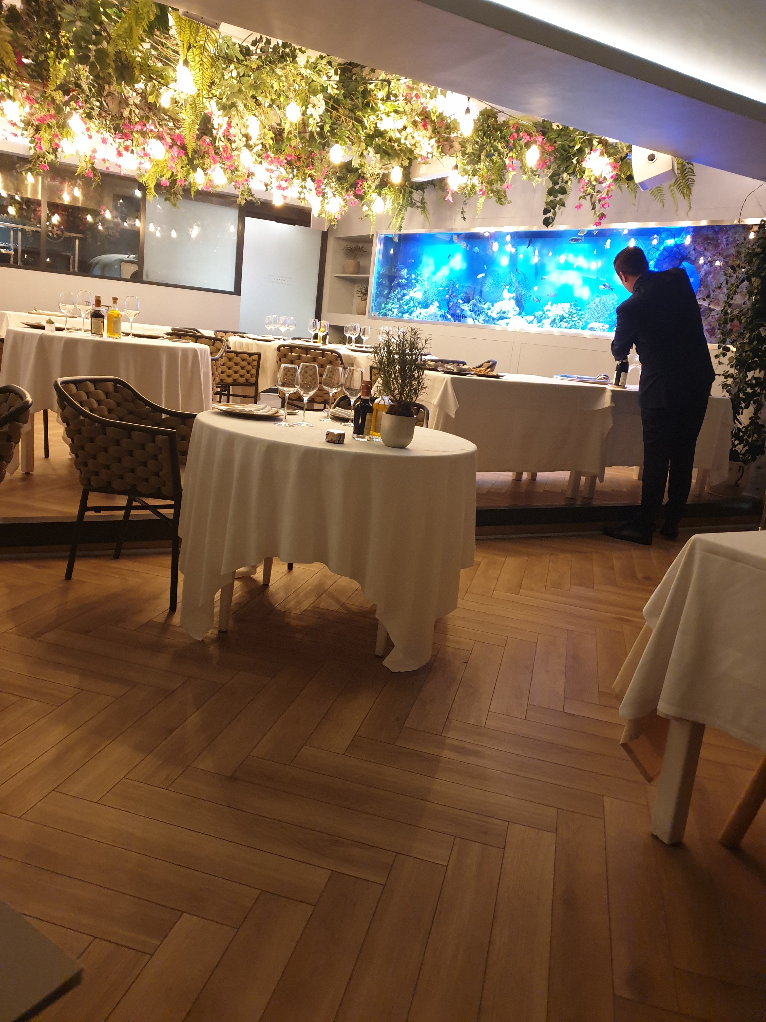 Bon mais une noté à 327€ pour deux faire bien attention au 100g pour le poisson bien qu’on nous ai dit qu’on avait 750g de poisson ( j’en doute fort) dessert à 20€ bref bon mais ne justifie vraiment pas le prix