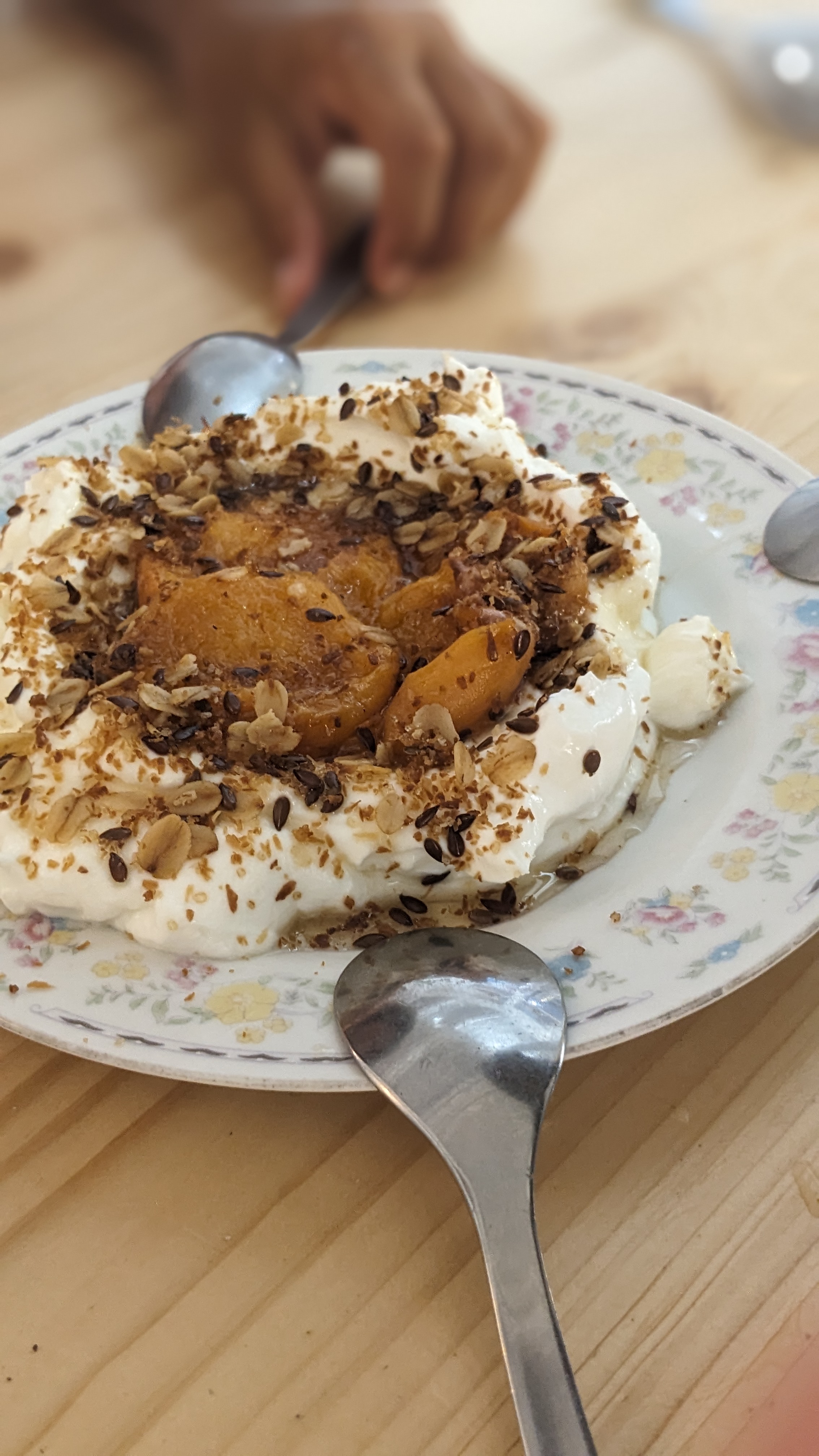 Un petit déjeuner gourmand. Café, jus frais et fromage blanc au granola et au miel très bon. Accueil très chaleureux. Belle sélection de marques en fond de boutique. À recommander.