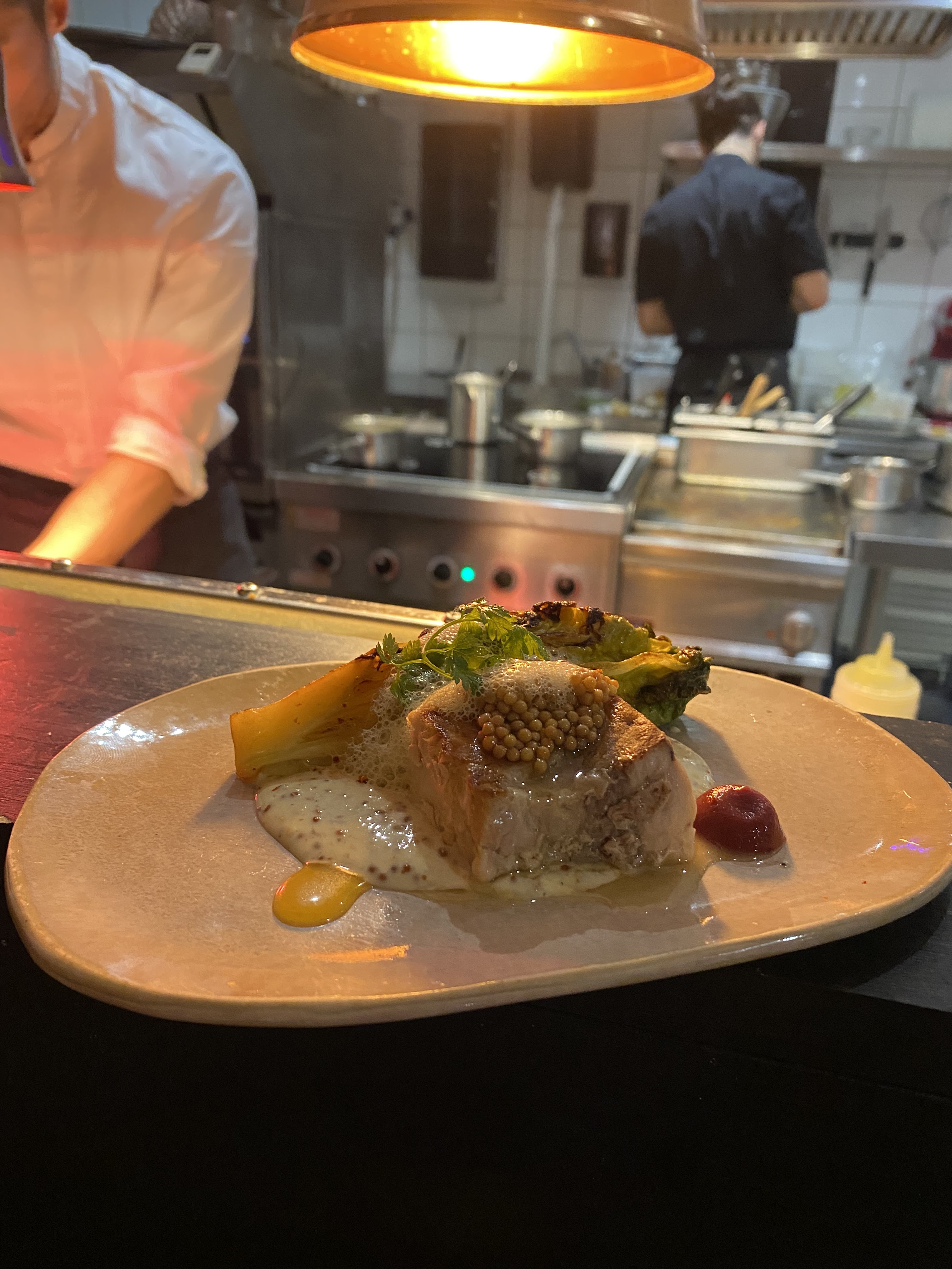 De la grande cuisine : les saveurs, la présentation, la qualité des produits, tout est là. Le service est impeccable, on voit les cuisiniers en plein travail depuis la salle ce qui est très sympa. Il faisait un peu frisquet, les frileux ont gardé le manteau, mais ça n'a rien gâché, l'essentiel est dans l'assiette !