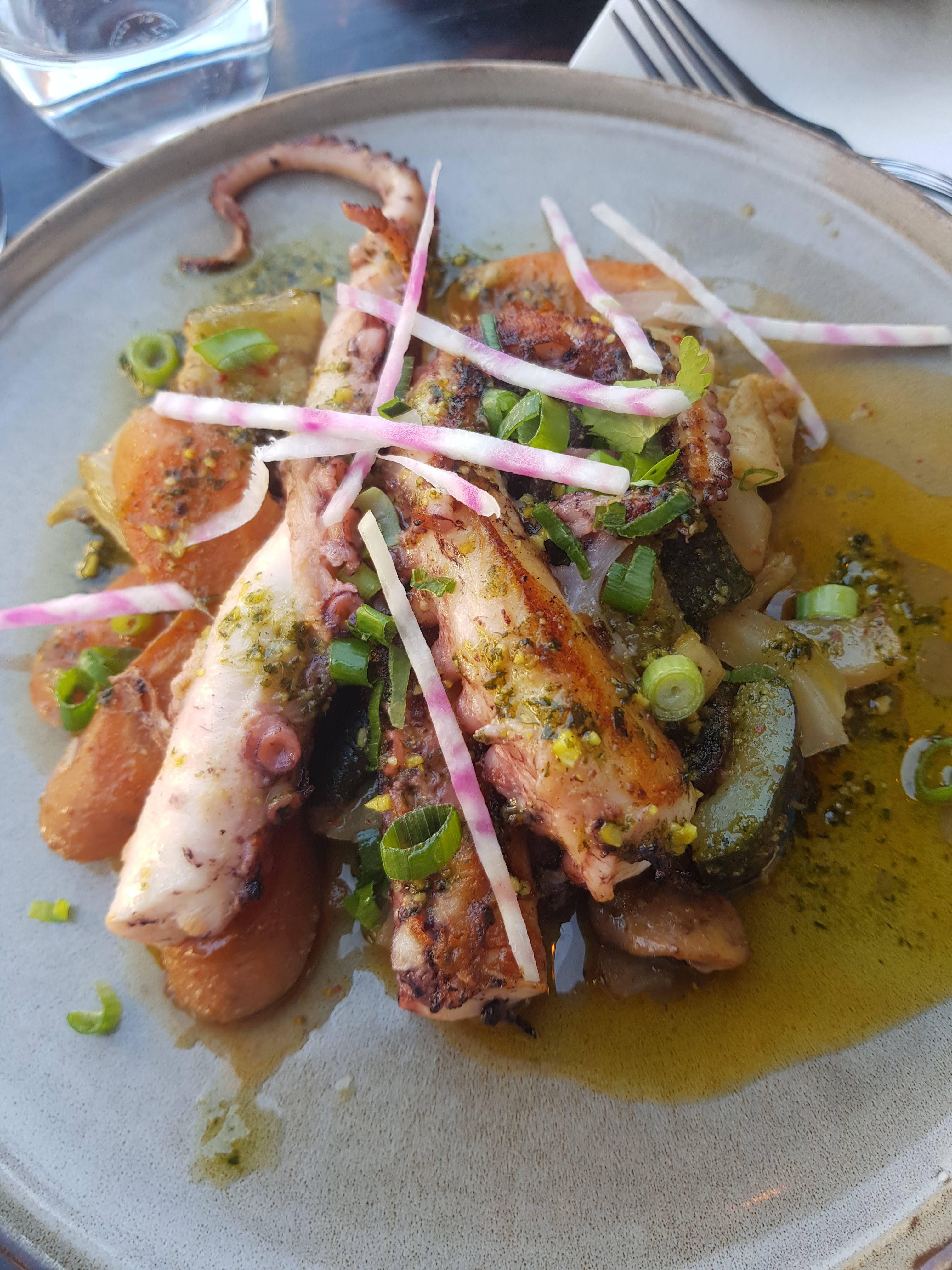 On a aimé l’accueil, le service, la déco, les plats j’ai pris le poulpe avec un risotto délicieux, j’en ai rarement mangé d’aussi tendre. Le fish and chips du menu enfant très bien aussi. On était 4 et on a passé un très bon moment 👍