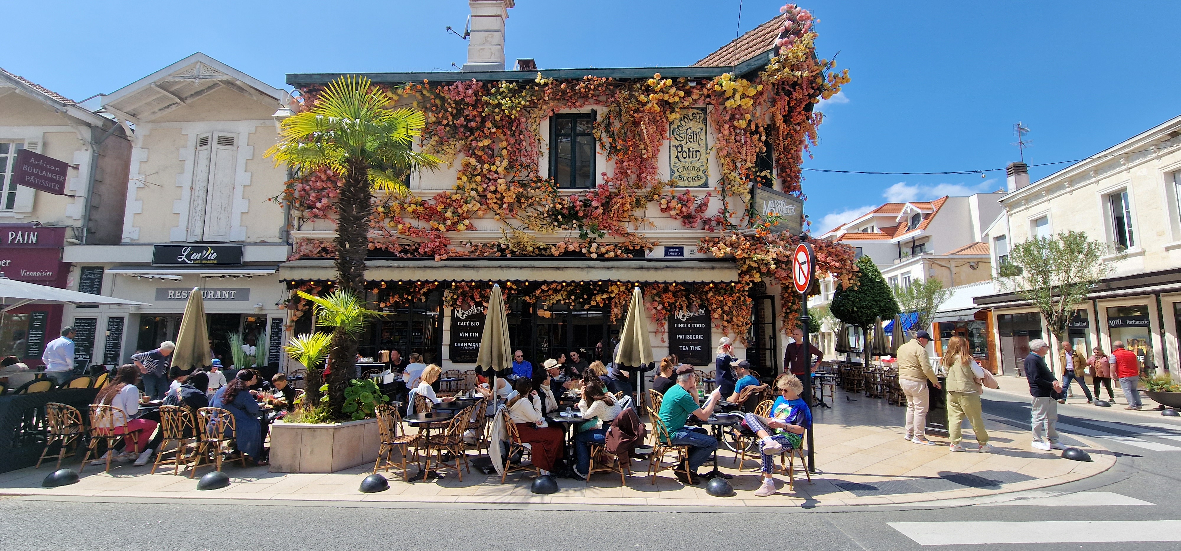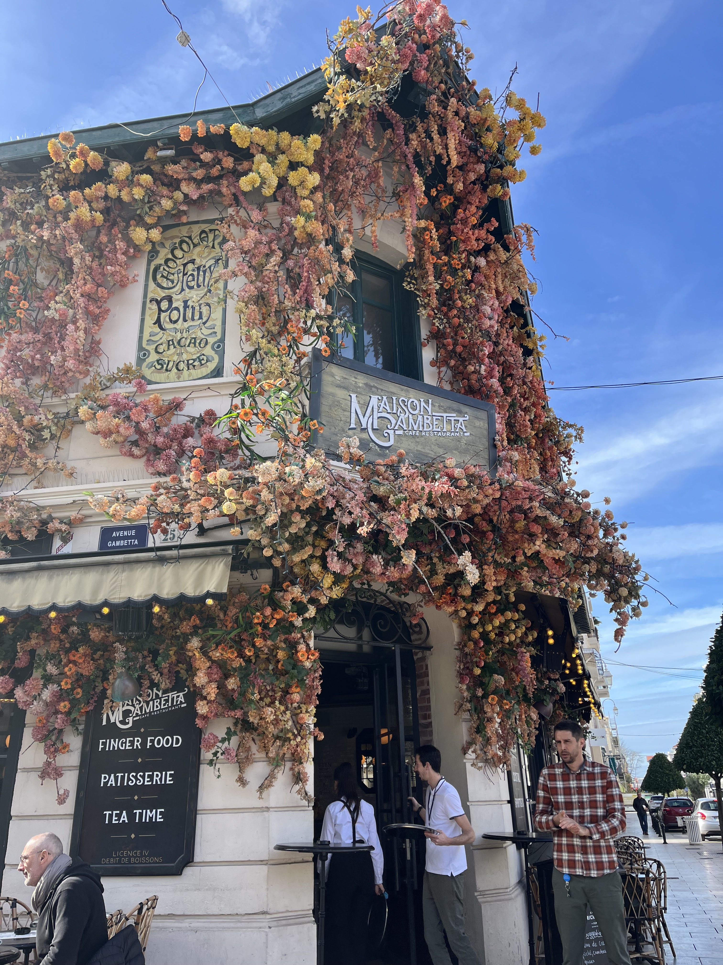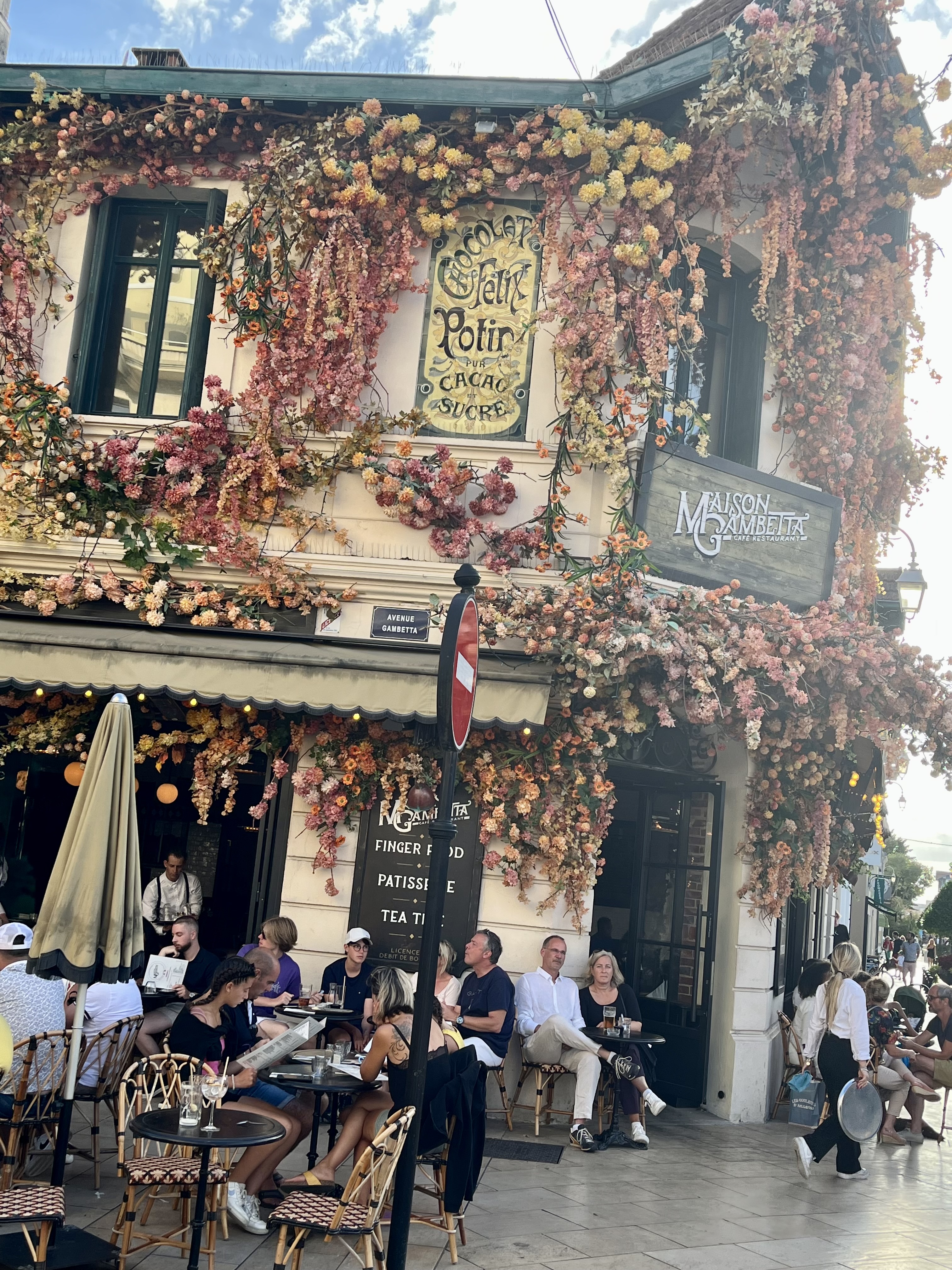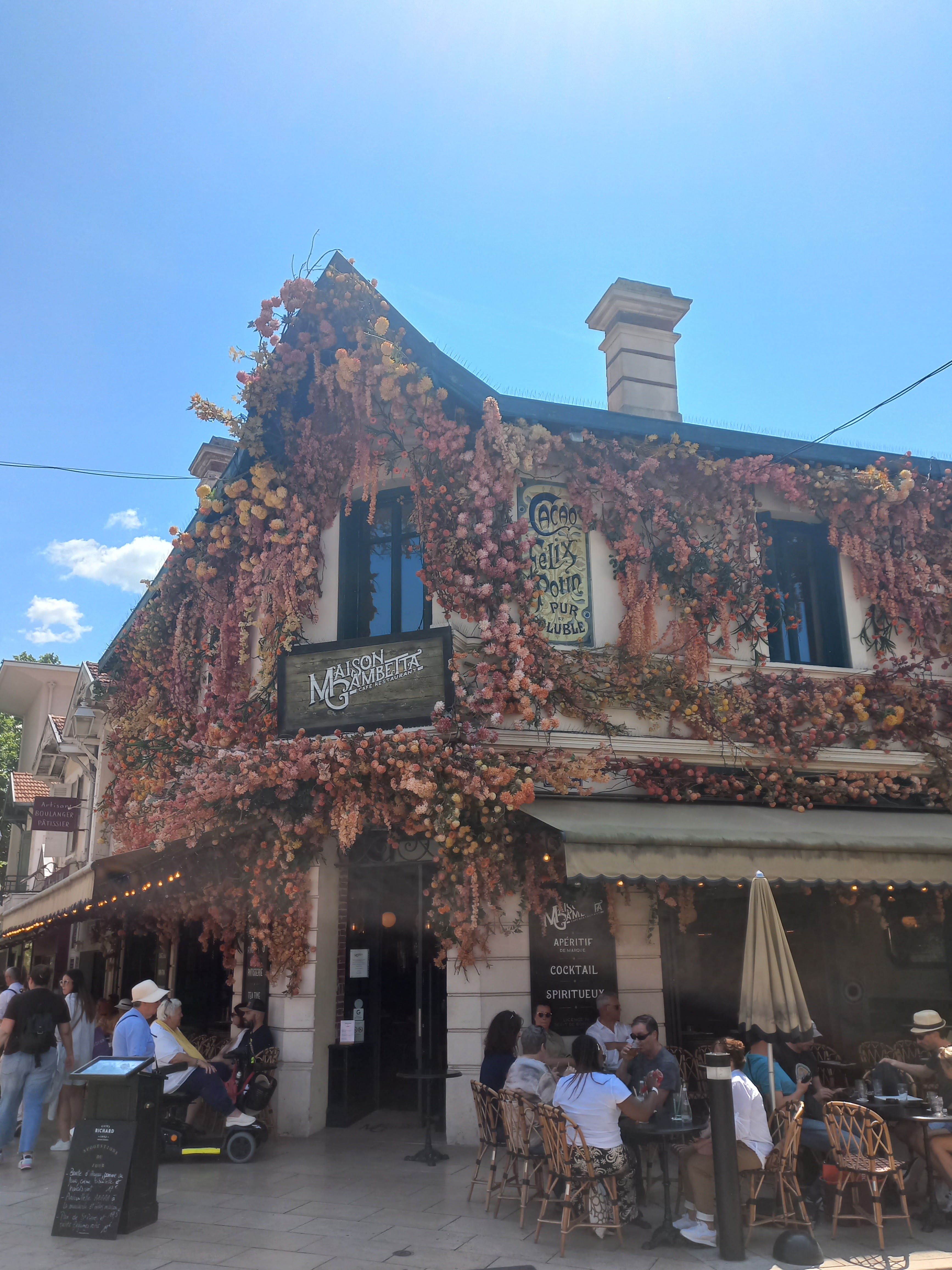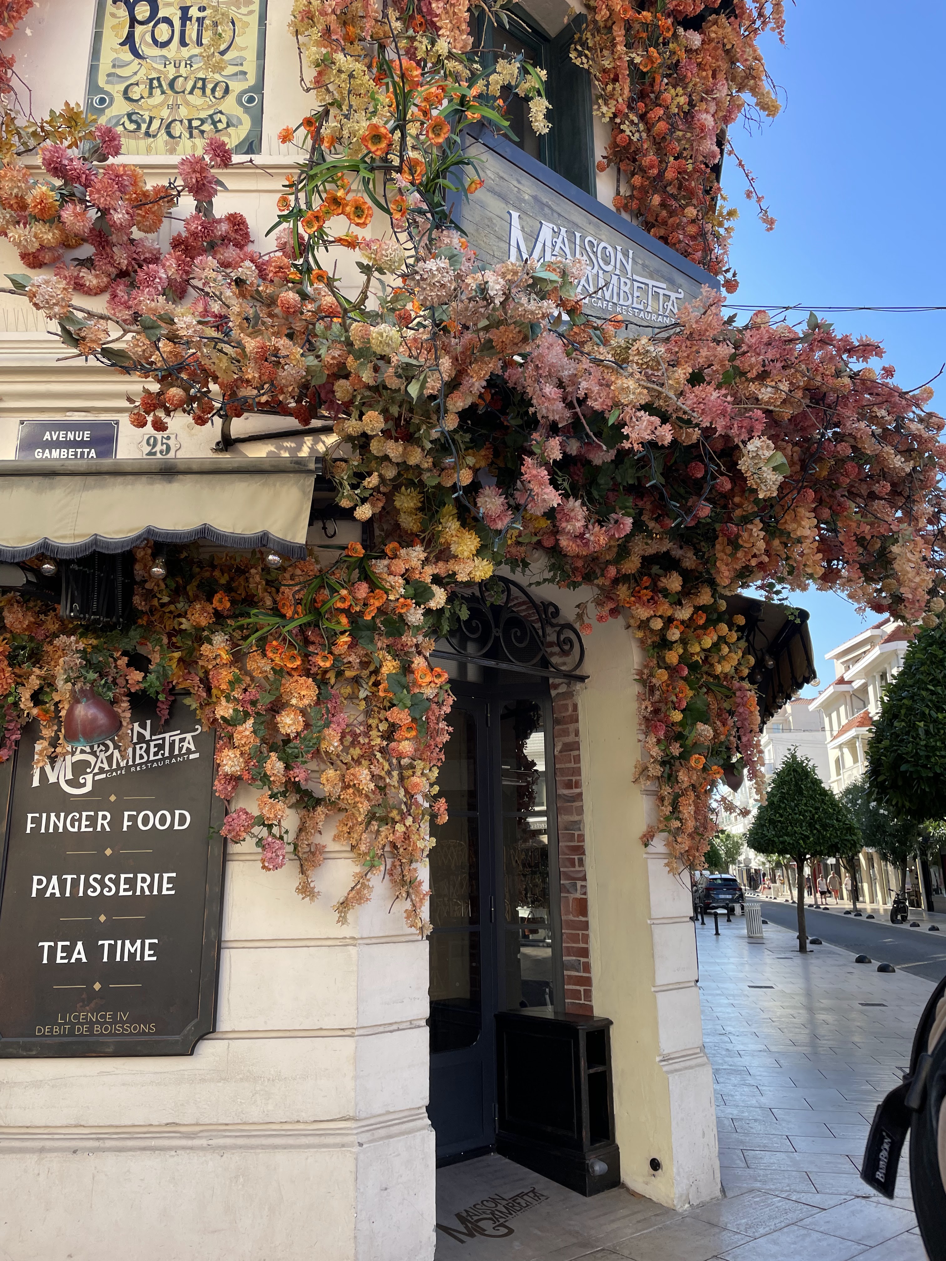 Balade hier sur Arcachon petite pause à la maison gambetta première fois. Jolie devanture fleurie 😍 Le chocolat viennois je recommande