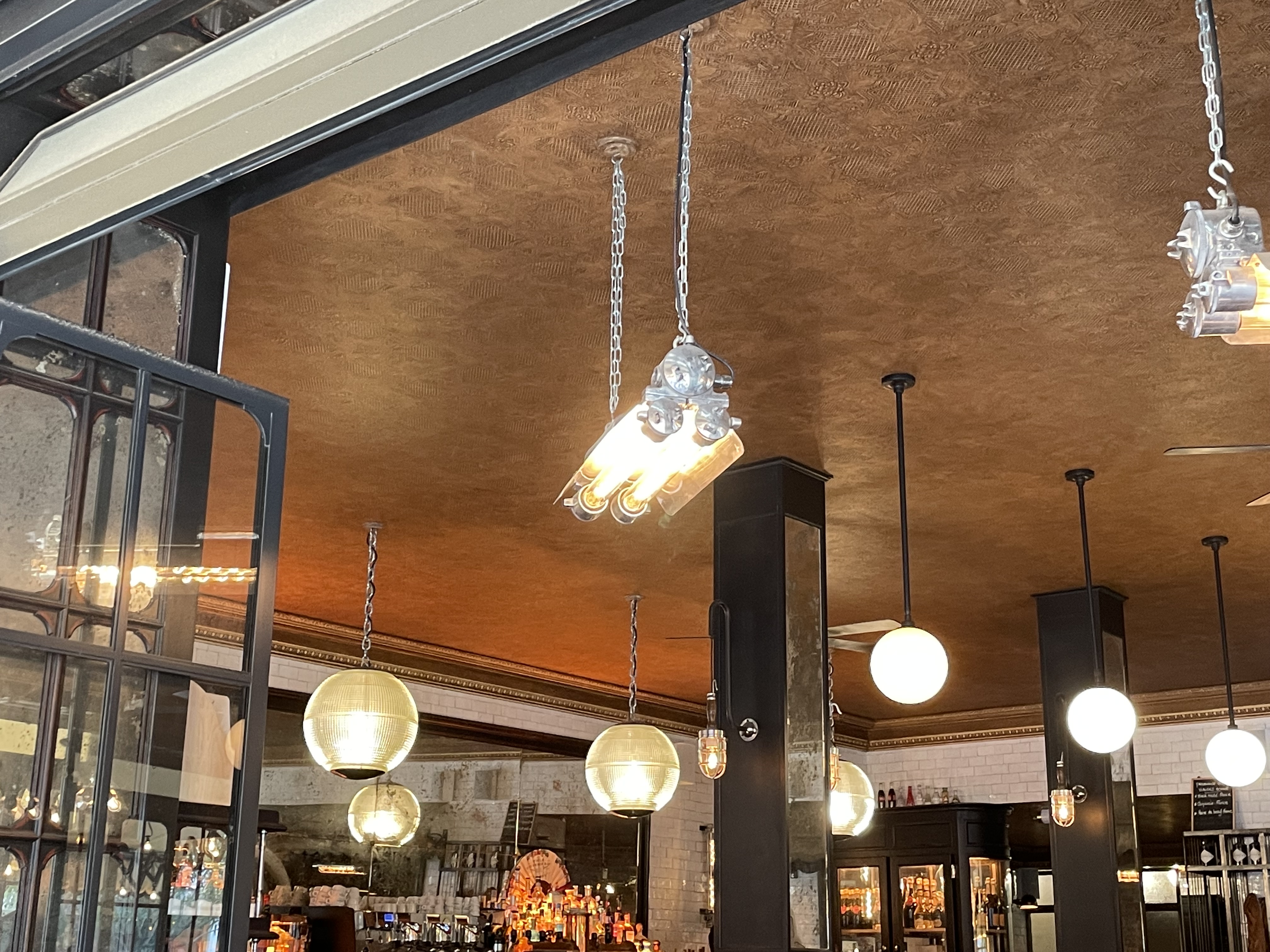 Un bar très sympa! Très esthétique qui plus est! Les spritz sont vraiment bon. Petit bémol pour l happy hour qui n est pas valable en salle ou en terrasse... Mais uniquement au bar. C est (heureusement) la première fois que je vois ça...