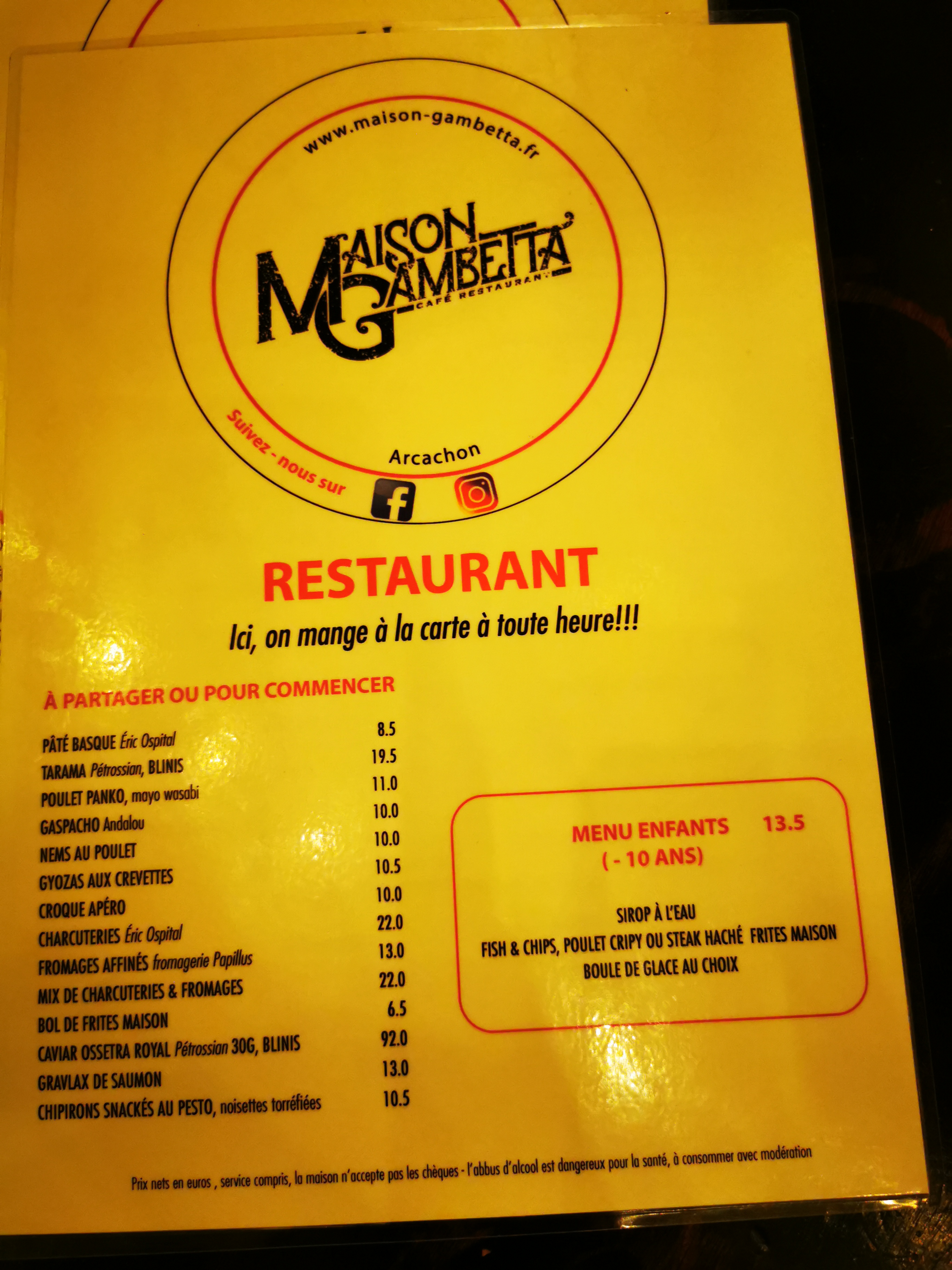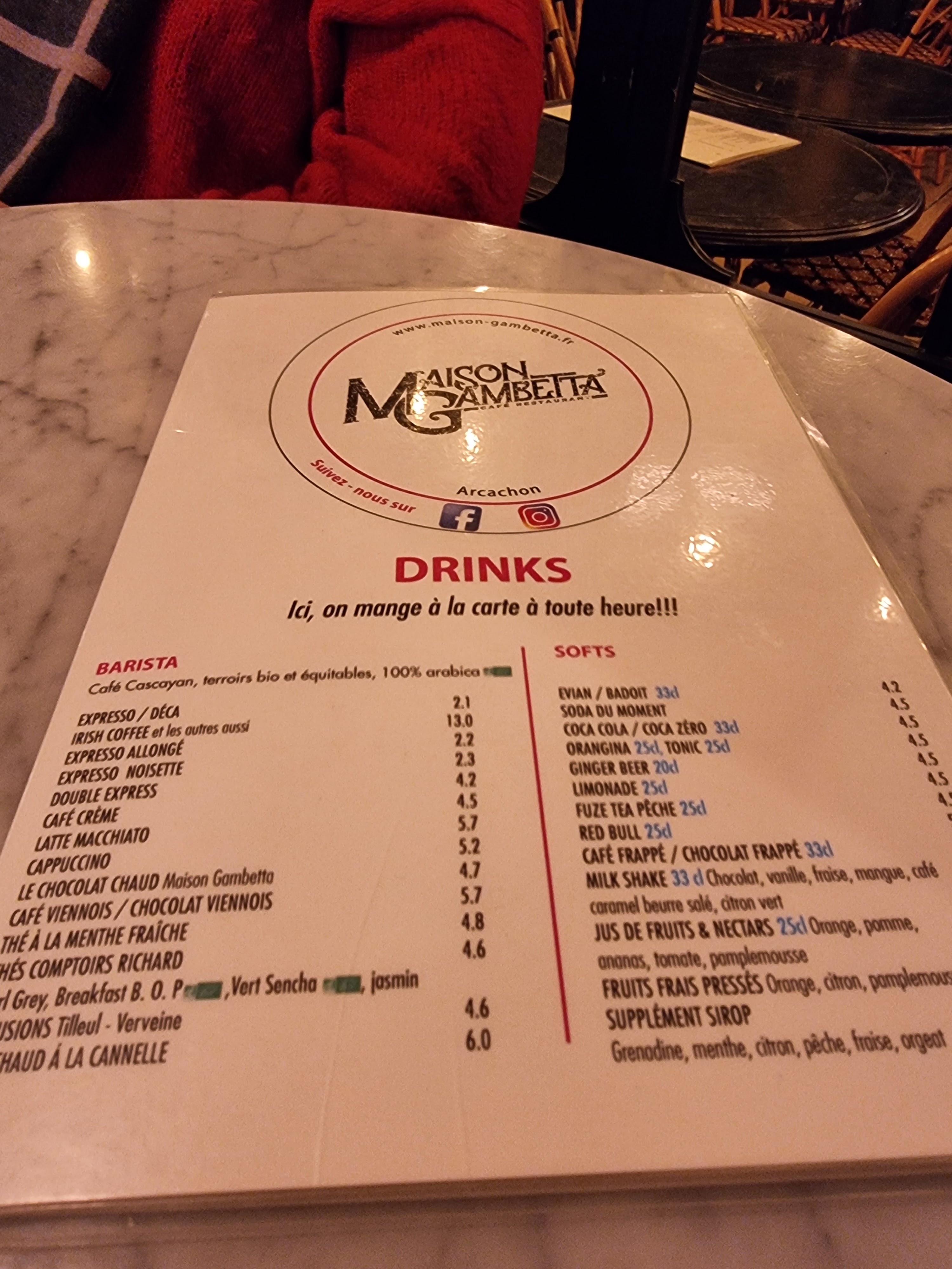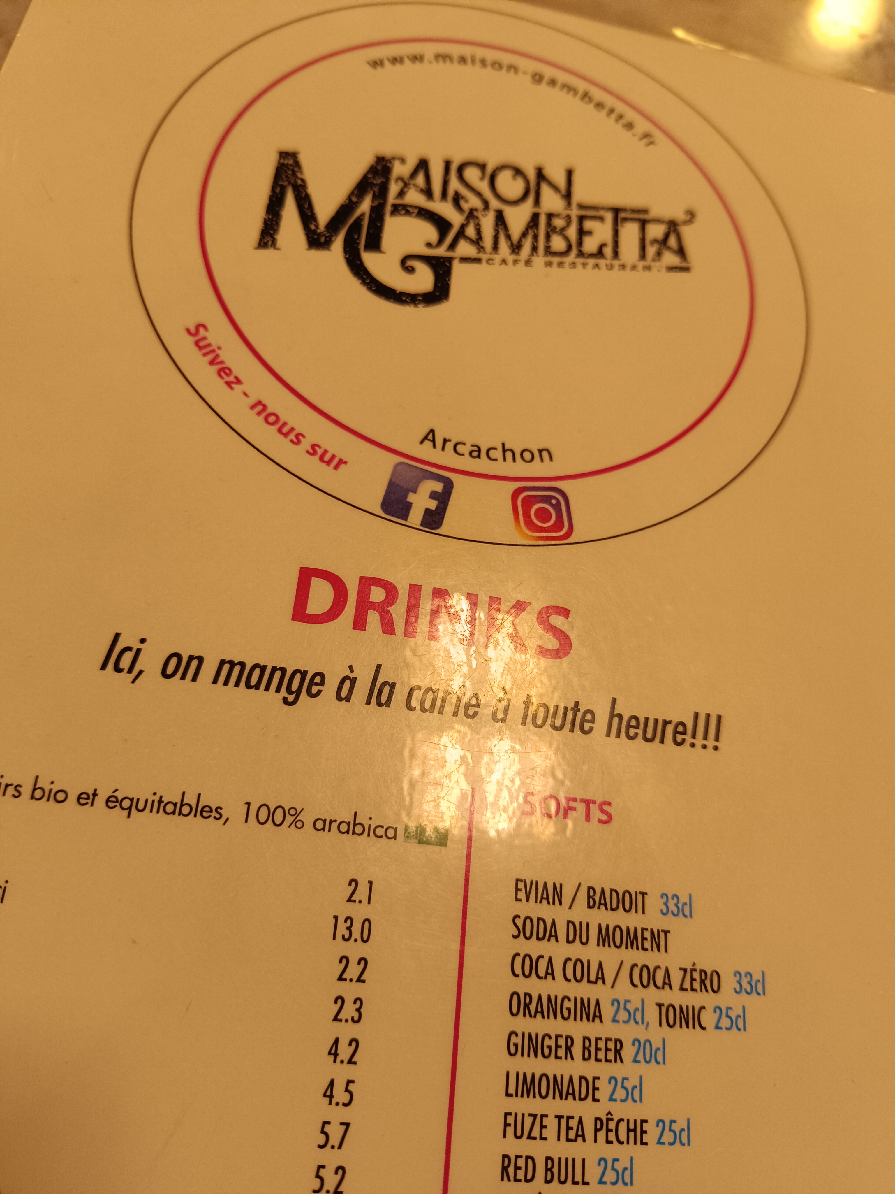 Très belle soirée passée dans cette belle institution, un très beau et très confortable bar-brasserie-restaurant localisé au cœur de la ville d’Arcachon. Très bon plats. Très bons et originaux cocktails et moktails. Ceux qui ne boivent pas d’alcools ne sont pas oubliés. Et la liste des vins et spiritueux est vraiment très agréables et donne envie d’y passer un agréable moment, ce qui a été le cas. Et avec cela, dans un magnifique cadre, avec une équipe au top, très conviviale, à l’écoute des clients (ce qui est parfois devenu rare dans certains restaurants et bars, même de bon niveau). Et le Patron est au top, attentionné: on voit qu’il aime son métier. Merci à la @MaisonGambetta pour tous ces efforts et bien s’occuper de ses clients, des plus jeunes au moins jeunes, et avec un super écran géant et rétractable pour suivre les événements sportifs en toute convivialité.