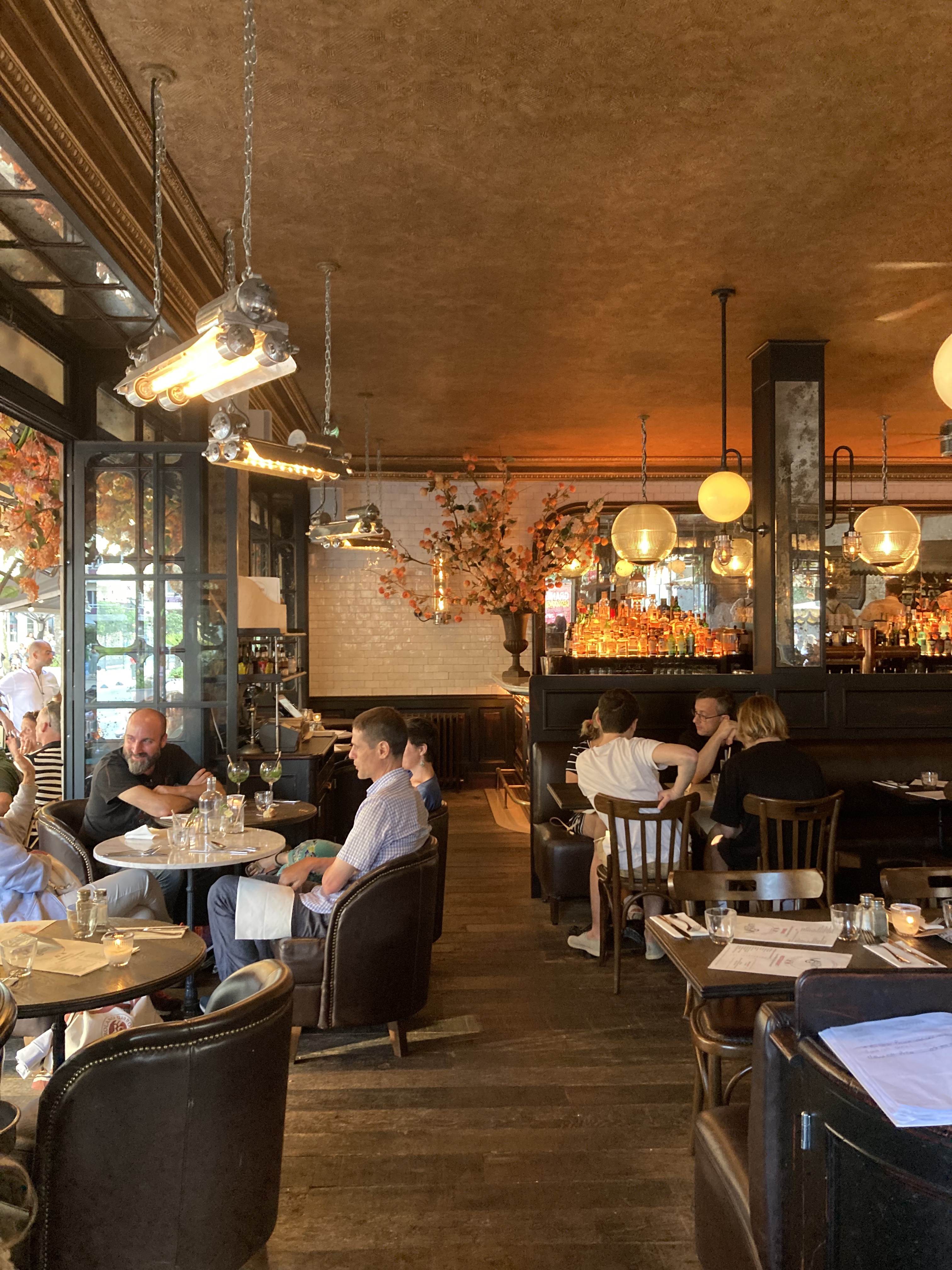 Le lieu est très bien placé et le bâtiment très joliment décoré. La décoration m'a fait penser au pub de Dublin le temple bar avec ses fleurs qui pendent sur la façade. Nous n'avons pris que 3 verres apéritifs, je ne peux donc pas donner mon avis sur la cuisine. Le serveur n'avait pas envi de discuter et répondre aux questions. C'est dommage car les conseils et recommandations sur les cocktails signature m'auraient aidé. J'ai choisi le thé bbq bien trop fort en alcool a mon goût, je n'ai pas réussi a le boire. J'ai recommandé un cocktail sans alcool pour être sûre de pouvoir le boire sachant que je n'aurais pas de recommandations. C'est vraiment dommage et la sympathie du serveur fait vraiment la différence en restauration.