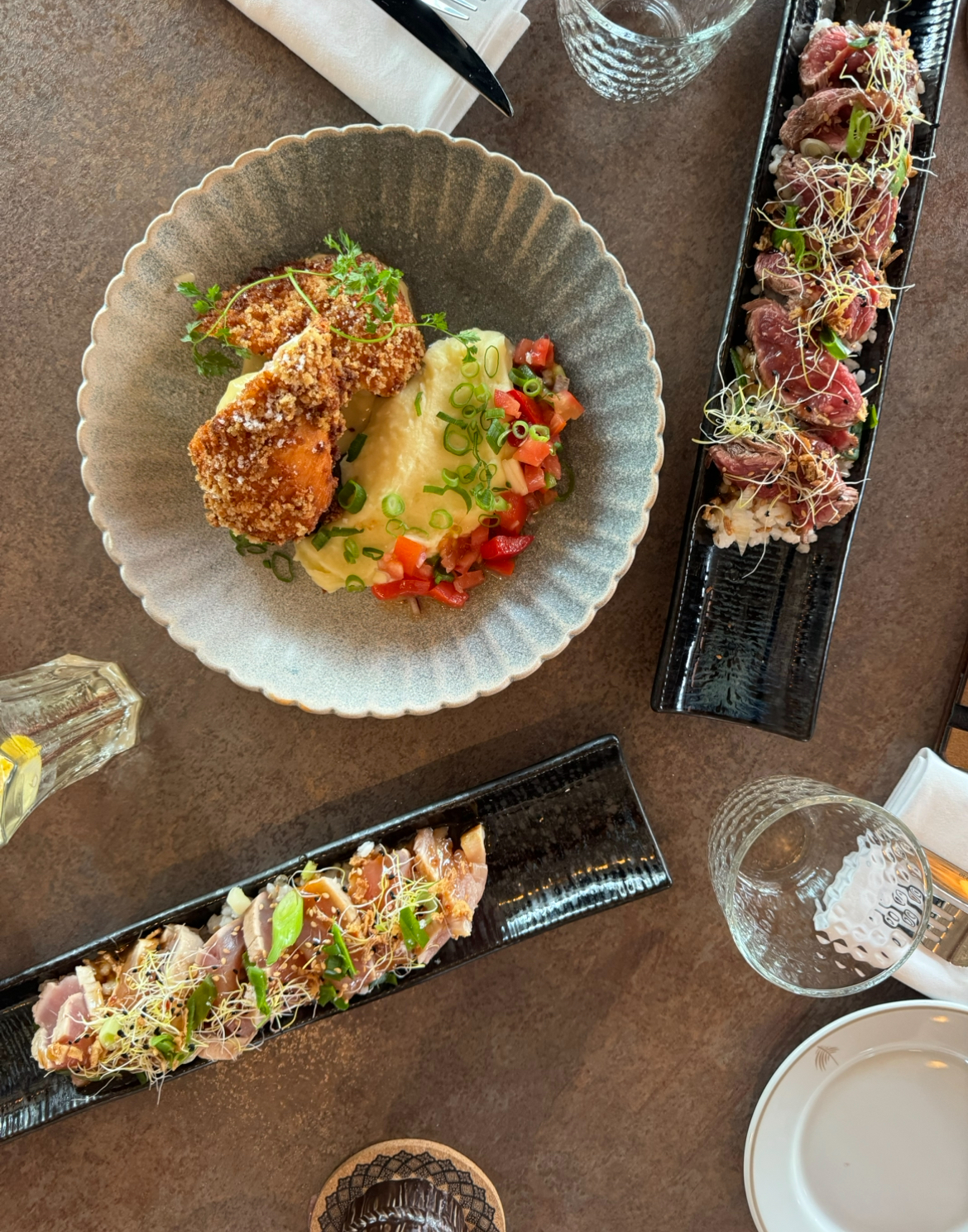 Magnifique restaurant avec un personnel d’accueil très élégant Nous avons déjeuné en extérieur : ceviche de bar, gyozas, frites maison cheddar/truffes, noix d’entrecôte, une tuerie !!! et un concept sympa à partager Les cocktails sont très originaux avec la fumée Le personnel est aux petits soins Nous reviendrons sans hésiter 😉