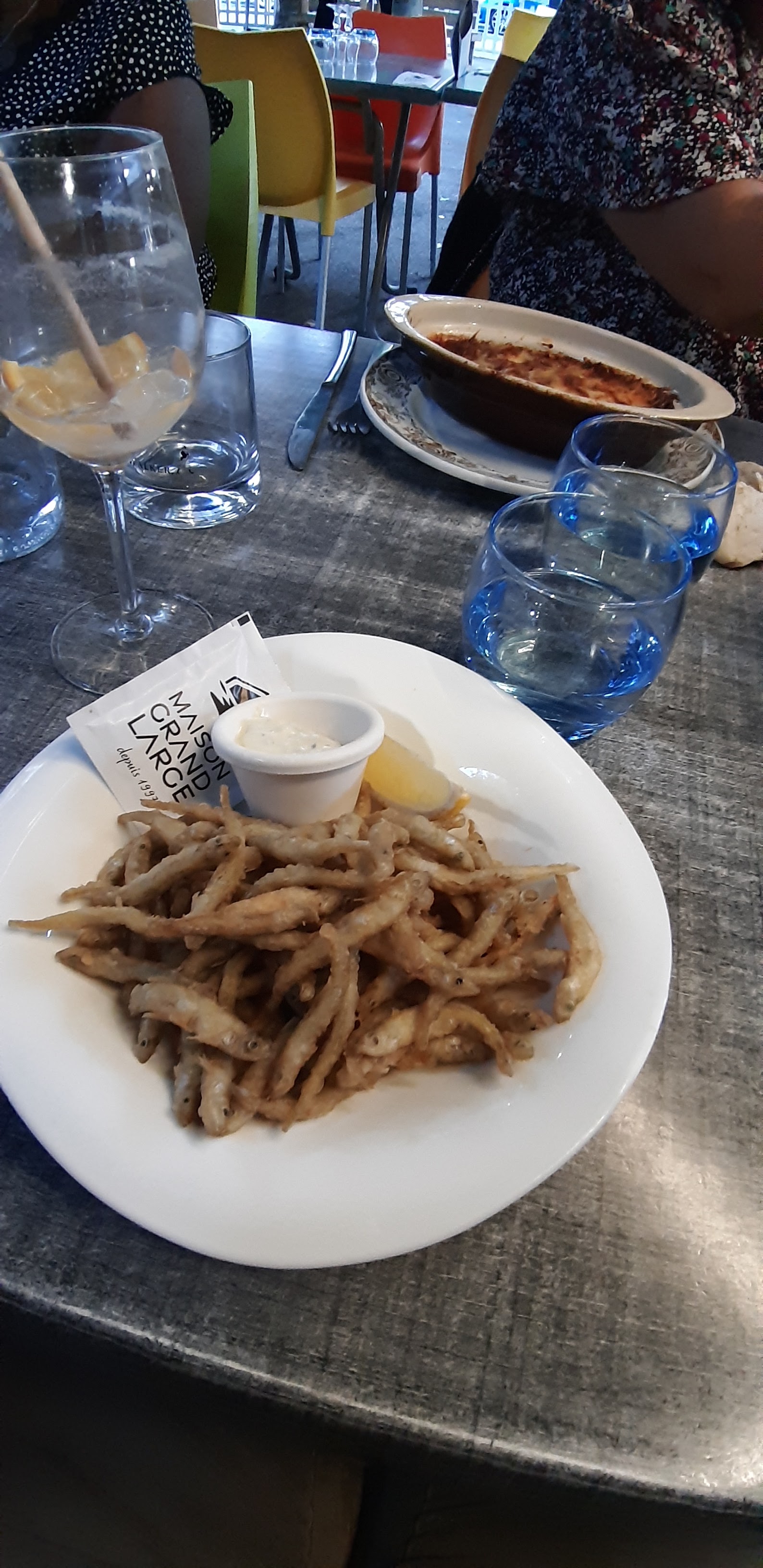Très bon déjeuner avec notamment une petite friture de petits poissons parfaite et une viande excellente et servie bleue comme demandé. Cadre très agréable terrasse ombragée avec une petite brise. Un accueil très aimable et du personnel souriant et efficace. Un bon moment qui donne envie d'être renouvelé.