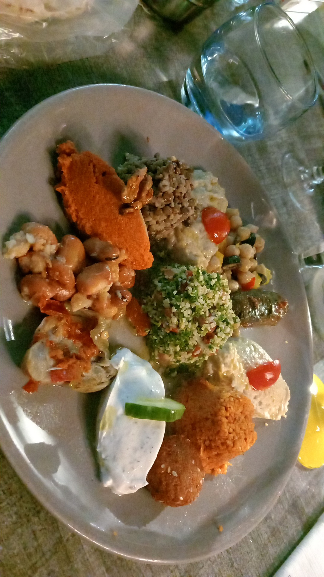 Nous avons passé un très bon moment en famille. Le buffet de hors d'oeuvre était très varié avec des produits exotiques: houmous, feuilles de vigne etc La friture était excellente et surtout, le service était parfait: les serveurs sont très agréables et l'accueil parfait. Nous étions tous enchantés de notre soirée. Je recommande vivement. Pensez à réserver.