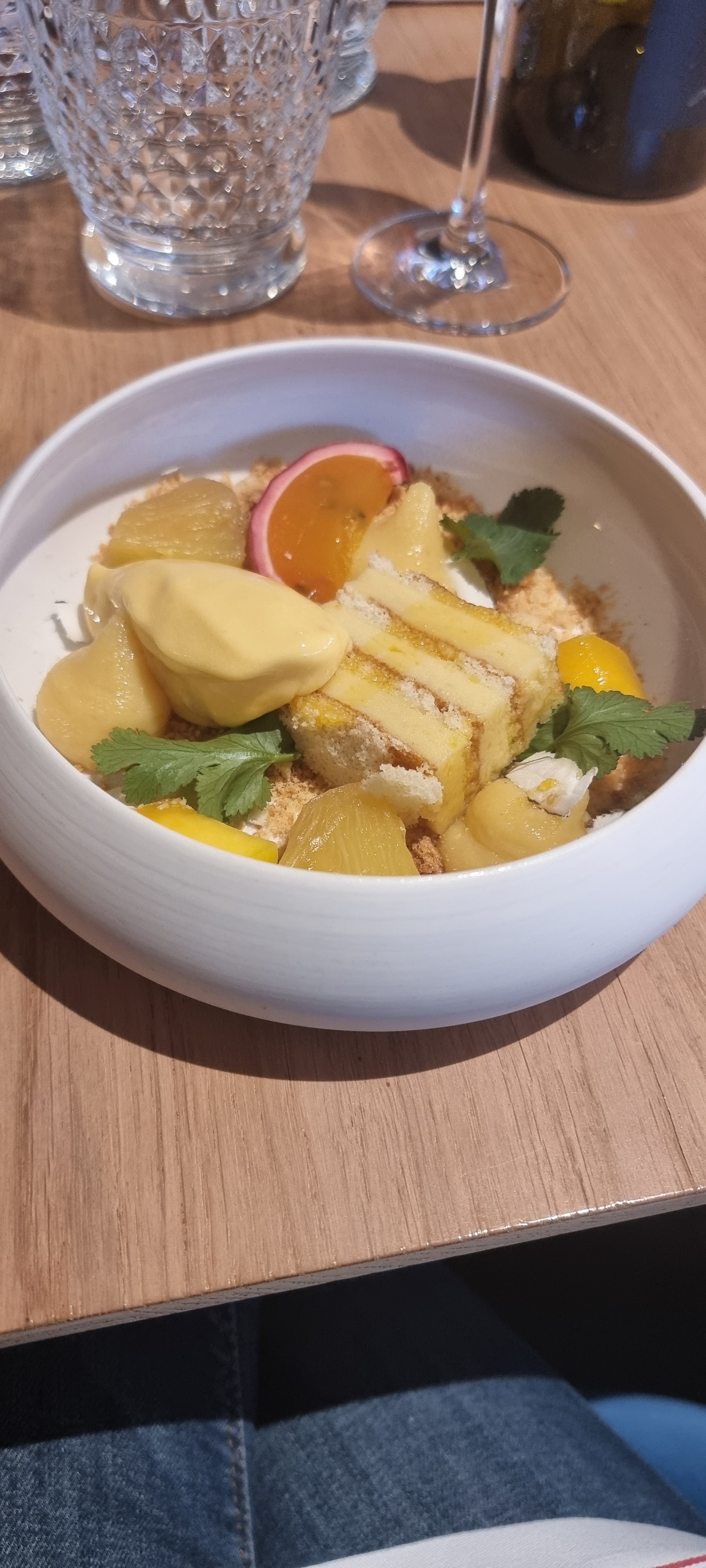 Belle découverte ! Nous y sommes allé le midi. Ambiance cosy. Le service très agréable. Je conseille les amateurs de vins d'y aller, vous pourrez avoir un vrai échange avec le Maître d'hôtel/sommelier. Pour commencer une petite mise en bouche surprenante, terrine de calamar et veau, je n'aurais jamais osé mélanger ces deux mets, et pourtant ça fonctionne parfaitement. Personnellement j'ai beaucoup aimé le filet de daurade cuit comme il faut. (c'est toujours agréable de manger un bon poisson bien préparé) et la cerise sur le gâteau, le dessert exotique, sa crème à la mangue était... Délicieuse 😍 !! j'aurai aimer en avoir plus. (oui je sais, il ne faut pas abuser des bonnes choses). Le flan parisien (en tartelette) était servi avec une très très bonne glace vanille. On y retournera avec plaisir. Et manger des plats aussi bon et avec cette qualité de service pour ce prix. J'y retournerai régulièrement volontiers.