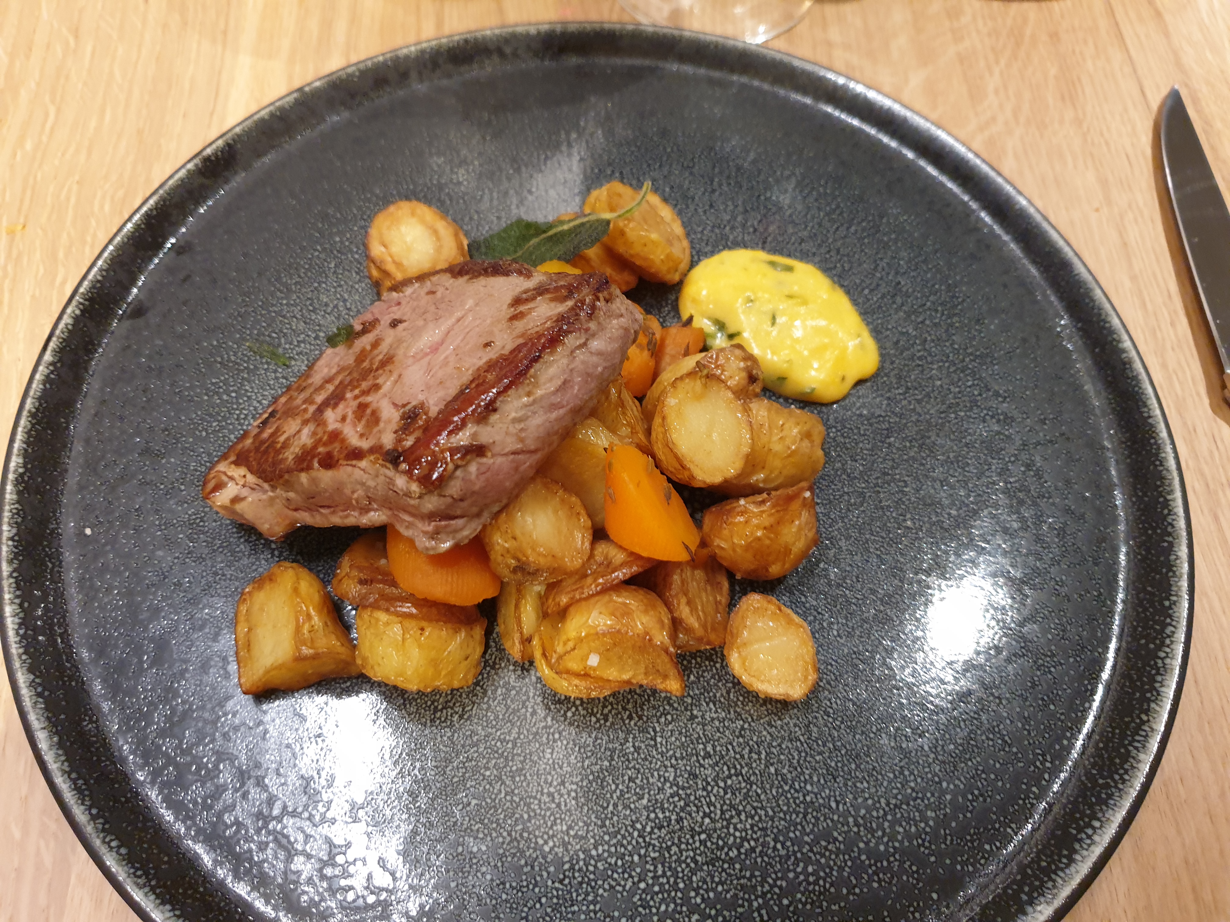 Accueil agréable, très belles salles (cosy et chaleureuses) Servi avec le sourire et humour. Pour l'apéro avoir des amuses bouches serait un +. Repas du menu très bon, mettre peut-être un autre choix pour l'entrée le plat et le dessert. Vin au verre bon mais un peu cher. Dans l'ensemble avons passé une très bonne soirée, nous reviendrons sans doute pour goûter d'autres mets.