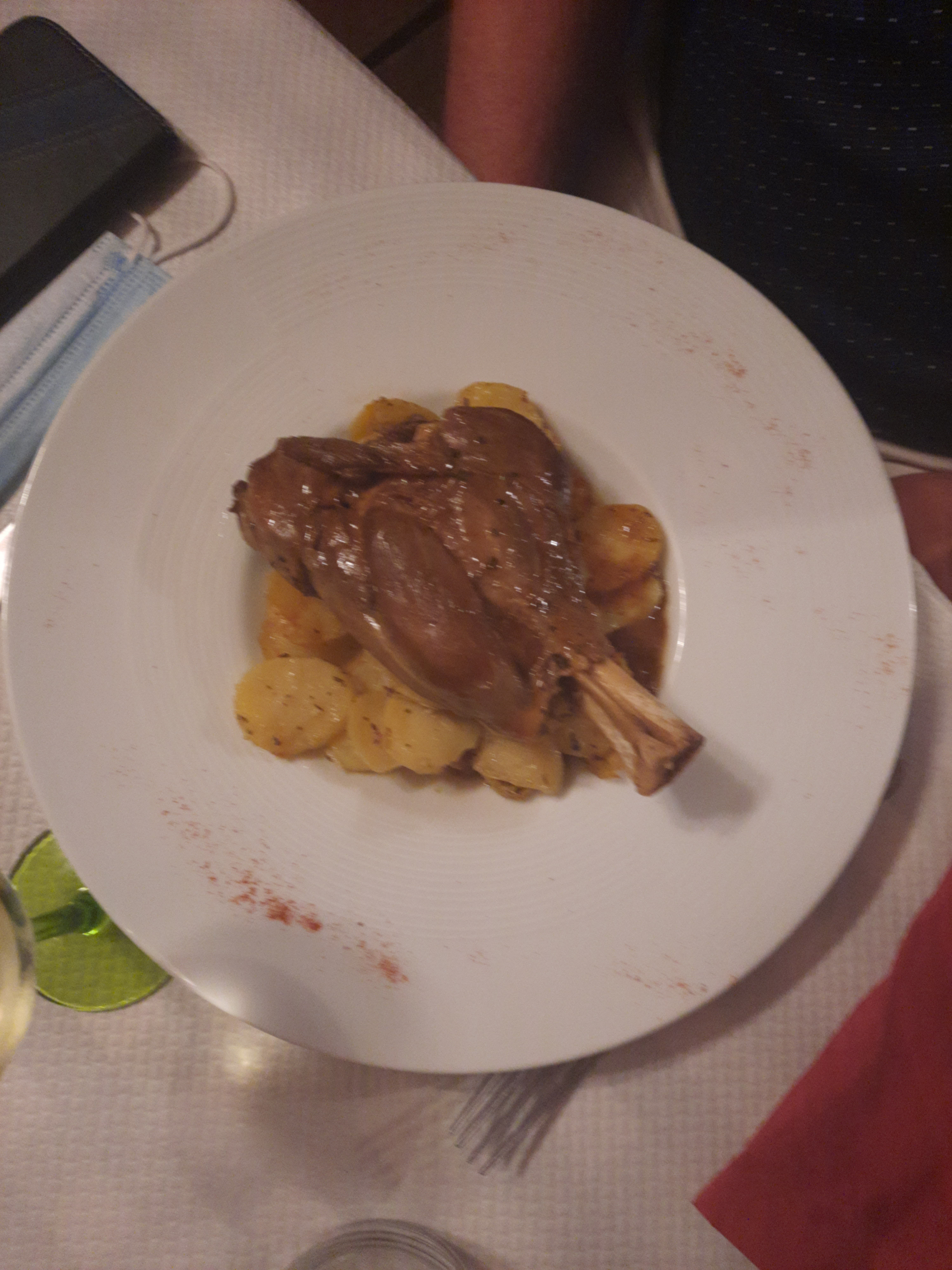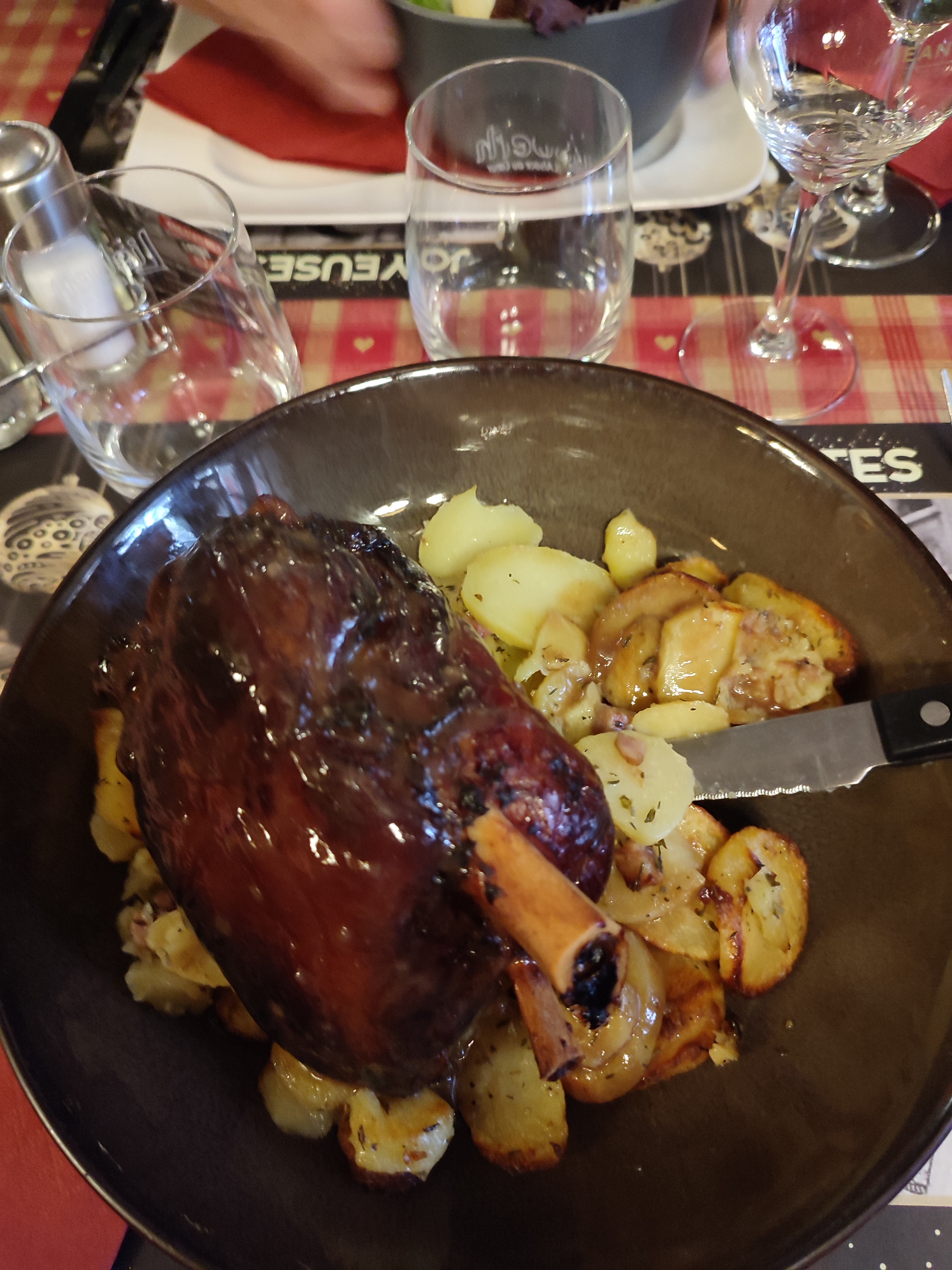 Nous avons pris le jarret avec pommes de terre sautées, un délice ! Dommage que la table au centre ait été aussi bruyante, on s'entendait difficilement parler...