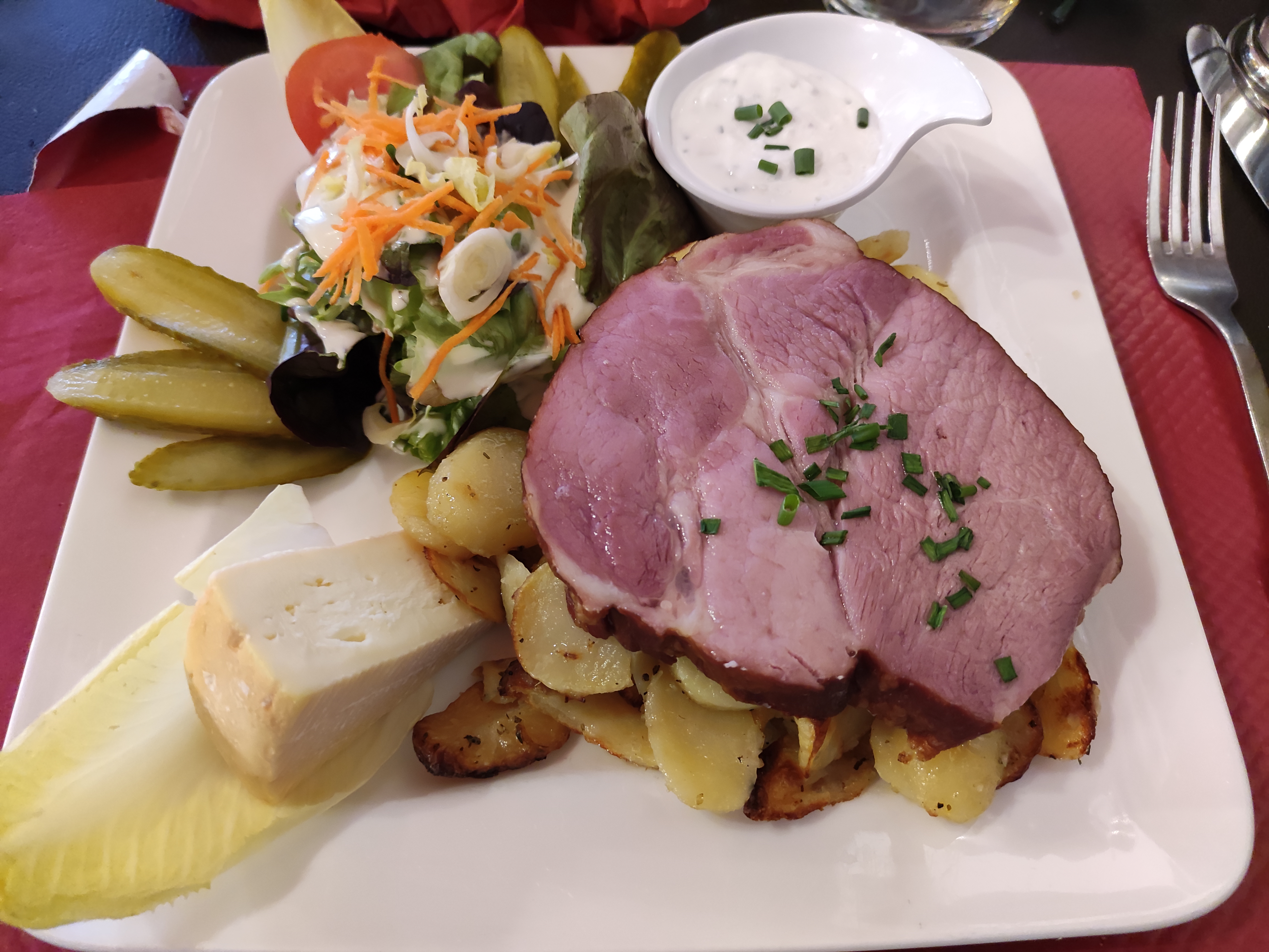Une bonne choucroute comme c'est possible d'en manger un peu partout. Cette choucroute bien riche manquait un peu d'aromates à notre goût. On a trouvé qu'elle était meilleure le lendemain puisqu'on nous a remis ce qu'il restait dans une barquette que l'on a dégusté. Le village est magnifique !