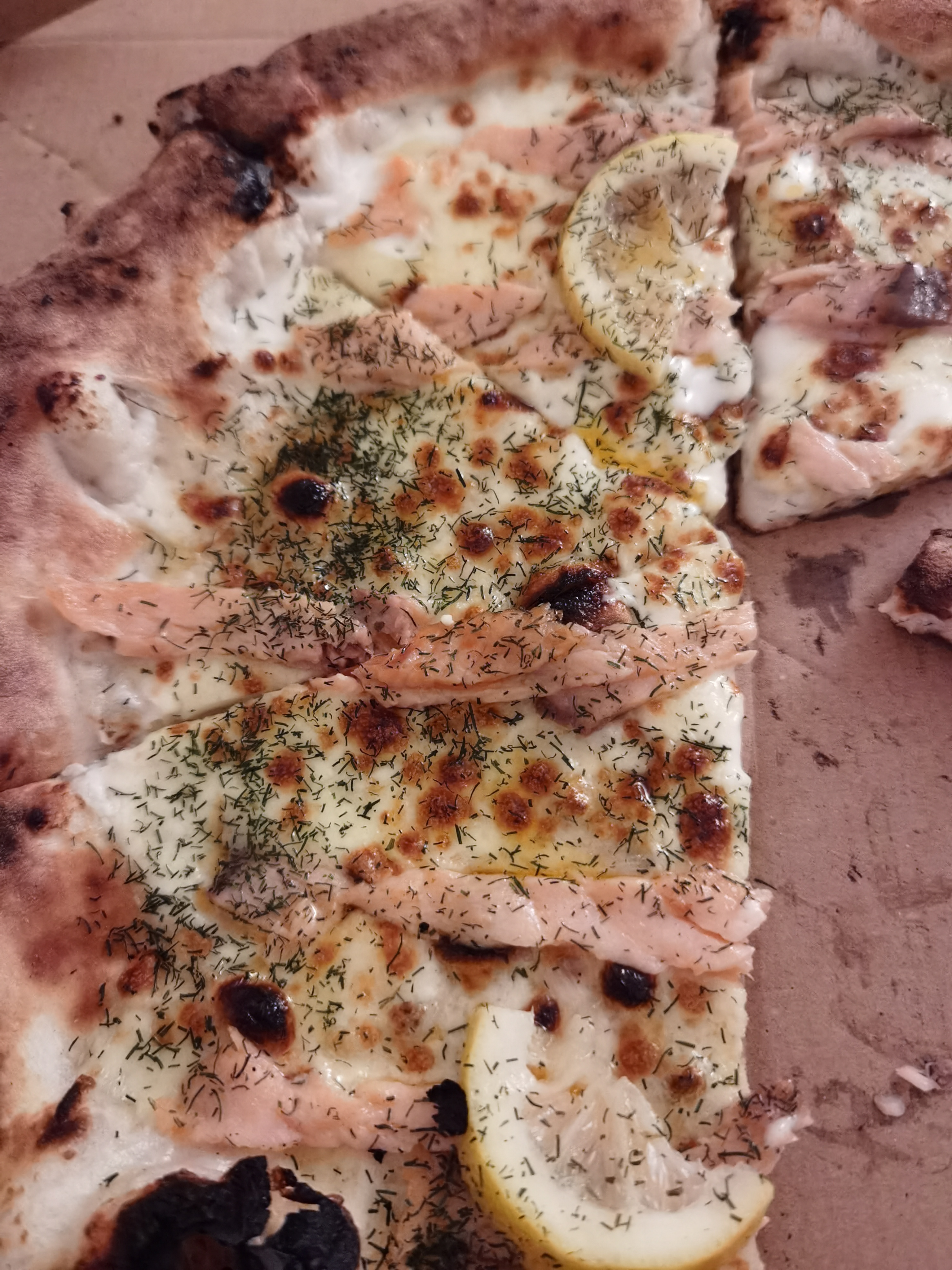 Très peu de saumon, du jamais vu dans une pizza au saumon pourtant elle est à 16€ sur ubereat ! Du coup le goût est passable, je ne recommenderai sûrement pas malheureusement