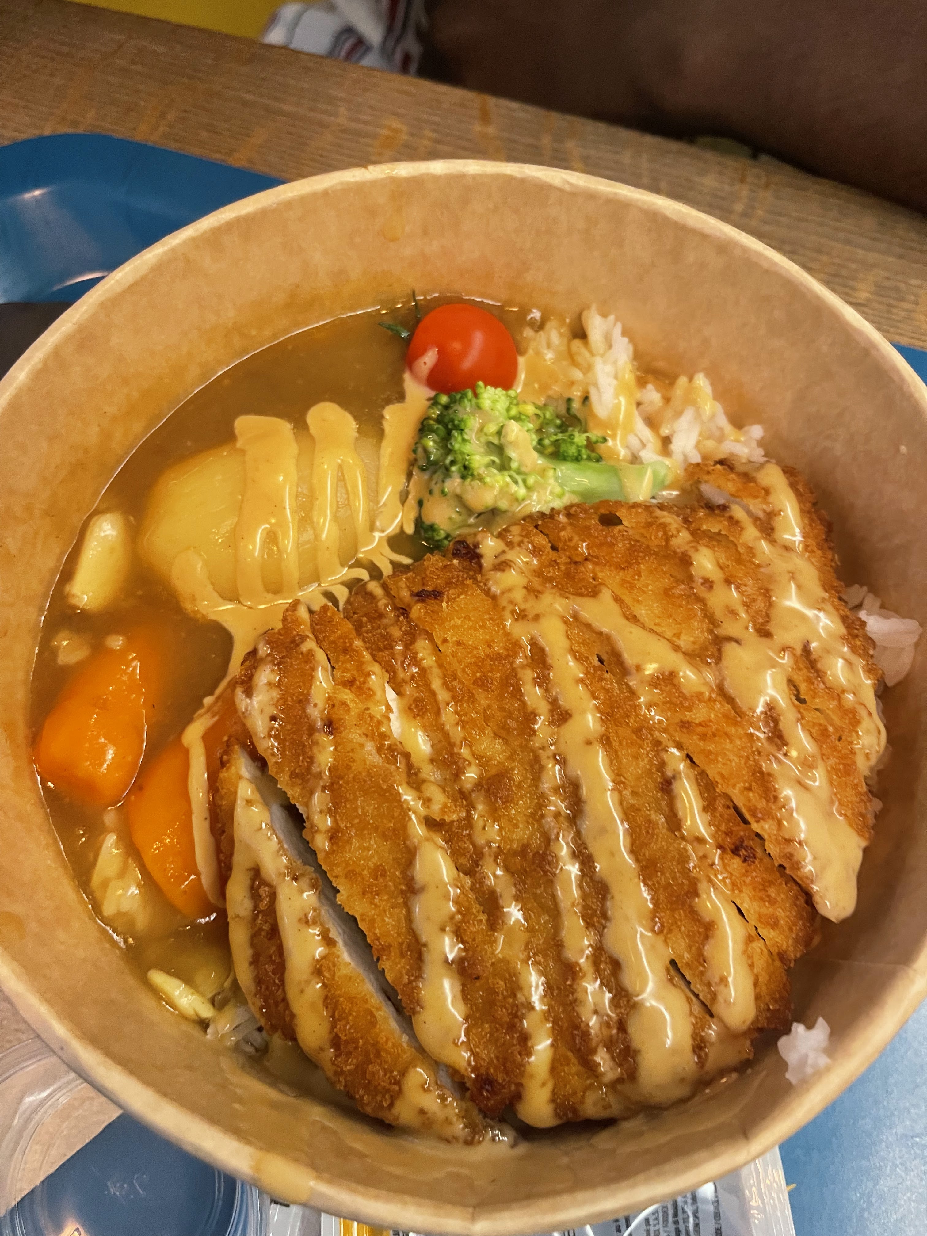 Très propre. L'endroit est spacieux. Situé en face de la gare, vous pourrez donc prendre un repas pour voyager. Normalement, je ne mange pas ce type de nourriture, mais j'avais faim. Ils ne servent pas de poulet aigre-doux avec des nouilles, alors j'ai opté pour autre chose. Le monsieur derrière le comptoir était poli, ce qui est très important pour moi. Je reviendrai très probablement.