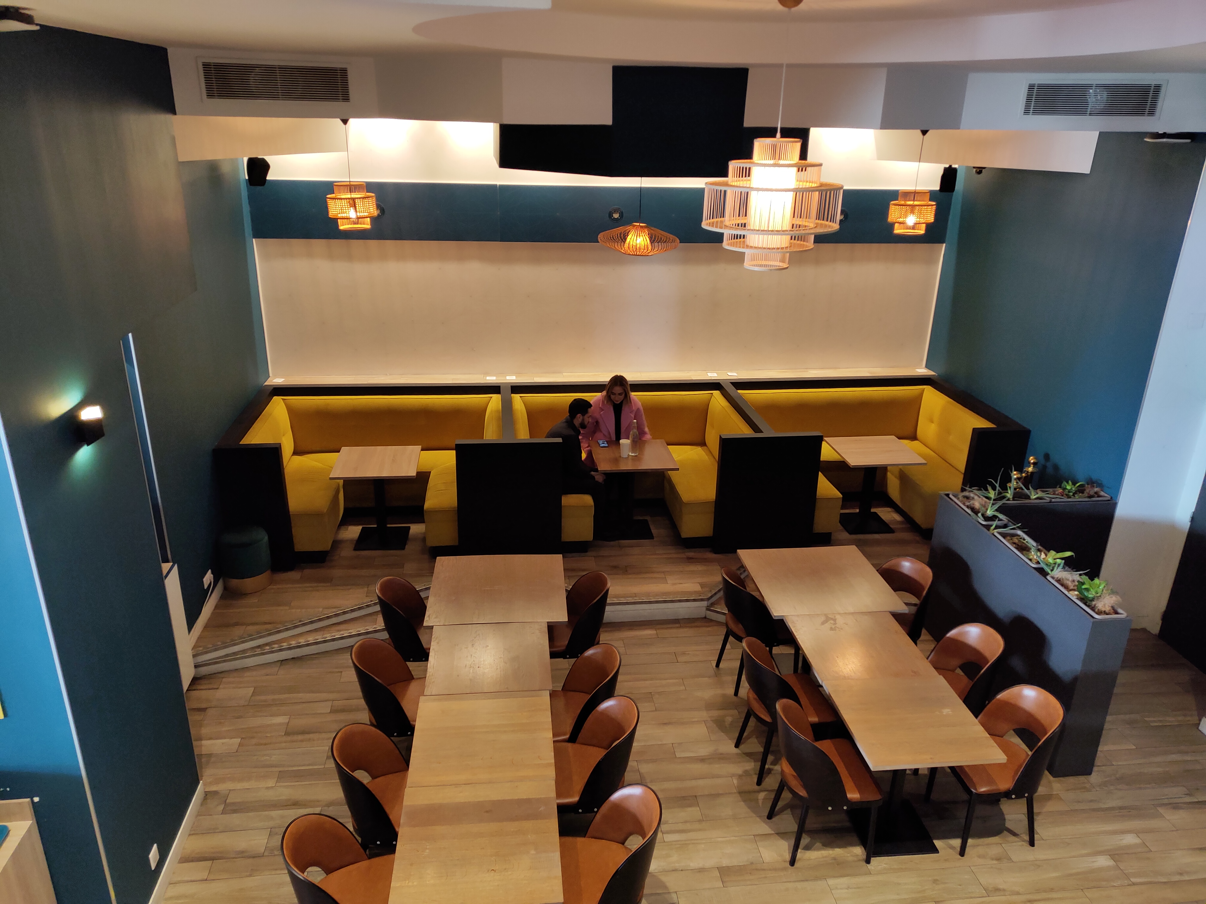 Bonne option pour les voyageurs qui passent par Nice-ville. Salle très haute sous plafond, spacieuse dans des tons vert d'eau, mu végétal. Cuisine asiatique correcte et bien servie. Les commandes se font au bar. La famille qui tient le restaurant est accueillante.