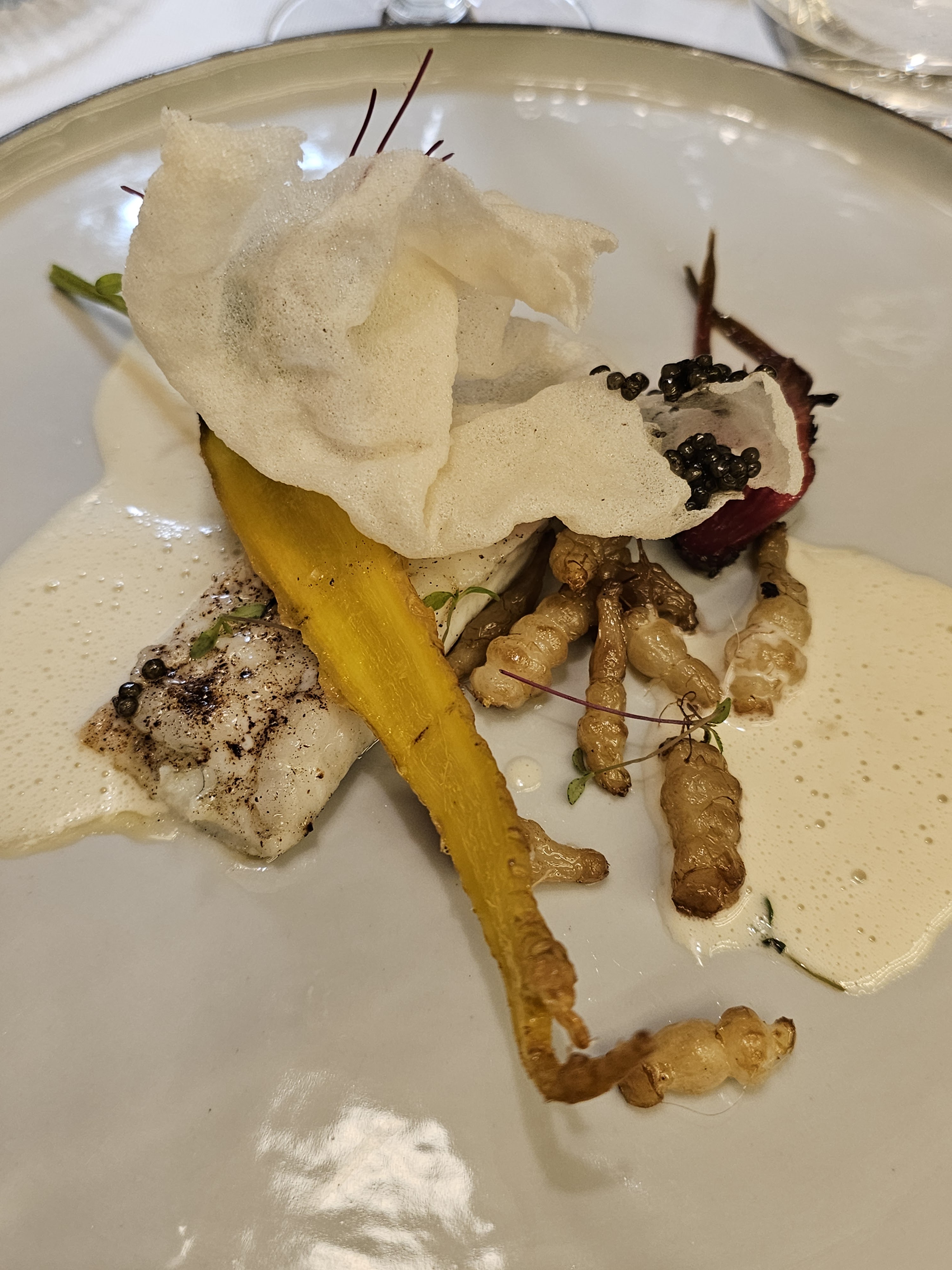 Cuisine raffinée et creative avec des produits d'excellente qualité. Joli cadre. Un peu trop de blabla à mon goût entre les plats et le macaron en amuse-bouche pas top.