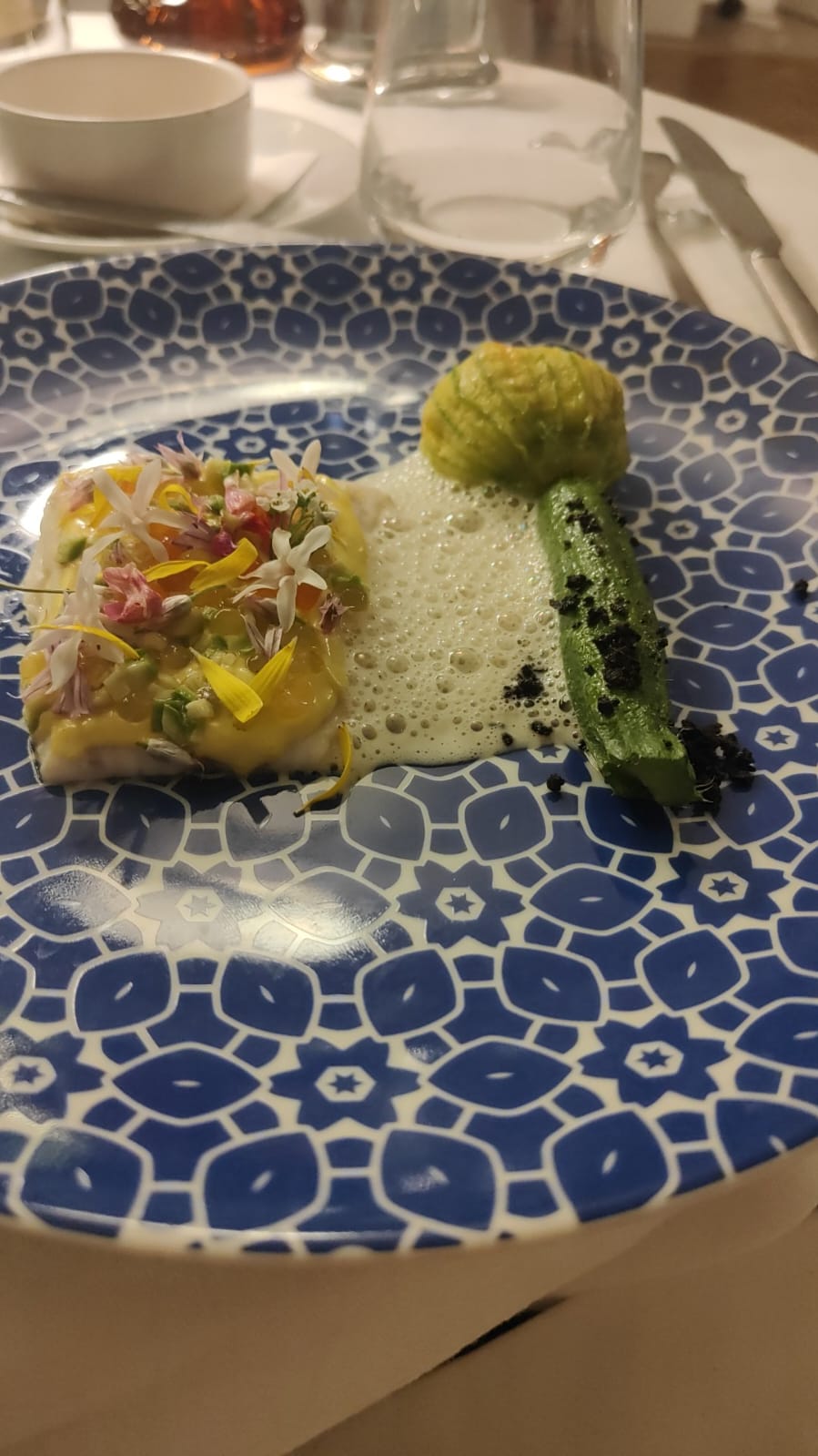 Notre dernière nuit, nous avons apprécié un dîner spectaculaire. À mon avis, la présentation était comme une œuvre d'art. Je recommande vivement ce restaurant. Le savoir-faire et l'expérience que le chef a acquis au fil de nombreuses années transparaissent dans tous ses plats. Les saveurs également convergentes en bouche étaient intenses. Chaque bouchée était parfaite. Nous reviendrons sur cette trouvaille éblouissante et rare à Nice, France UNE GEMME
