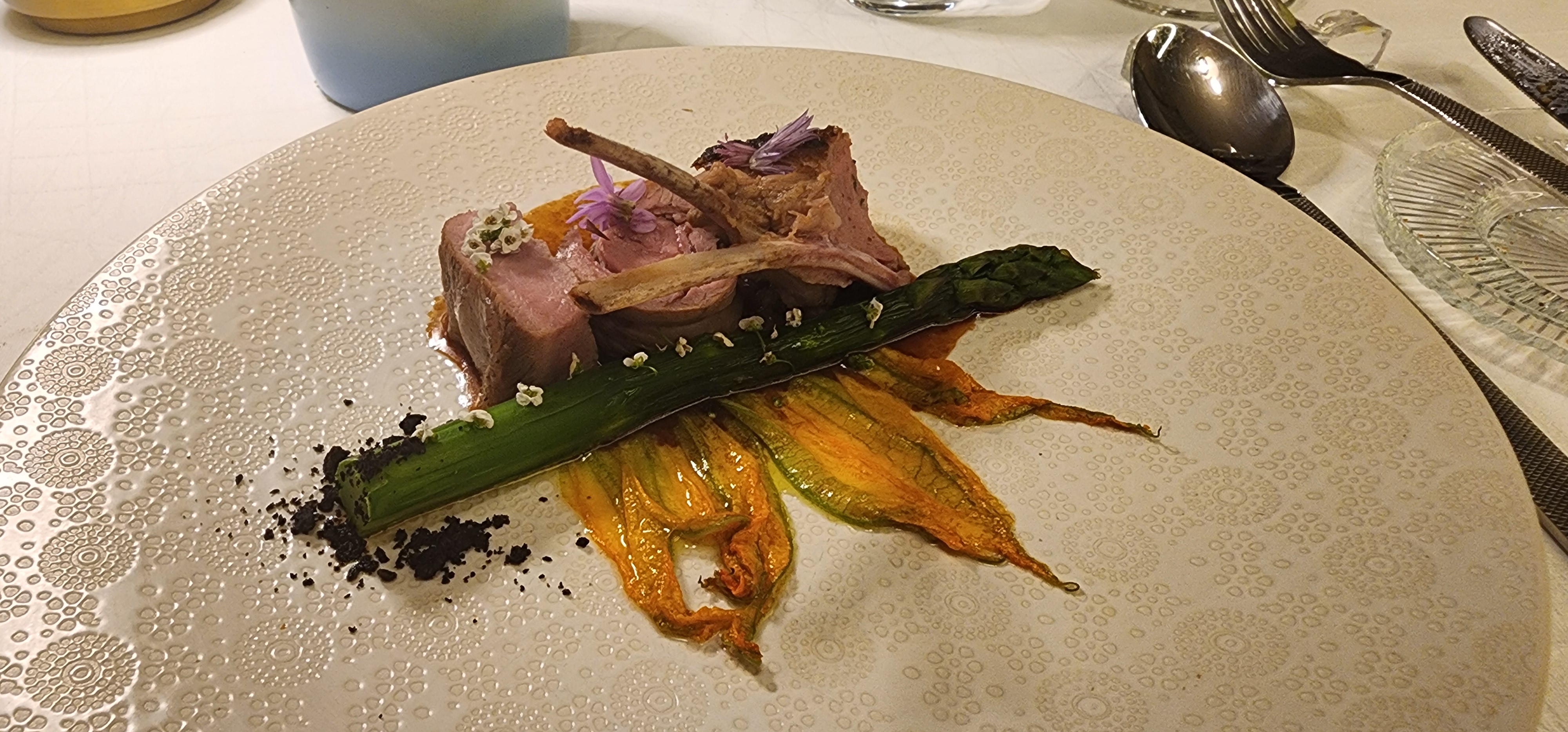 Ma femme et moi avons passé une soirée formidable ici pour notre dernière nuit à Nice. Nous avons eu de la chance et avons été les premiers invités à essayer le menu printanier. Nous avons pris le menu dégustation de 7 plats avec accords mets et vins. Chaque cours était meilleur que le précédent. Mais je suggérerais une seule assiette de fromages pour deux personnes. À la fin du repas, c'était tout simplement trop de nourriture. C'était de loin le meilleur repas que nous ayons eu à Nice. Merci pour ce merveilleux repas et soirée.