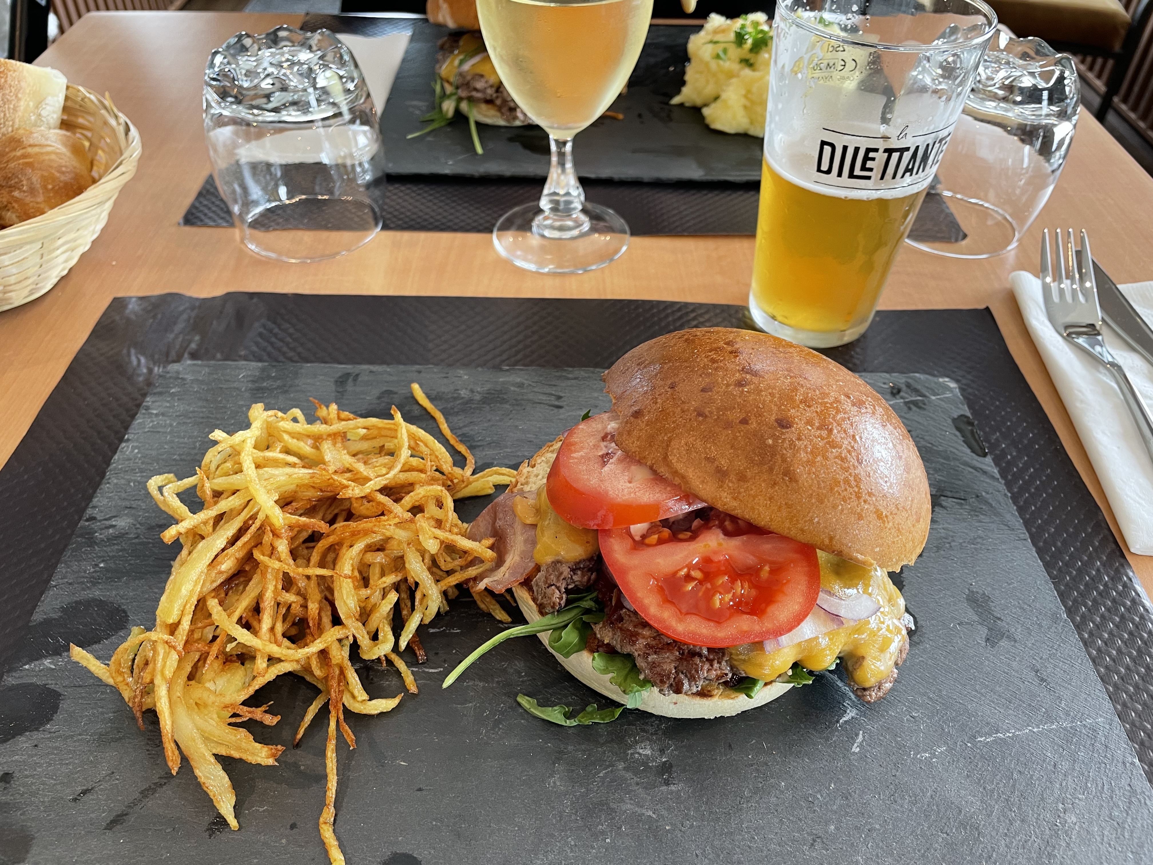 Très bon service avec un personnel vraiment sympathique j’ai beaucoup apprécier mon burger et le Cabernet D’Anjou (je ne marchais pas très droits après mais très bonne bouteille)