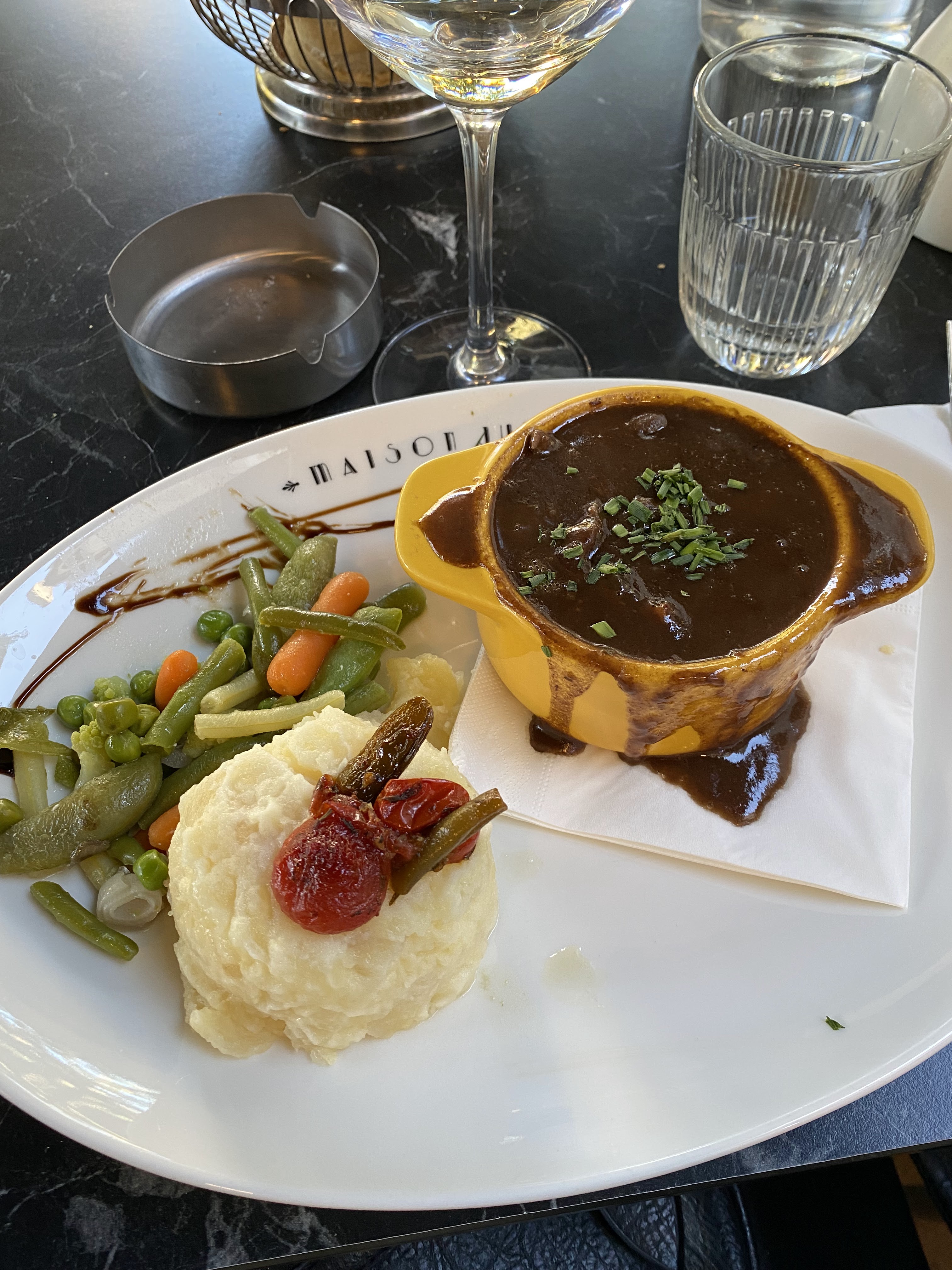 J'ai pris un bœuf bourguignon. Bien que la sauce soit excellente trop peu de viande dans l'assiette et avec un petit accompagnement de pomme de terre en purée. Je suis resté sur ma faim. En résumé bon mais cher payé au vu de la faible quantité dans l'assiette