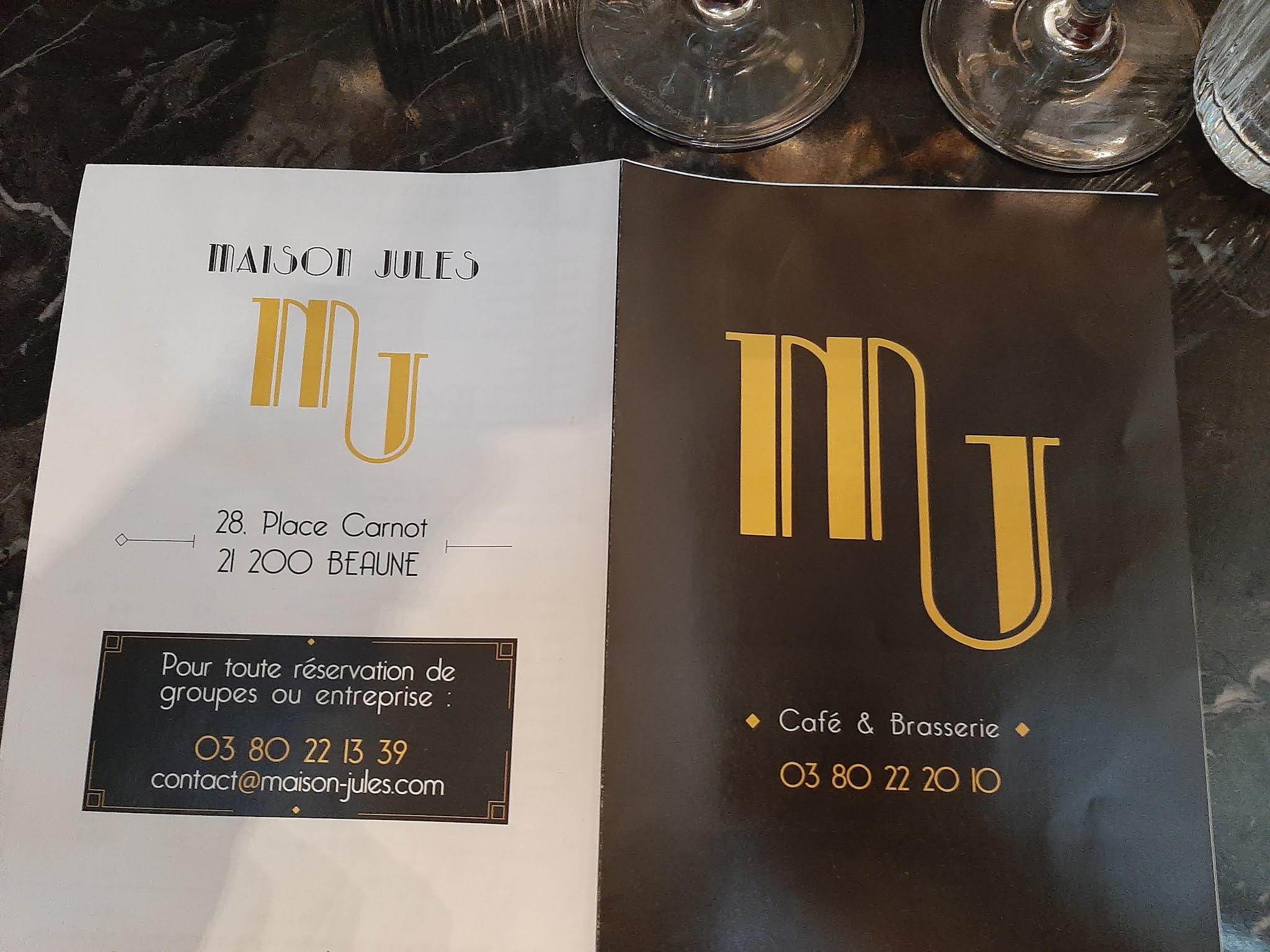 Expérience déplorable à la Brasserie Jules. Au niveau de la réservation : nous étions 2 couples et avons appelé pour réserver. On nous a dit que le restaurant ne prenait pas de réservation. Puis, sur place, on demande une table et on nous demande si on a réservé ! Ensuite, on nous dit de patienter. Mais personne ne s’occupe de nous. On nous installe enfin à une table. Au niveau du service : 1 seul serveur était à peu près bien. Les autres ont réellement manqué d’efficacité et de professionnalisme. (1 serveur avait un humour douteux ) Autre Exemple de verres apéritifs à débarrasser pour faire un peu de place sur la table. On demande d’enlever les verres car nous avions Terminé notre apéritif. Ils nous enlèvent les verres à vin qui étaient propres et nous laissent les verres sales d’apéritif ! On commande du vin année 2017 écrit sur la carte et on nous sert du 2018 en nous disant qu’il n’y avait plus de 2017 ! (Ils débouchent la bouteille sans nous demander si cela nous convient malgré tout) Restauration : nulle ! Carte surfaite et prétentieuse. Manque de simplicité ! Escargots de Bourgogne tièdes et pas bons. Pavé de saumon trop cuit et une espèce de sauce à la crème immangeable. Rognons trop cuits et tarte aux myrtilles de type « industrielle » Et pour finir : addition salée ! Cela est vraiment cher par rapport à la qualité servie. Impression d’avoir été piégée par un piège à touristes. Vraiment dommage car la brasserie est bien située au cœur de Beaune.