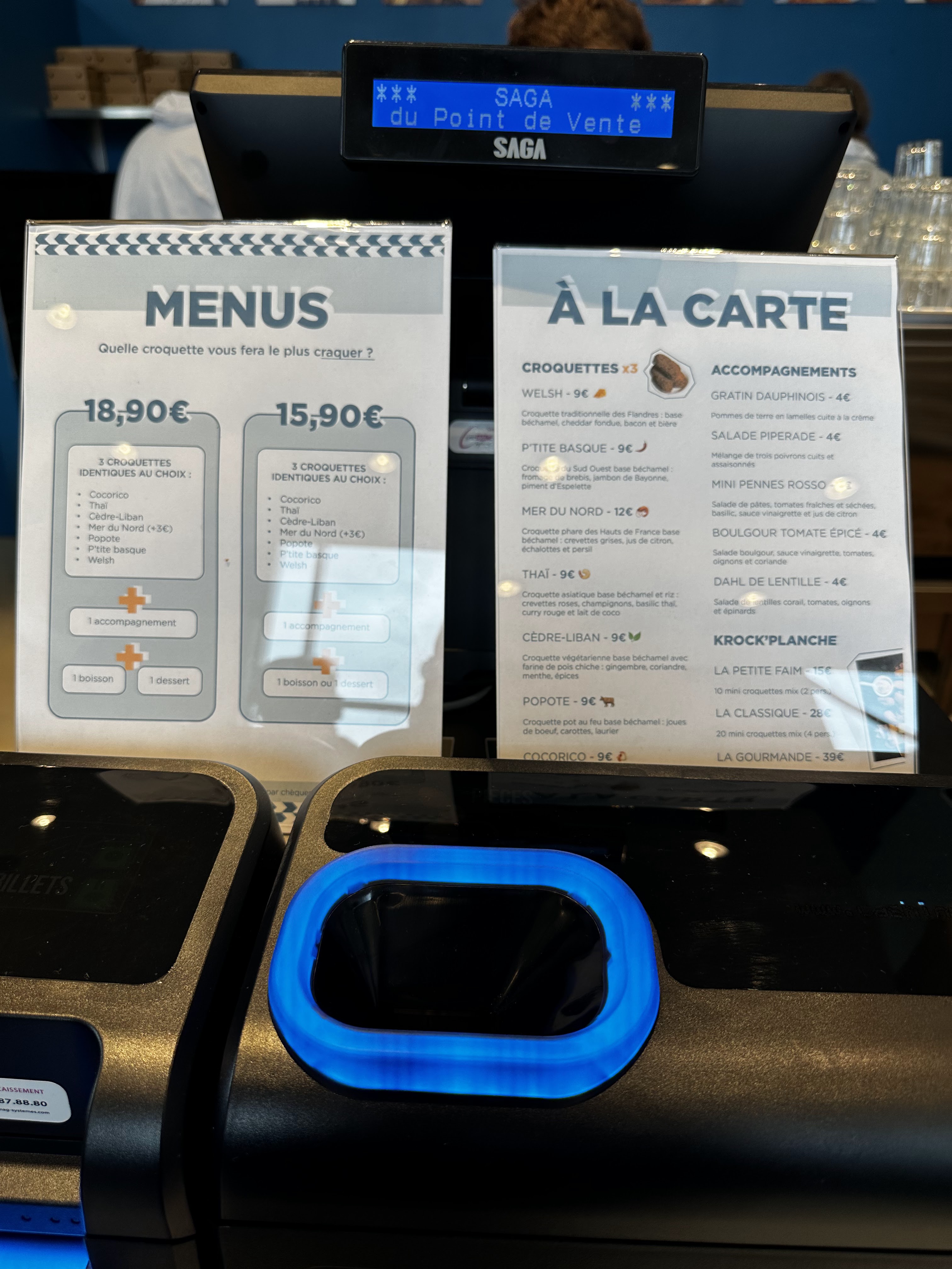 On voit que ça vient d’ouvrir, ils sont un peut perdus et c’est long à la commande.bien vérifier ce que vous prenez. Vraiment un point à améliorer, faite en sorte qu’on peut avoir un mix de croquettes, car là,si vous prenez par 3, c’est 3 identiques, c’est un peut con si on veut goûter les croquettes proposées .la fourchette de prix est dans la partie haute .