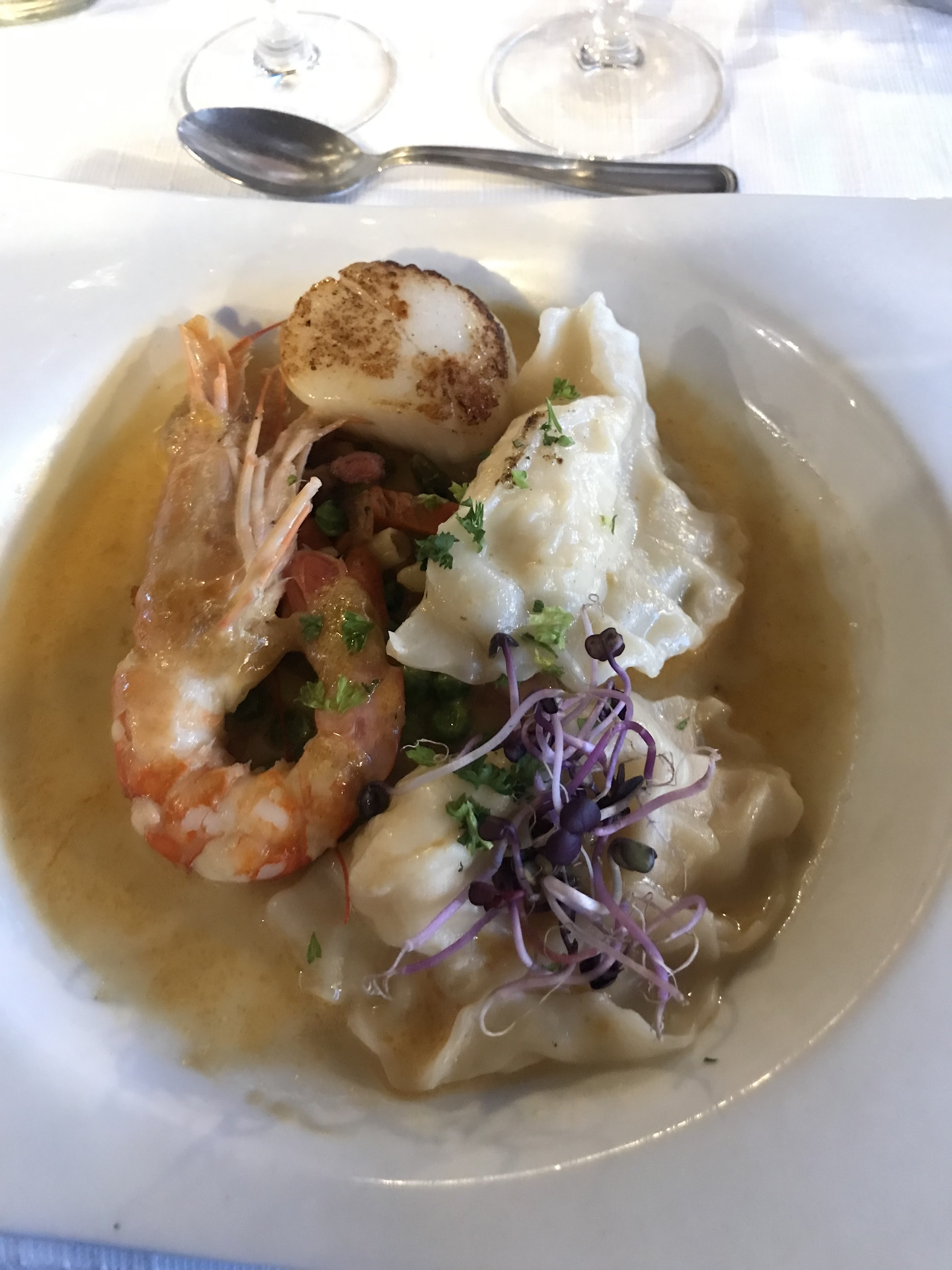 Bonne table avec une farandole de plats variés d'une bonne tenue. Croquants de langoustines, ravioles de langouste ou escalopes de ris de veau aux morilles, top. Dessert pas à la hauteur dommage. Devrait renouveler plus souvent la carte.