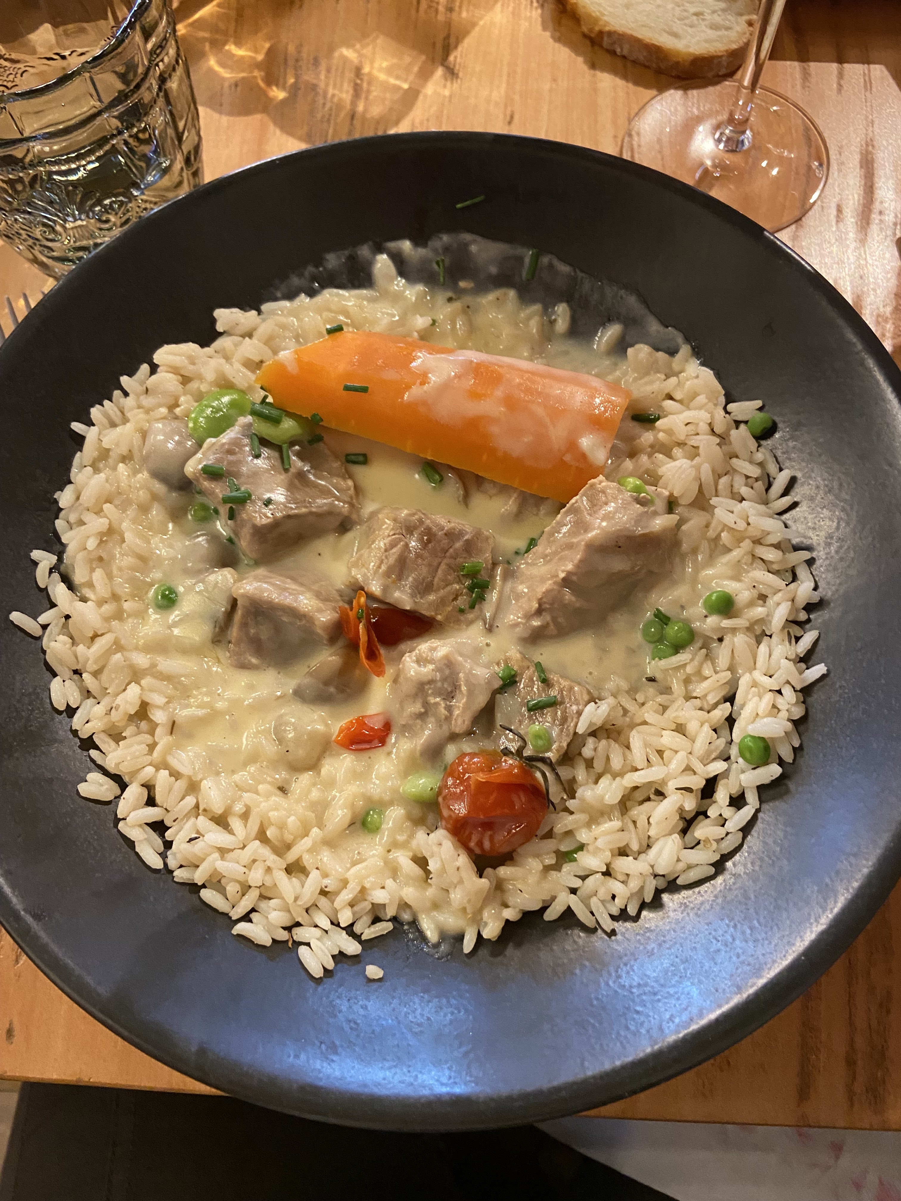 Énormément d'attente 1h30 pour avoir notre entrée. Heureusement le fils de la patronne a été adorable avec nous .c'est vraiment une personne très agréable et a l'écoute de ses clients. Dommage qu'il y avait trop de noisettes dans le risotto au gambas. Cela prenait tout le goût sur le reste. Les œuf en meurette étaient délicieux. La blanquette façon grand mère était accompagnée de beaucoup trop d'oignons grelot donc très acide. Dans l'ensemble je recommande