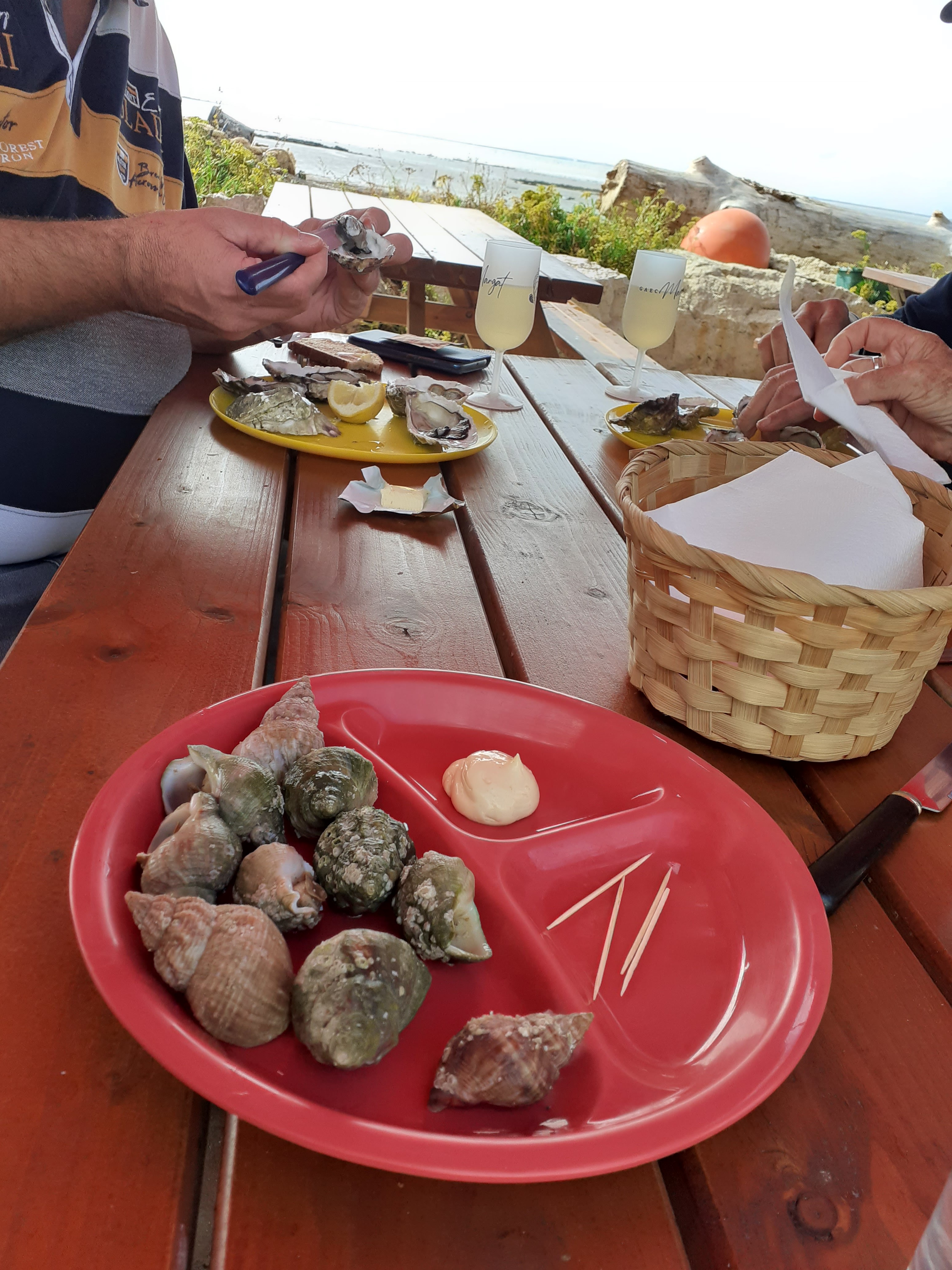 Dej très sympa en bord de mer : sardines, moules, gambas et bien sur huîtres !