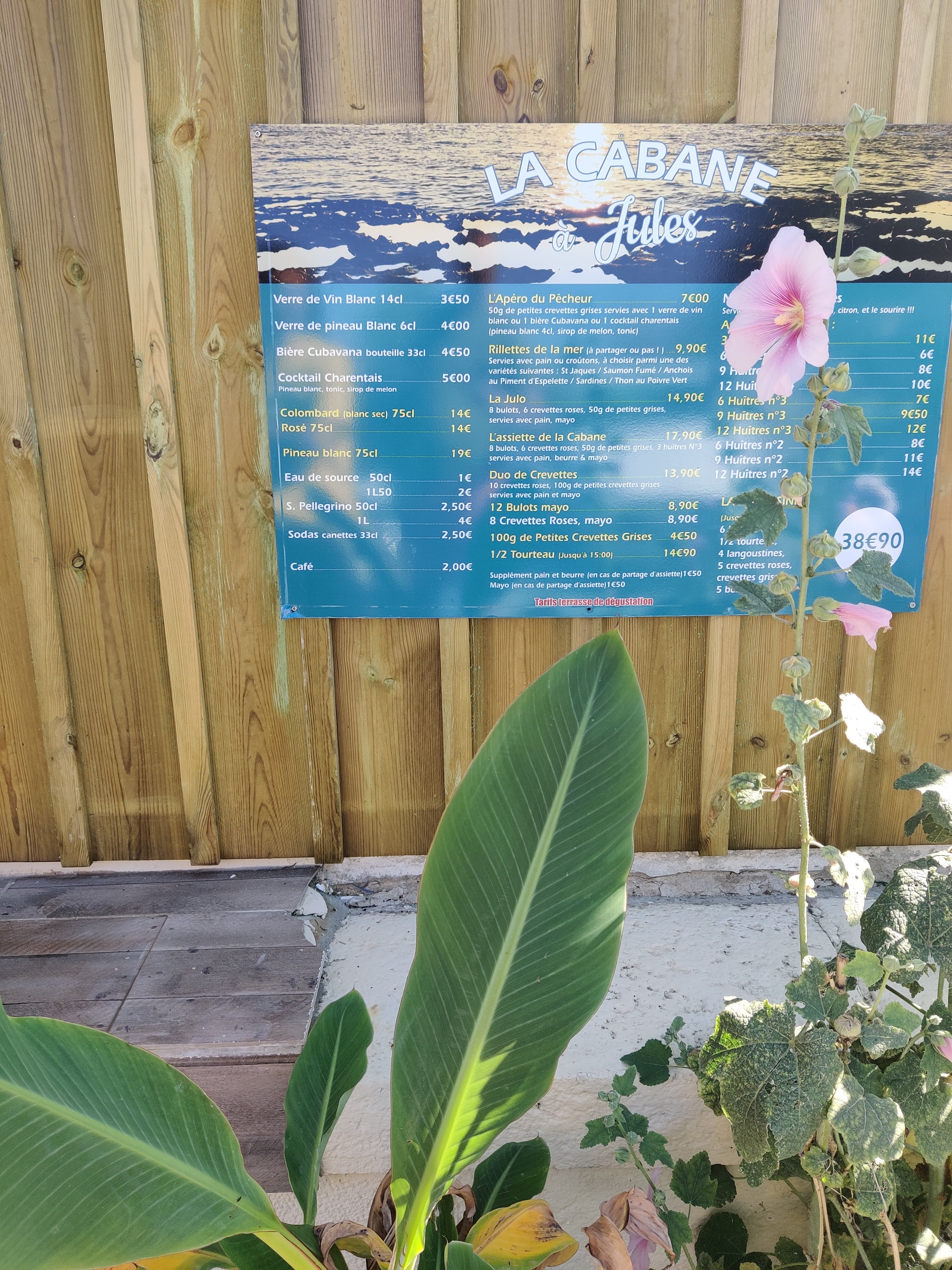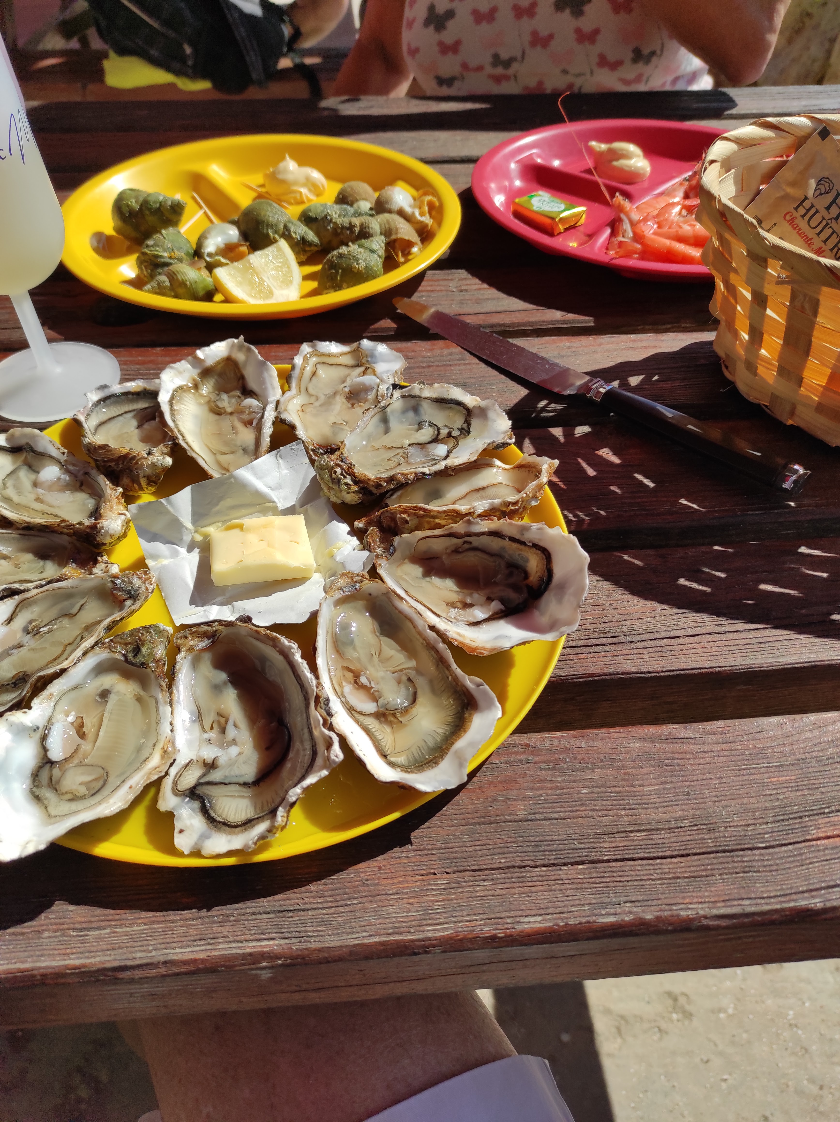 Nous avons manger des huîtres, ainsi que des crevettes grises et roses. Fruits de mer très bons et accueil chaleureux. Belle vue sur l'océan, très agréable par beau temps et sous un parasol. Nous avons adoré l'endroit et essayerons de repasser avant la fin des vacances. A noter : pas de paiement en CB.