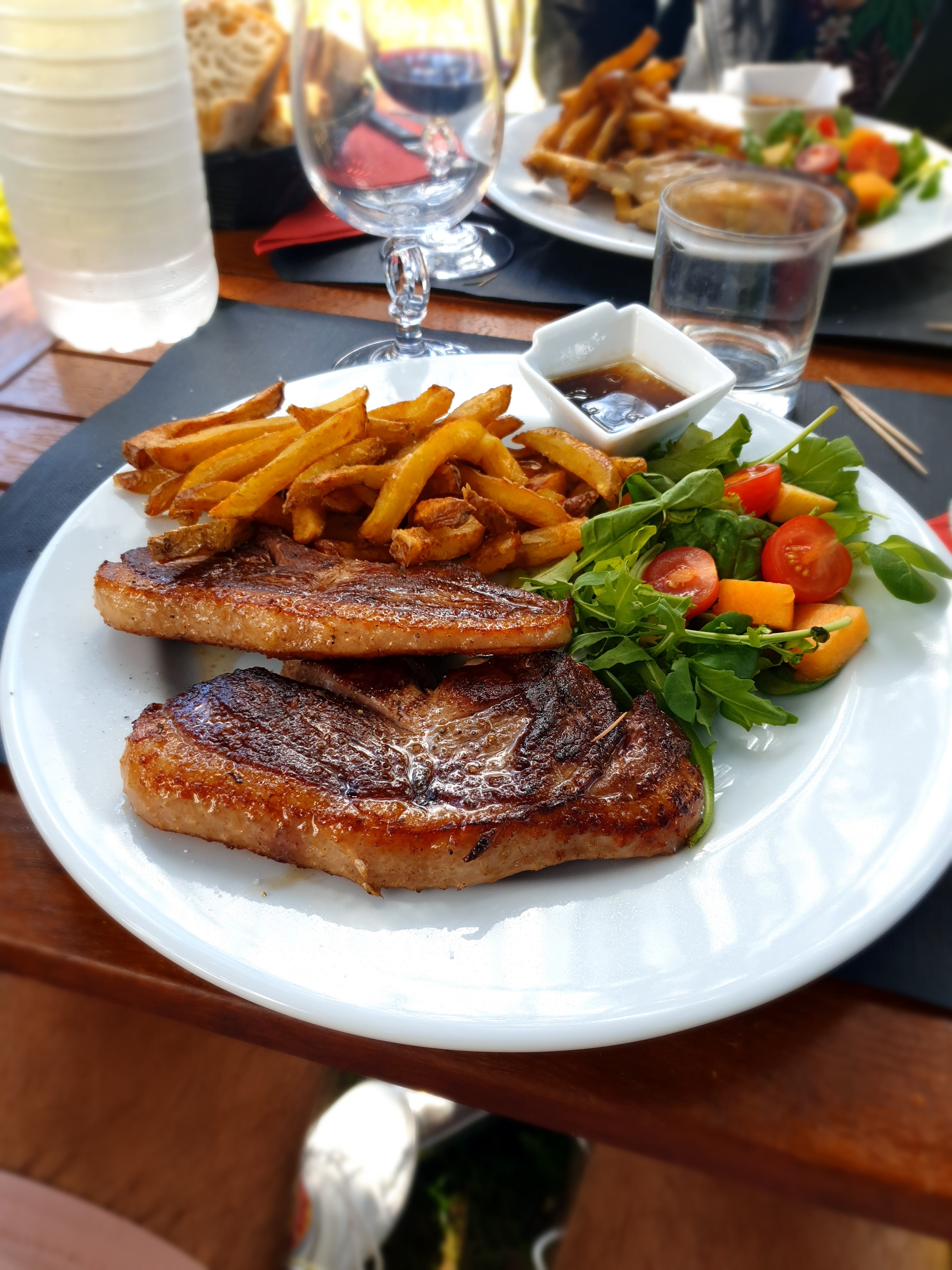 La carte est minuscule, le repas est grandiose. Nous avons goûté les cœurs, les côtes et le magret de canard. Tout était excellent, cuit à la perfection, tout en restant simple, du poivre du sel, un bon produit, du savoir faire et c'est parfait (et un bon vin). Les papilles en redemandent mais le ventre n'en peut plus. De plus, une équipe souriante et agréable, un patron qui sait de quoi il parle, une note pas très salée et un cadre dépaysant et agréable même lors de fortes chaleurs. On ne peut que recommander!