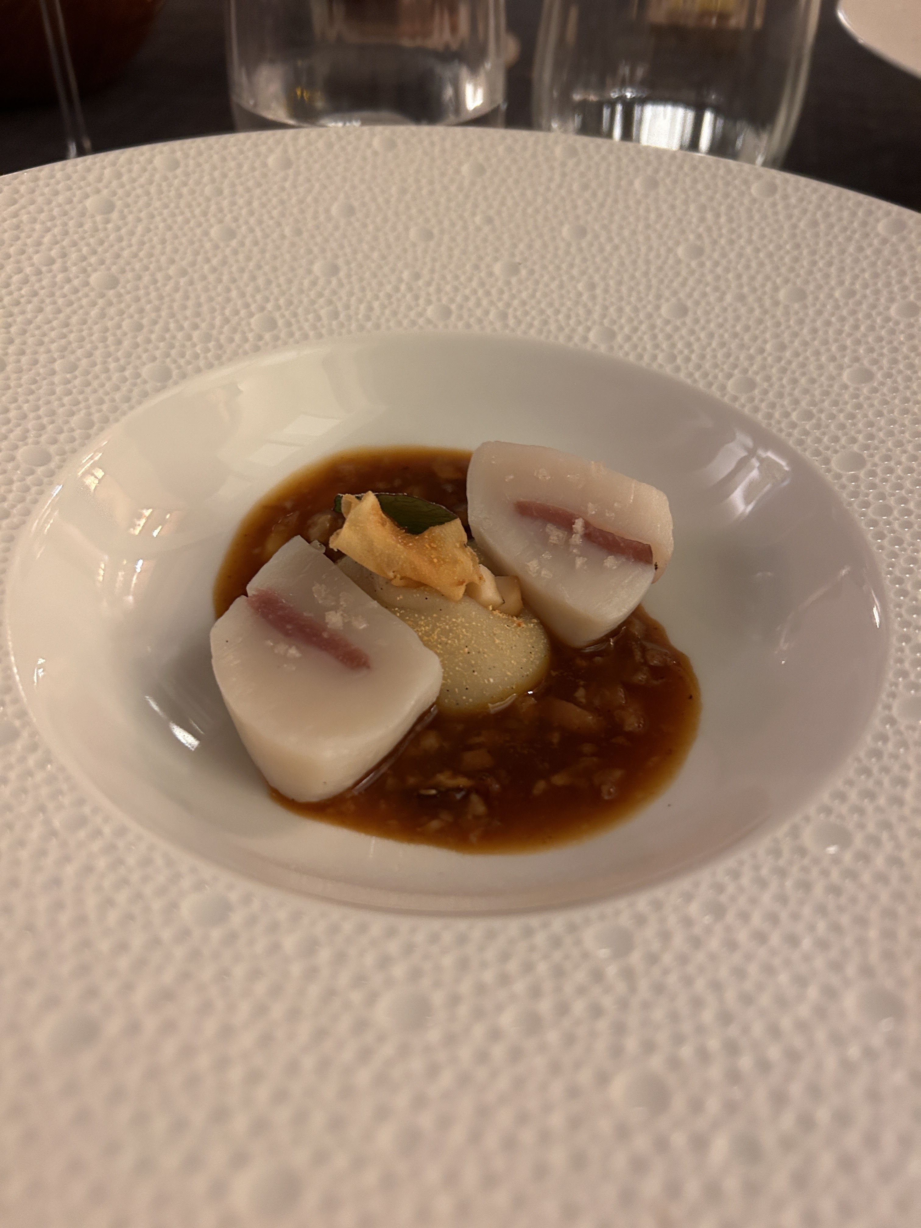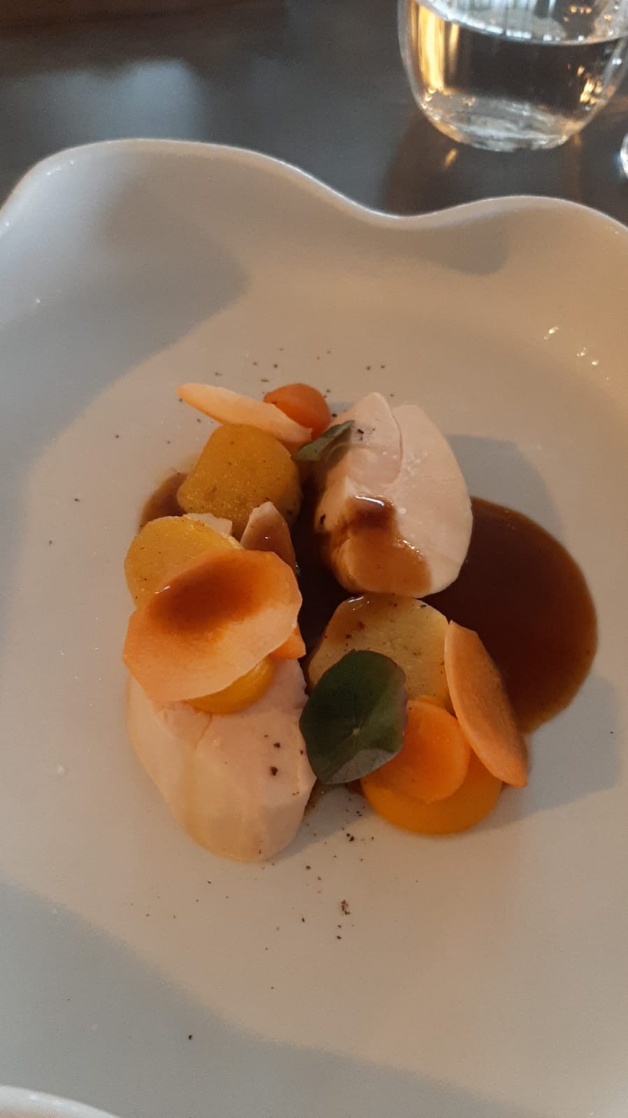 Très beau et bon moment, vaut le détour. On s'est régalé, on a trouvé des saveurs inhabituelles obtenues par le chef sur les mêmes aliments qu'à la maison, les cuissons sont parfaites. Bravo, l'étoile est méritée. Si je dois trouver un point à améliorer ce sera les vins de l'accord mets/vins un peu en dessous de mon attente.