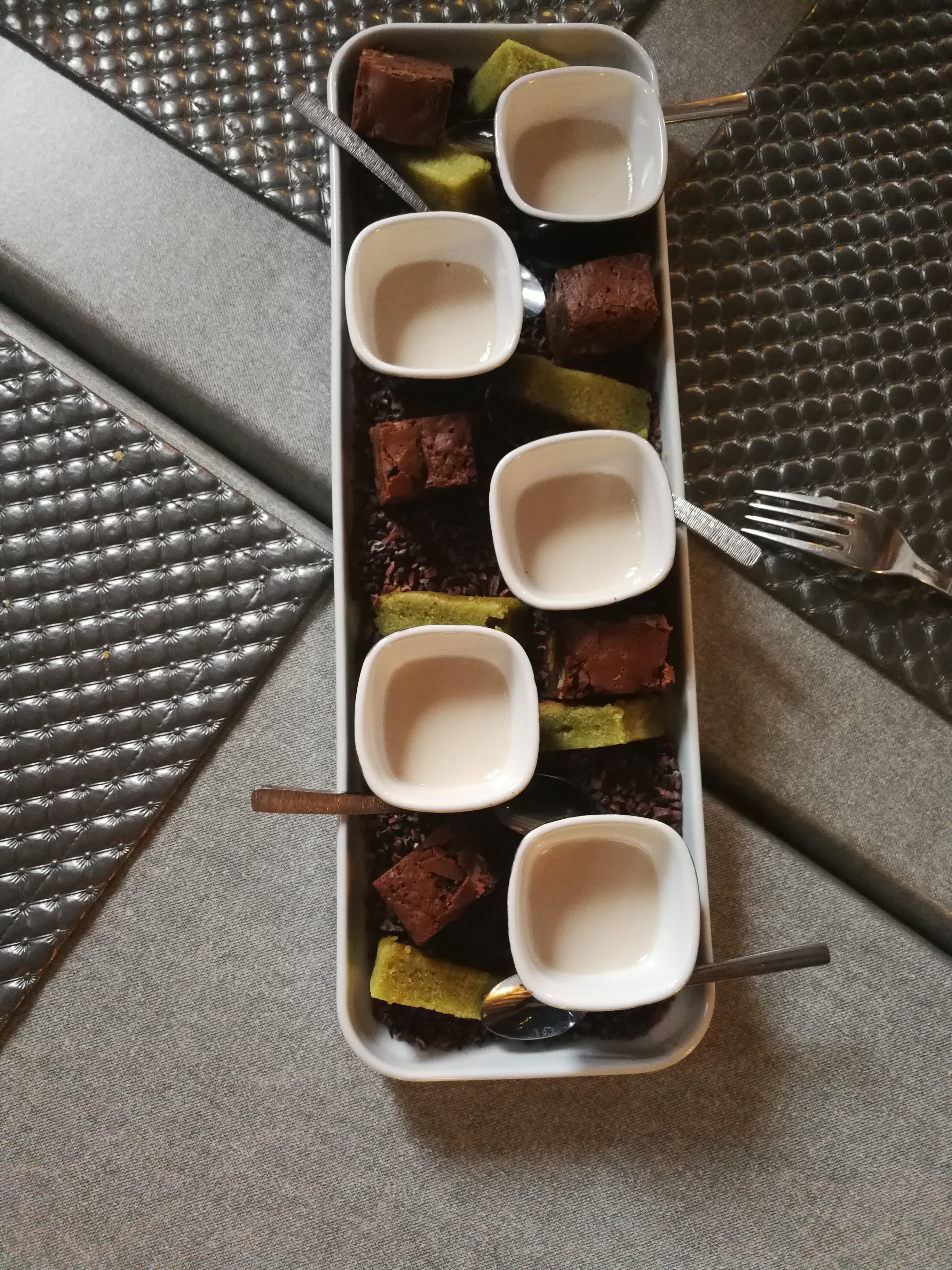 De nombreuses découvertes gustatives. Service très sympathique et très disponible. Salle superbement décorée. Les desserts très légers, c'était une tuerie. Moment très agréable que nous recommandons à tous.