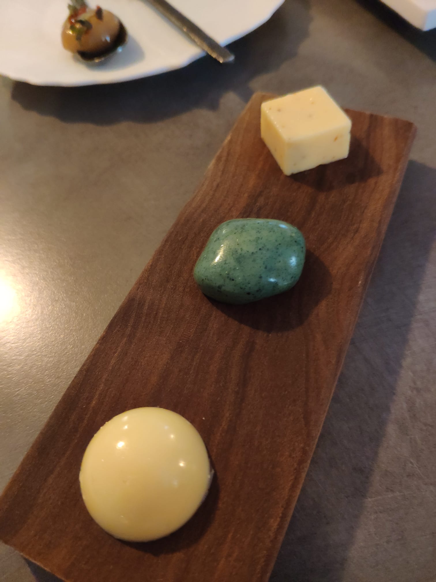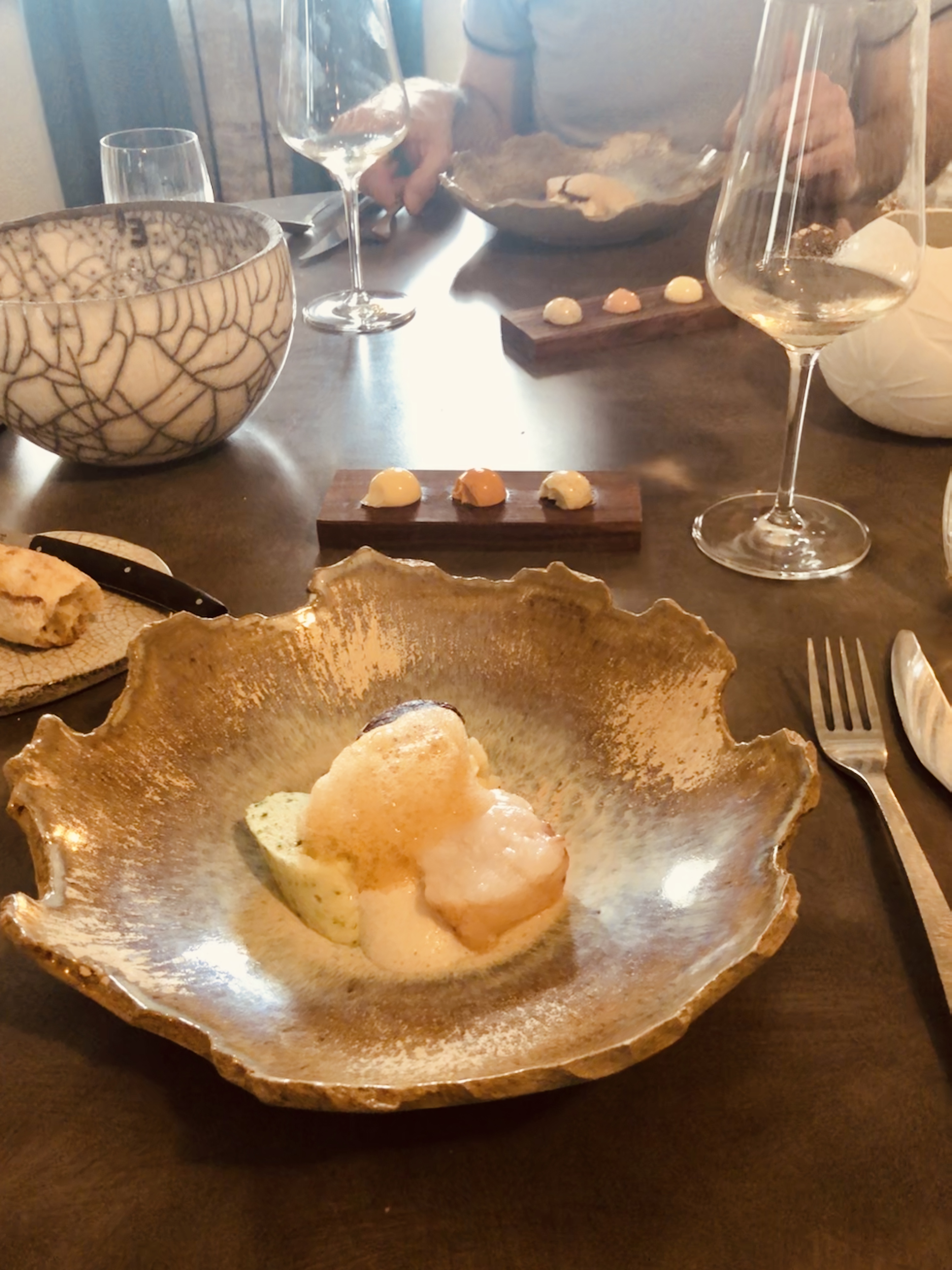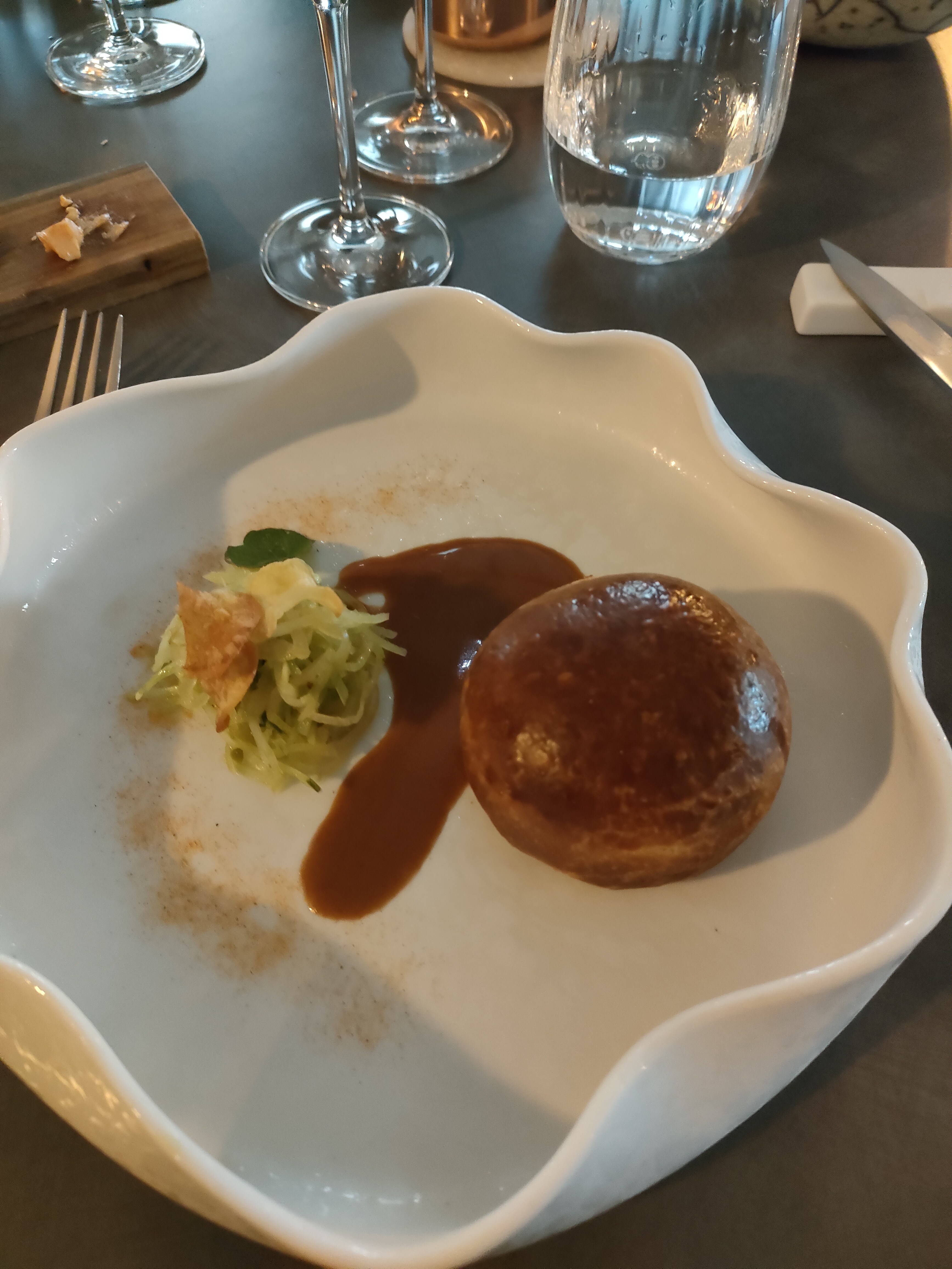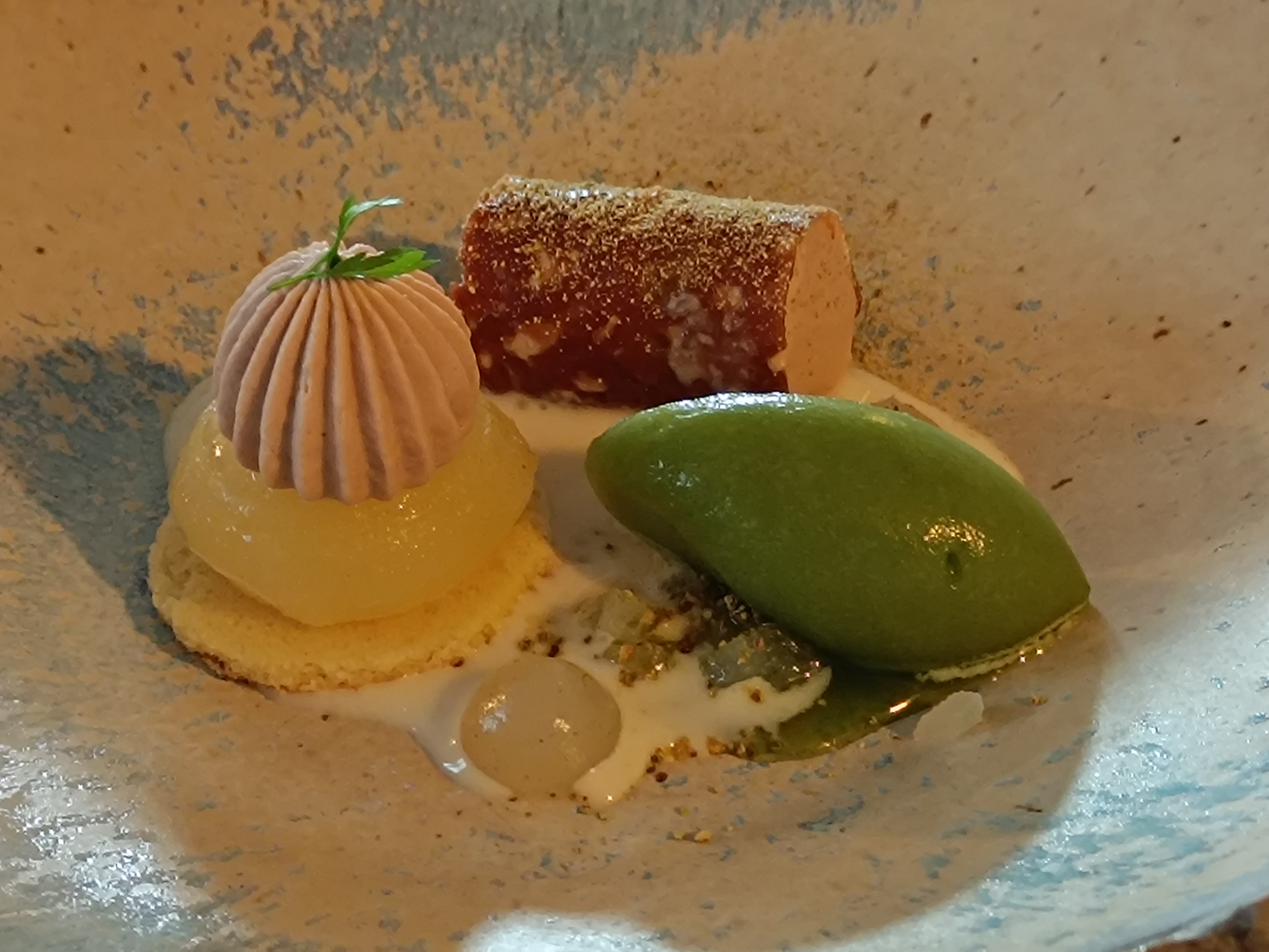 Belle balade culinaire, plein de surprises. Quel travail inventif J’ai beaucoup apprécié , en début de repas, le choix de son couteau parmi 6 essences de bois, j’ai pris le buis. Après avoir fait un étoilé dans le Luberon en 6 services( 8 ici) a un prix stratosphérique, et un niveau gastronomique moindre, ne ratez pas cette table.
