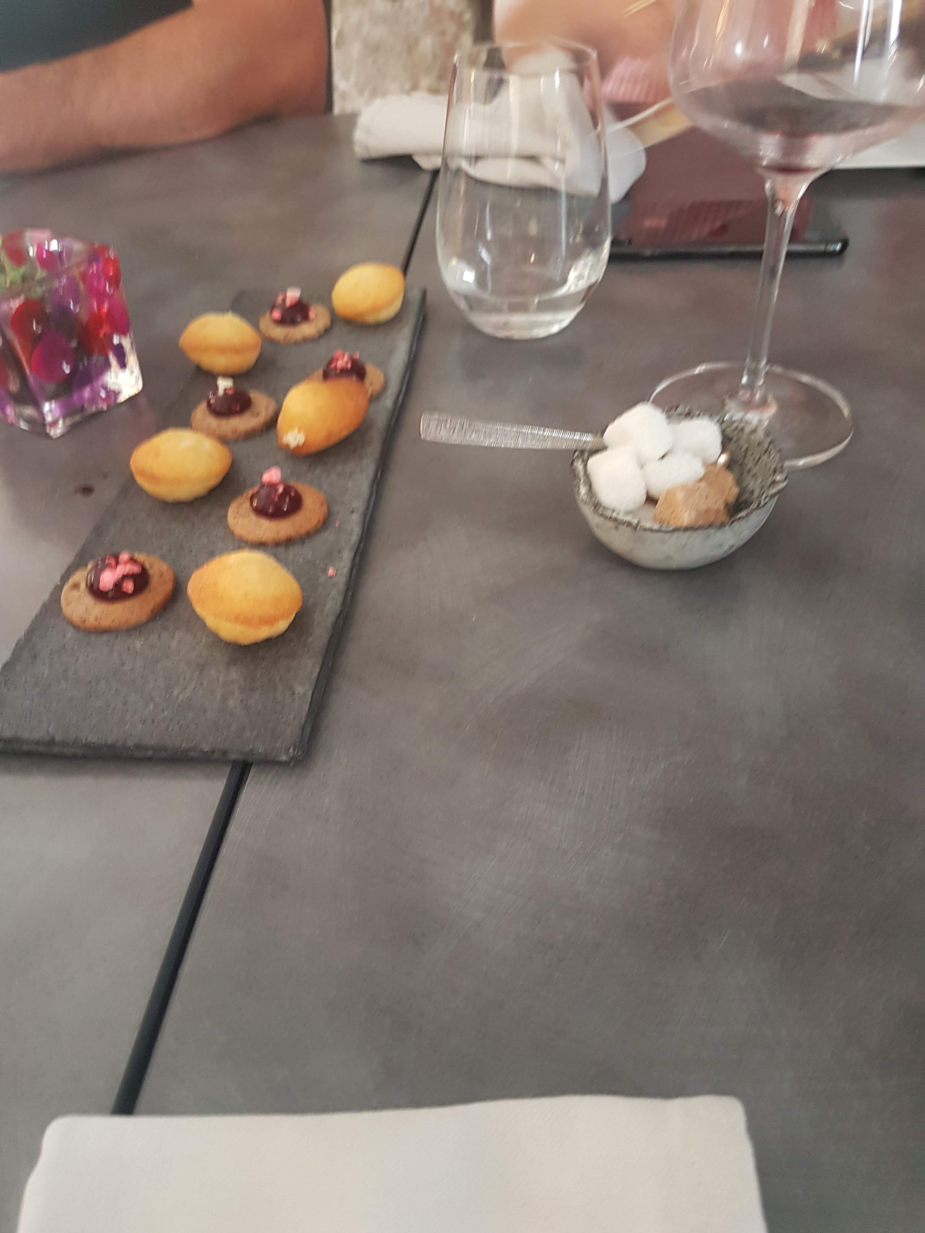 Accueil agréable , bon vins , amuses bouches salées et sucrés de qualité... Toutefois quelques déceptions: service trop rapide ( pas assez le temps de se poser entre les 5 plats) . Nous avons été obligé de retourner le plat de poisson( sans trop de saveur ) qui est arrivé froid , la viande n'était pas spécialement tendre, le dessert un peu fouillis dans l'assiette et pas exceptionnel ...