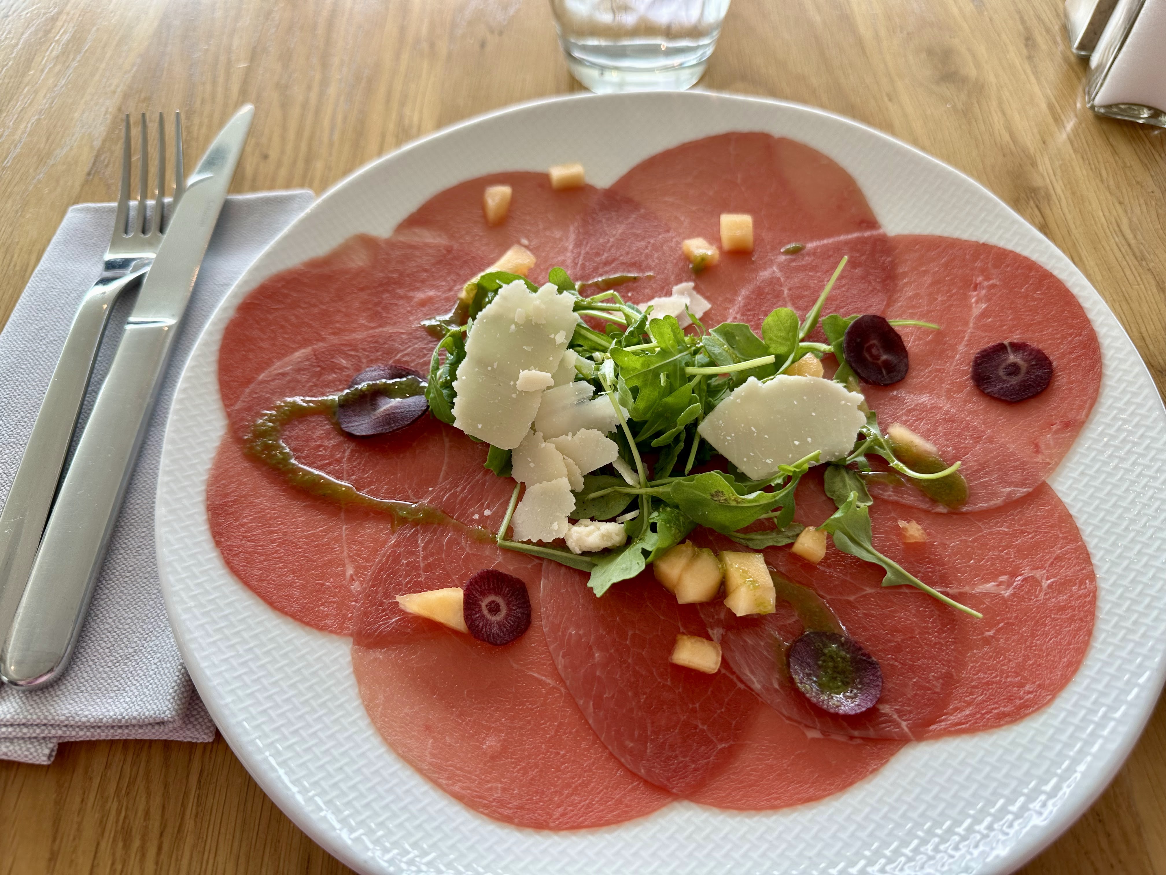 La nourriture était horrible. Le risotto était une soupe de riz cru, du veau trop cuit (était censé être moyen) et des légumes trop cuits sans goût, les spaghettis à la bolognaise étaient en désordre. Le chef principal a refusé de venir nous parler et a plutôt dit que nous devions venir le voir. Puis il a fait semblant de ne pas connaître l'anglais mais a rapidement changé de ton en réalisant que notre fils parle couramment le français. Et il a toujours nié qu'il y avait quelque chose qui n'allait pas avec notre nourriture.