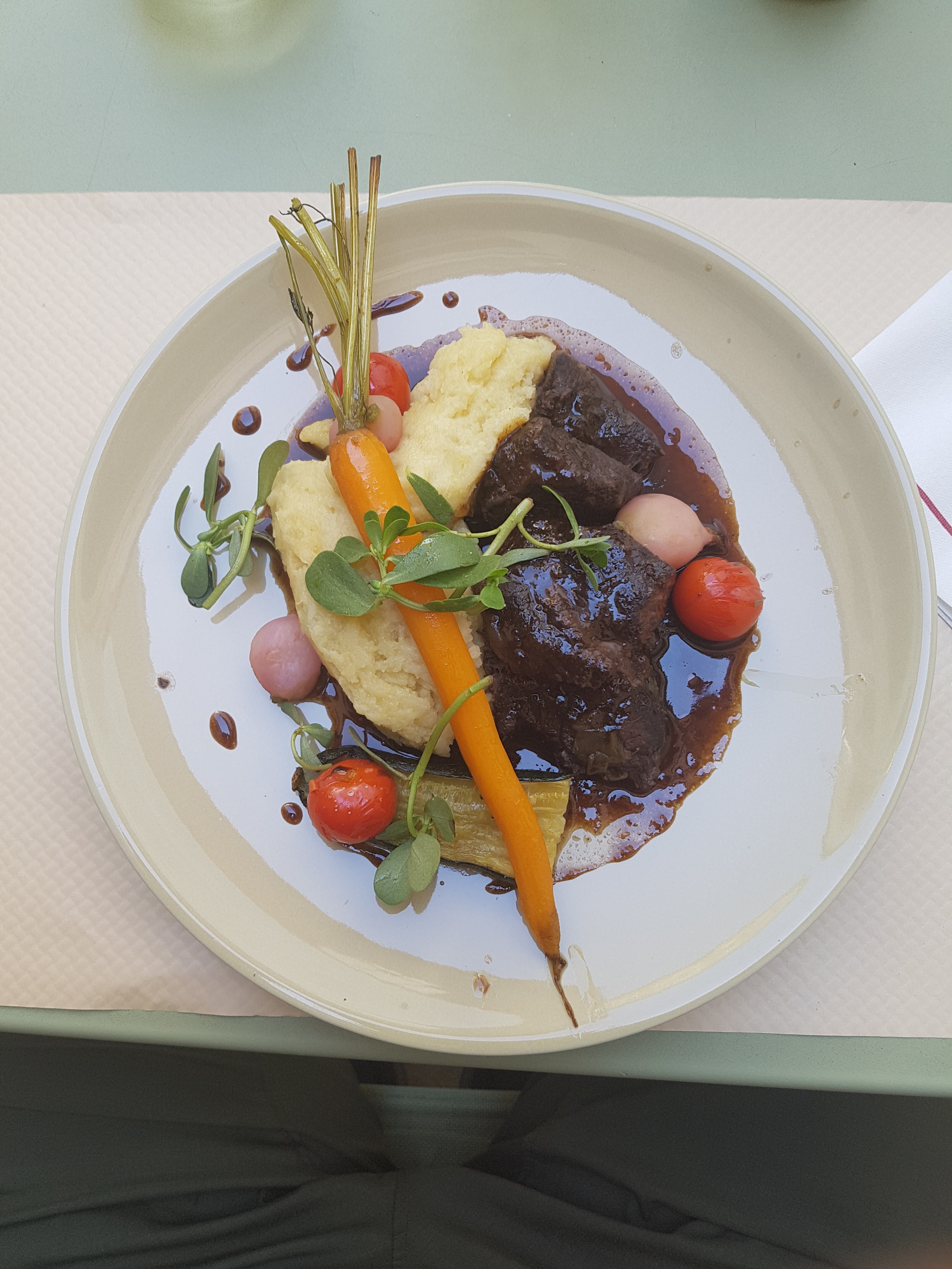 Cuisine traditionnelle et moderne à la fois. La joue de bœuf était super bonne. Les prix sont très corrects pour la qualité des produits et le travail sur l'assiette. Comptez 16€ pour la formule plat + dessert