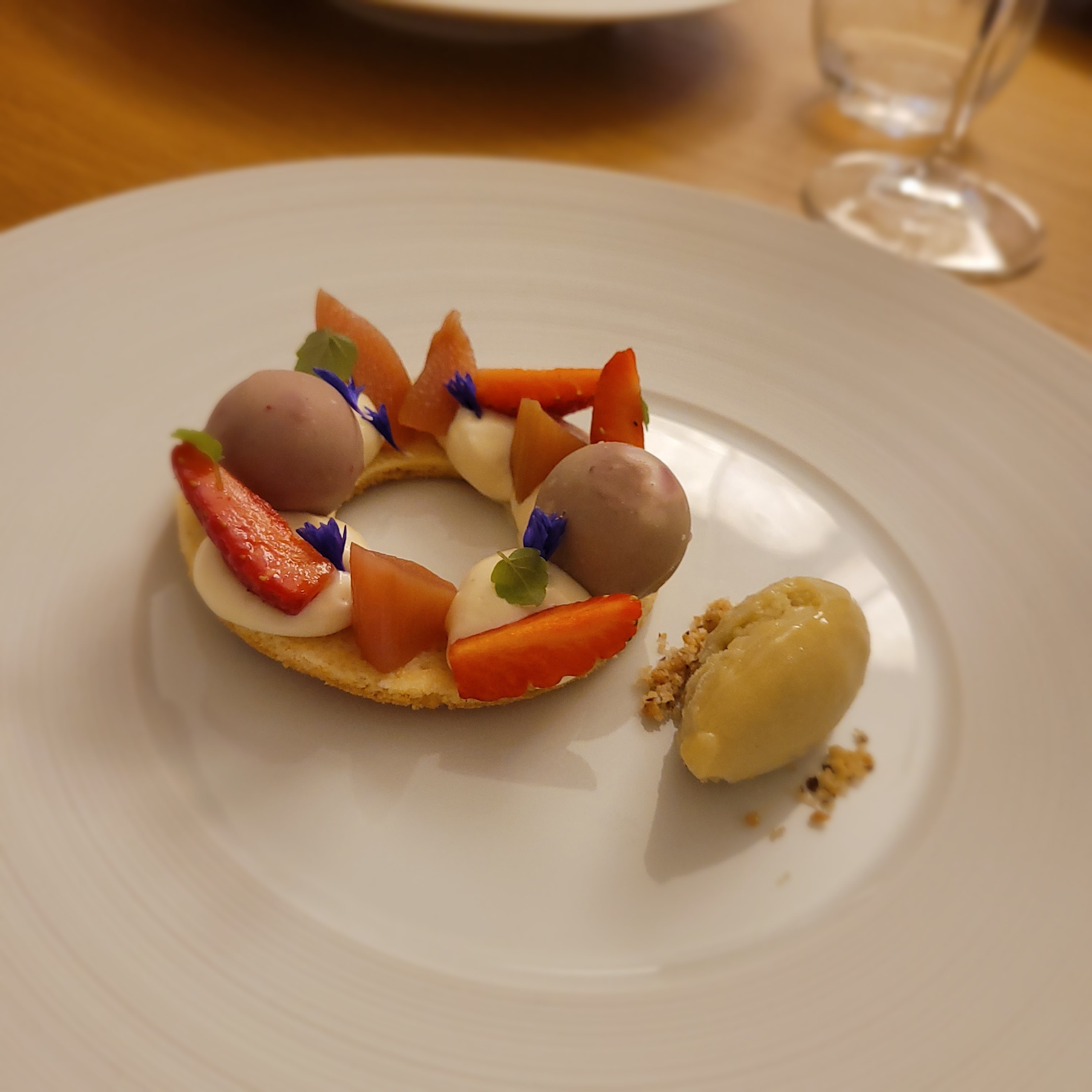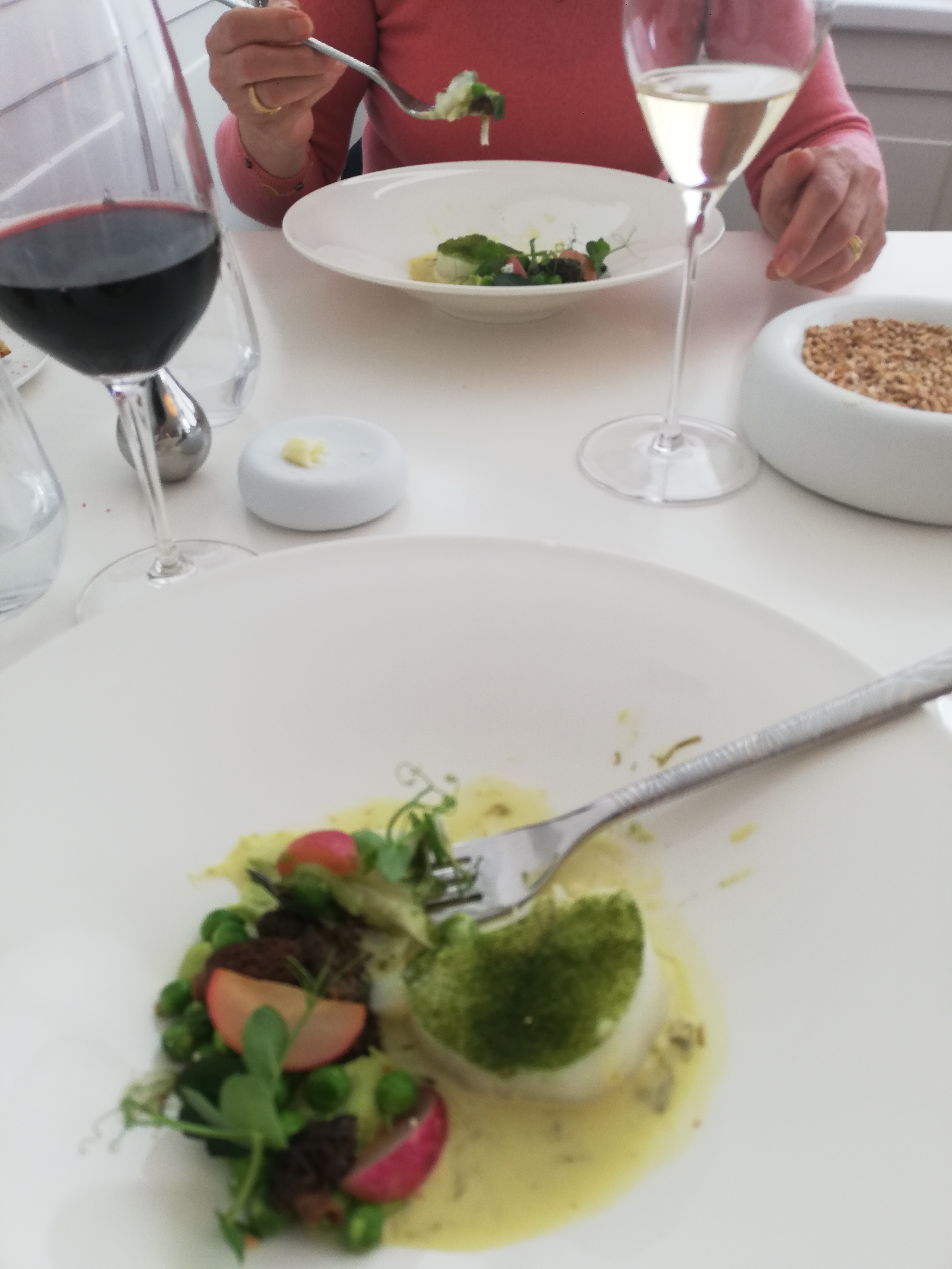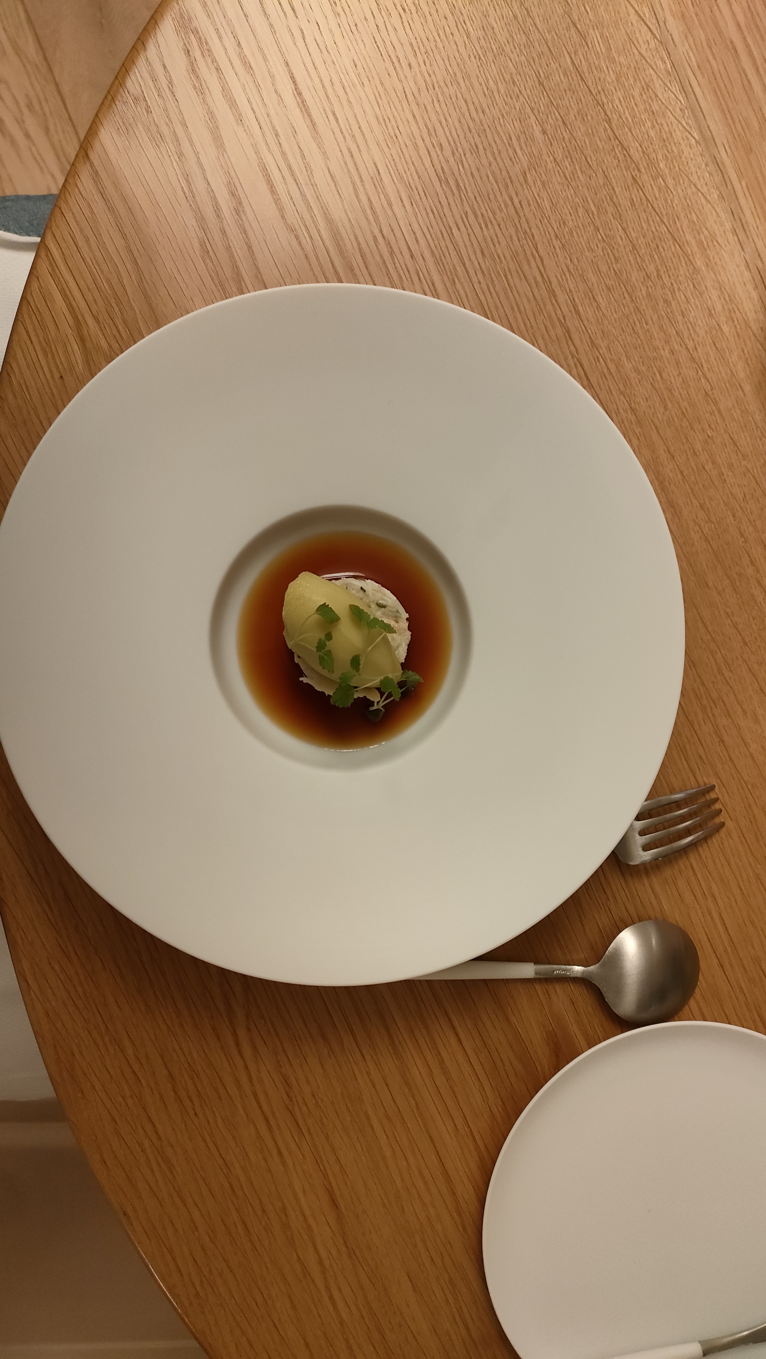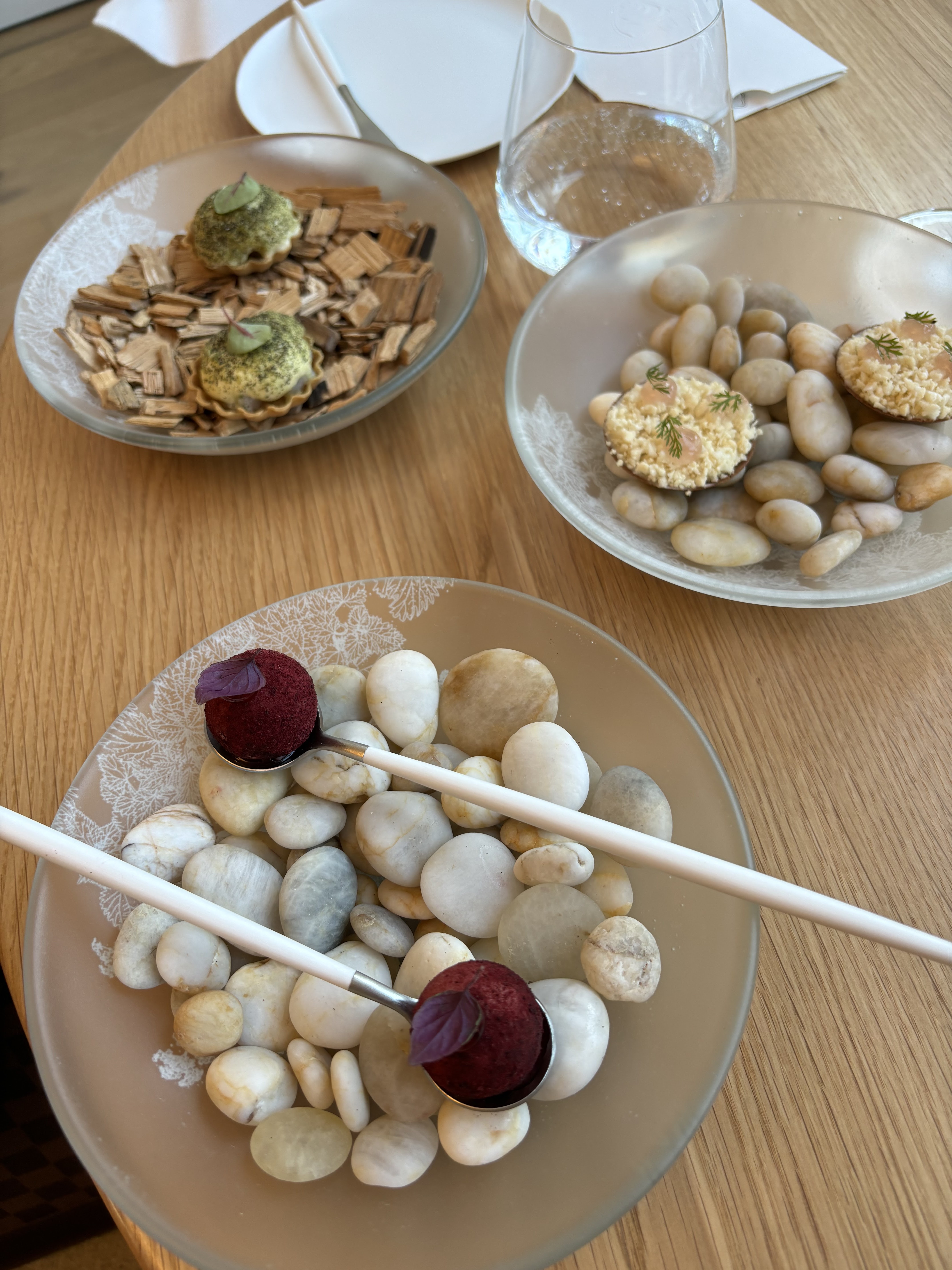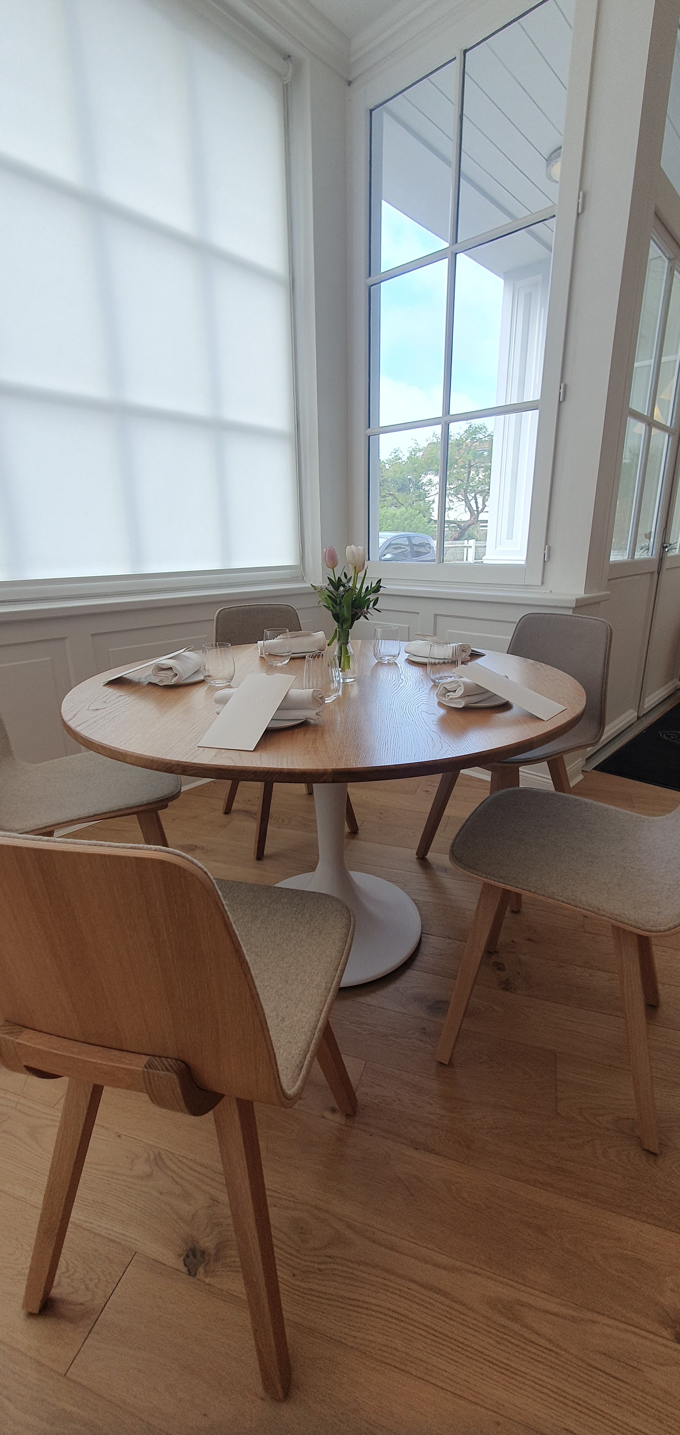 Un lieu parfait, autant dans l’ambiance classe, blanche et bois apaisante. La cuisine est fabuleuse avec un parcours de saveurs extras. La dégustation en 7 plats vous emmène en mer, en forêts et en terre de manière équilibrée pour terminer sur une fin en douceur avec deux desserts exquis.