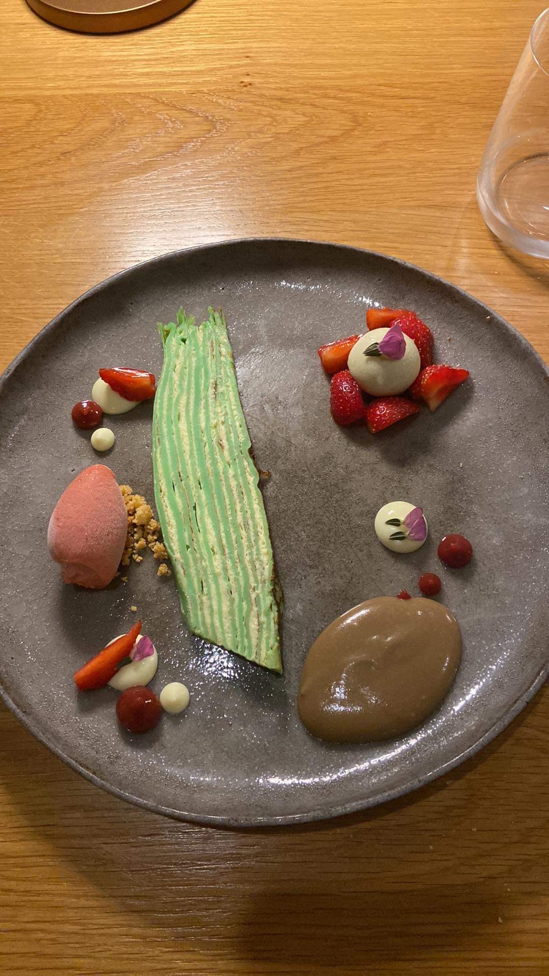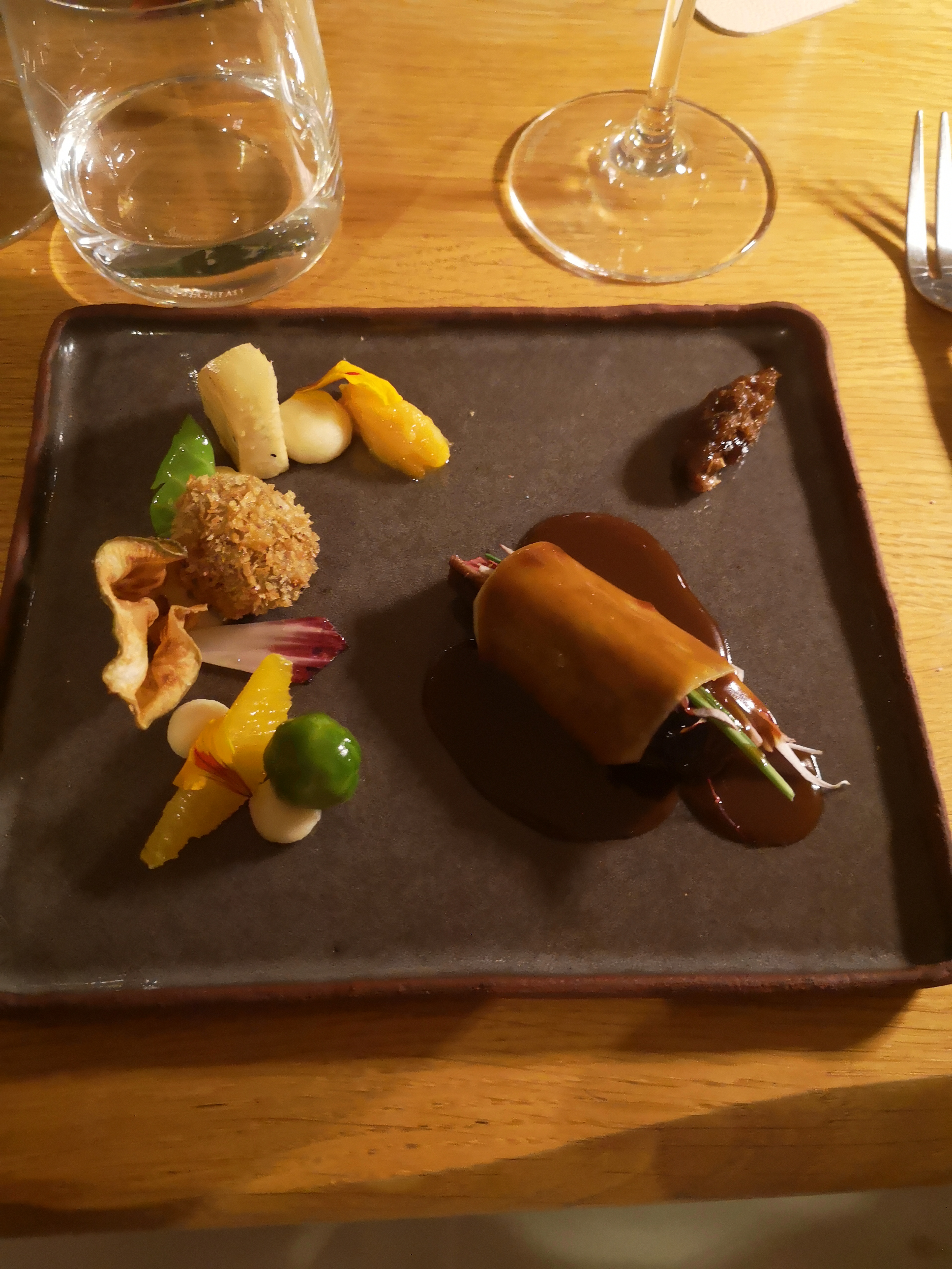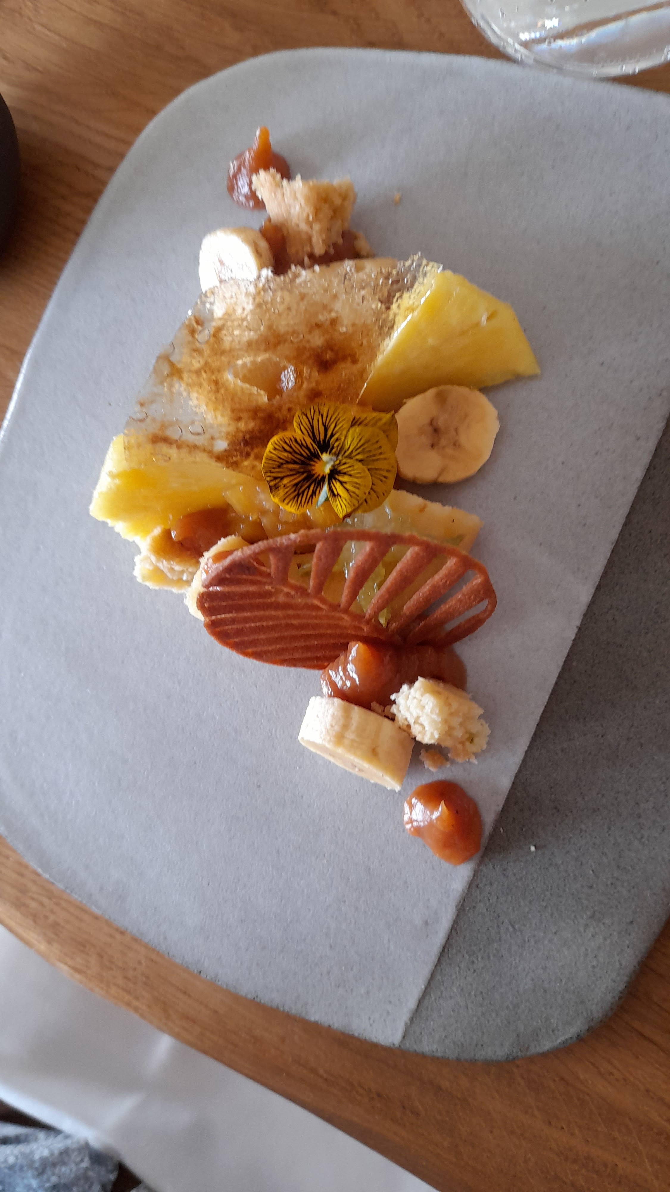 Tout c est bien déroulé et à la fin de chaque on nous demande si ça a été. On se permet de donner notre avis un plat légèrement salé en milieu de repas et une réflexion sur l association ananas romarin. Réponse c est l association tendance du moment en gros tu as aucune saveur culinaire. Je reste débutait quant à cette réflexion du chef de salle qui n à pas pris le temps de nous saluer à notre départ. Le 3 étoiles c est uniquement pour ce mr. Cordialement