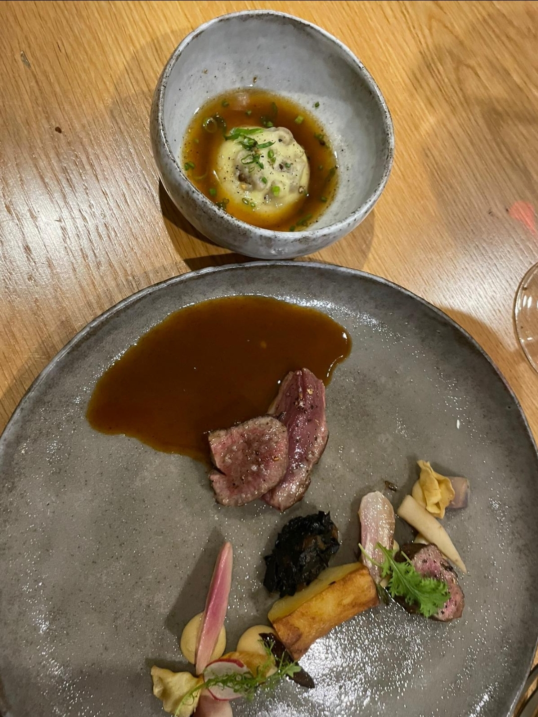 Quelle belle découverte; un voyage gustatif exceptionnel, de belles surprises d'assiettes en assiettes, des produits sourcés le plus localement possible et une équipe géniale. Je recommande vivement la découverte de cette jeune maison qui partage d'aussi belles valeurs que la beauté de leurs présentations.