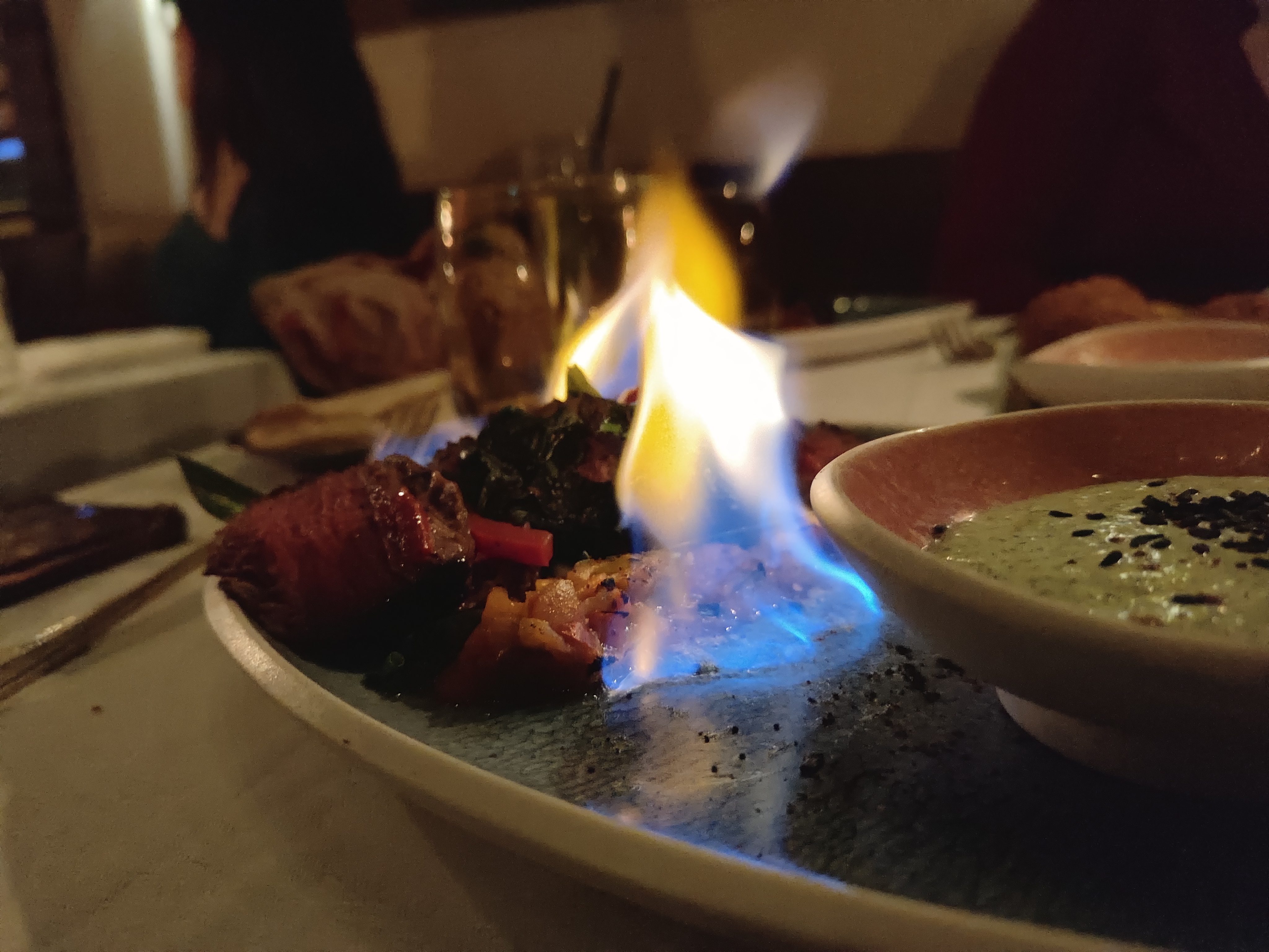 J’ai réservé une grande table pour mon anniversaire et je ne regrette pas. Le restaurant est très bien décoré et l ambiance est très conviviale avec les bougies Nous avons pris le menu à partager avec entrée plat et dessert, cetzit très bon et copieux, nous avons mangé à notre faim. Le service était top. En termes d ambiance les shows de la danseuse et le dj set étaient très sympa Merci !