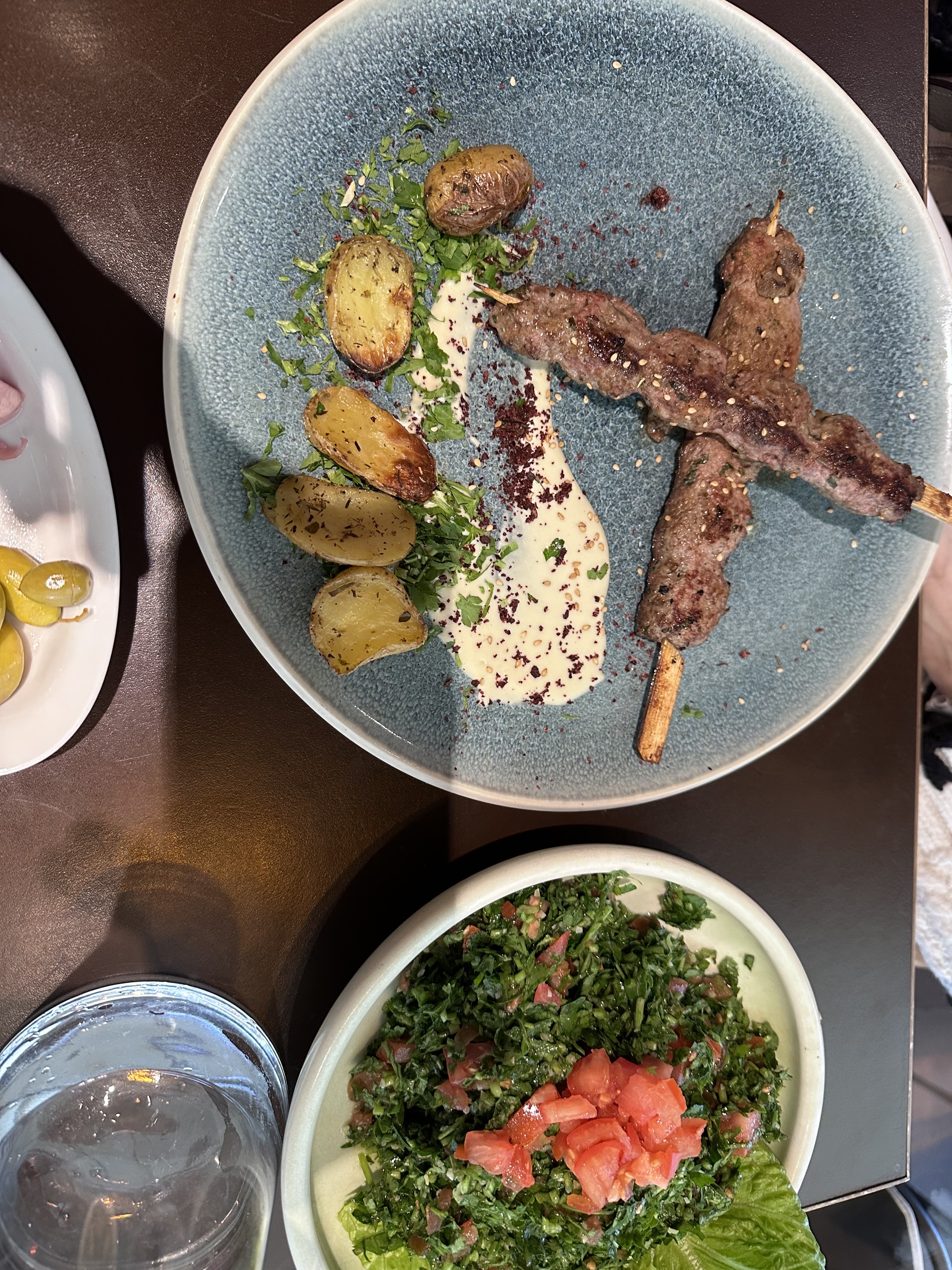 Je suis venu car on m'en a beaucoup parlé. J'ai eu le plaisir de découvrir les lieux, puis ensuite la gentillesse et l'accueil du personnel, un traitement agréable qui se démarque des endroits habituels. L'ambiance est au rendez-vous, les plats sont frais et délicieusement parfumés. Les saucisses libanaises étaient incroyables ! Merci encore pour tout. À très bientôt.