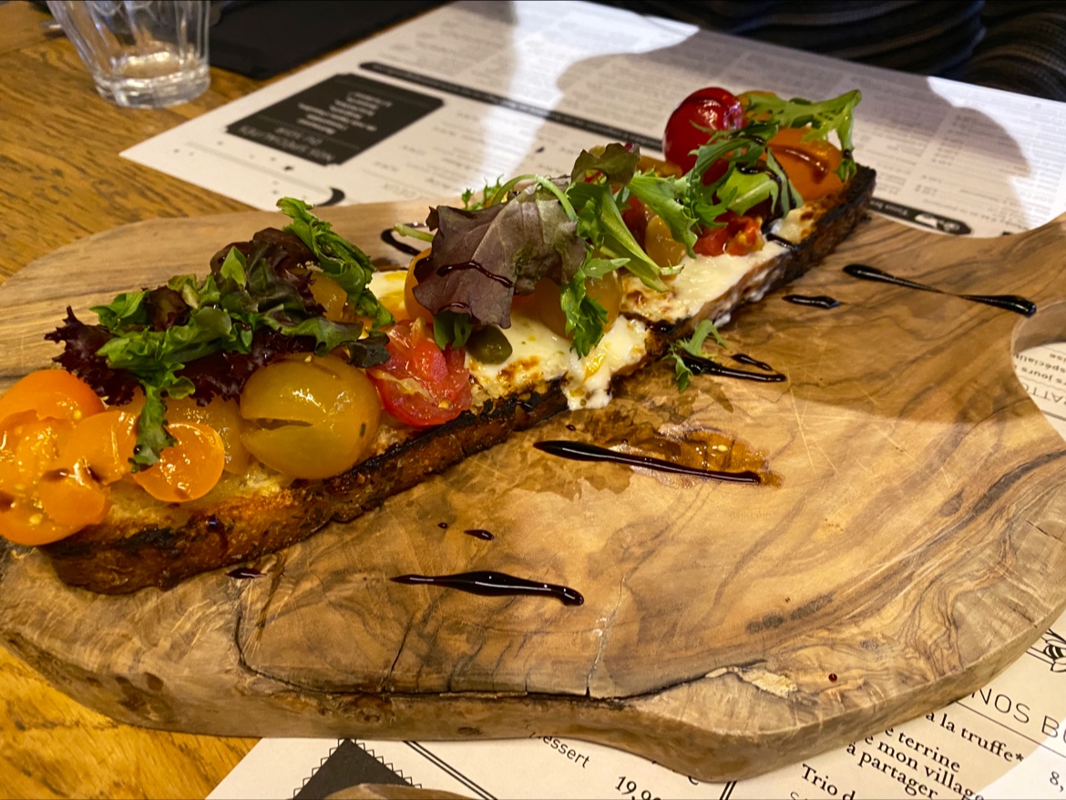 Le lieu est chaleureux. Ambiance un peu campagne chic et cosy. Une carte allechante. Deception sur le plat et sa composition, reduit a sa plus simple expression. Une focaccia vege, c est a dire tomates cerises et roquette, sur du fromage. Propose sur le menu, le verre de vin en accompagnement. Cher le verre ! Tres cher. Se mefier, il n est pas compris dans la focaccia.... Bref... Peut mieux faire... Peut vraiment mieux faire !